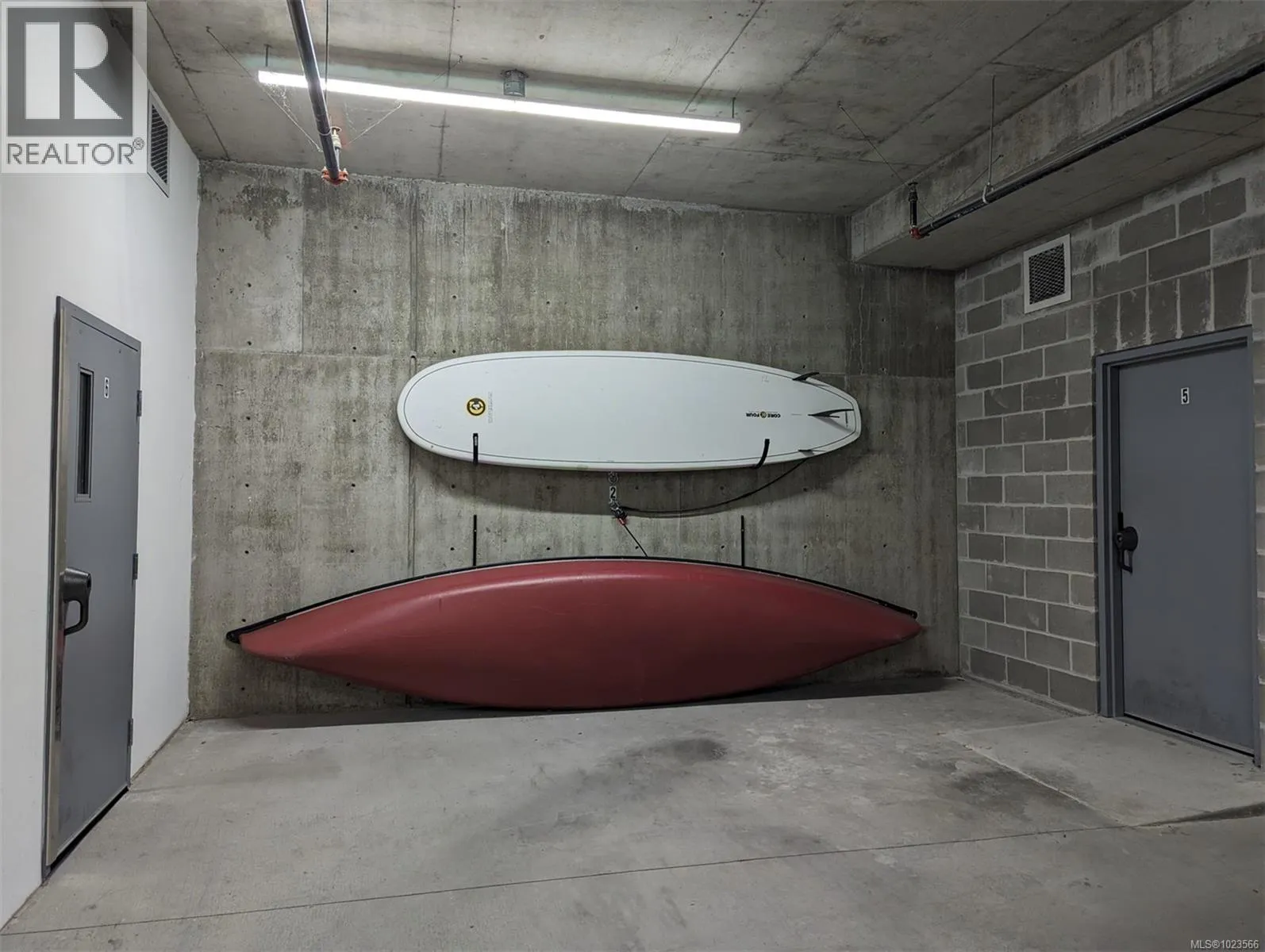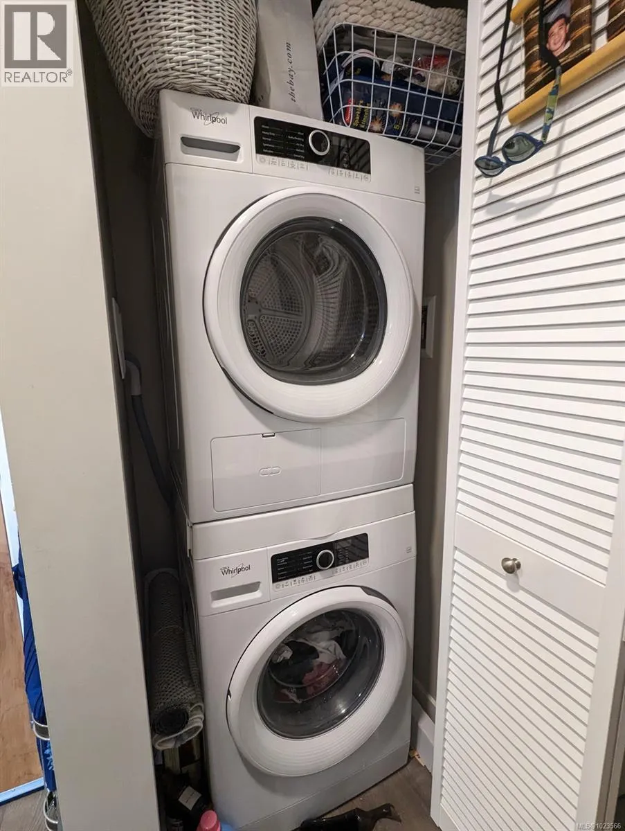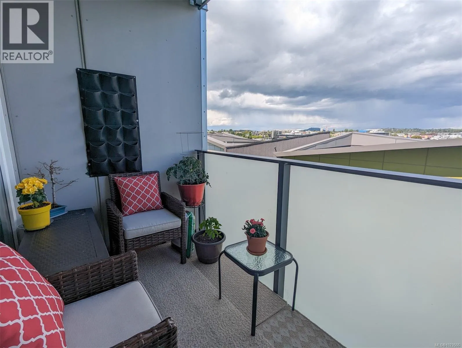 Enjoy urban living at its finest in this well-appointed and modern design one-bedroom condo! Situated within the Railyards development, one of the most desirable waterfront communities in Victoria! This east (water) facing unit offers comfort, style, and convenience thanks to an open-concept floor plan maximizing space and natural light. Features include large windows, in-suite laundry, fully equipped kitchen with stainless steel appliances, quartz countertops, eating island and sleek cabinetry. Private balcony with views of the surrounding area, providing a personal outdoor retreat, ideal for your BBQ. Secure underground parking, separate storage, bike room, kayak storage, and a roof top patio for entertaining. No rental restrictions, pets allowed and the remainder of the 2/5/10 warranty. Easy access to the waterfront for recreational activities like kayaking, paddleboarding, biking and walking along the waterway. Proximity to downtown Victoria and the E&N trail. Shopping and dining nearby! (id:27476)