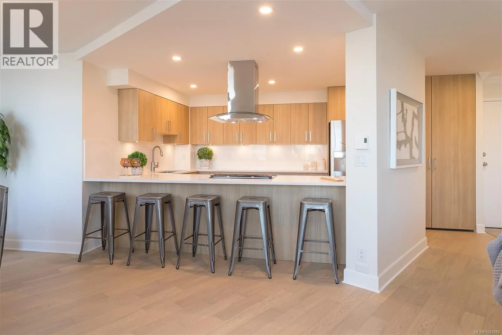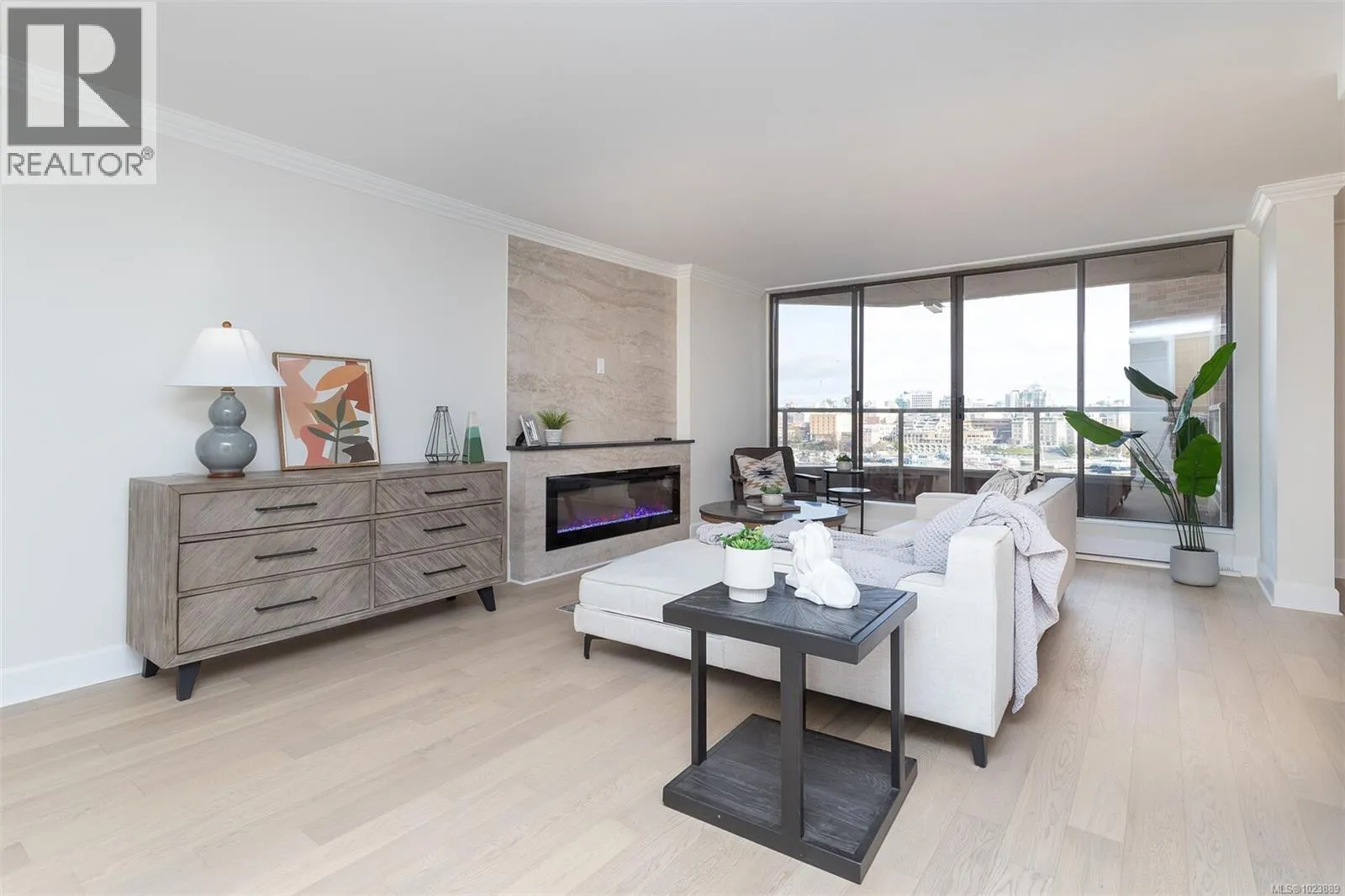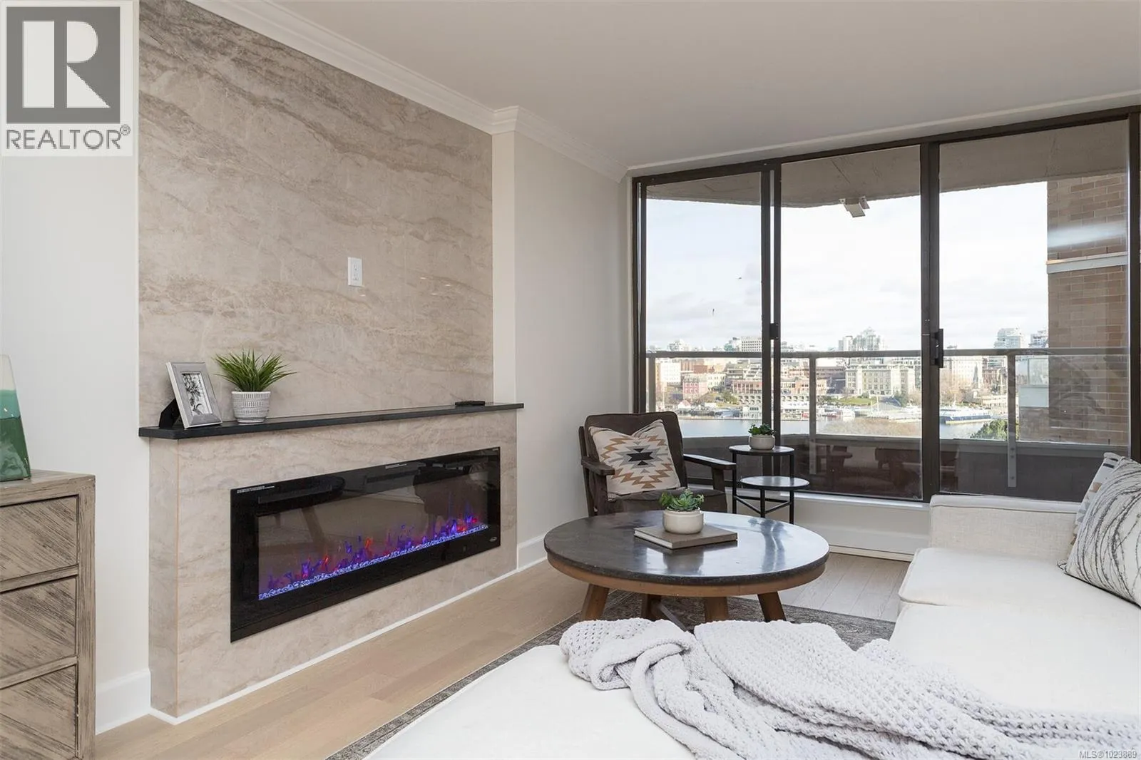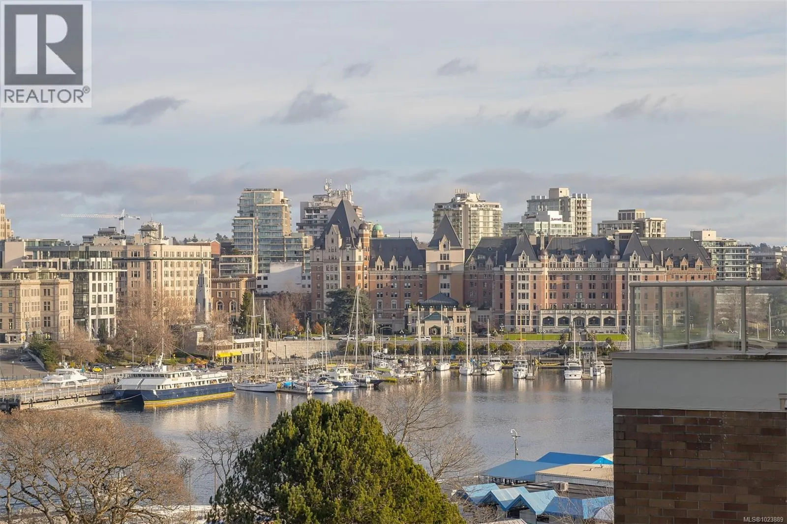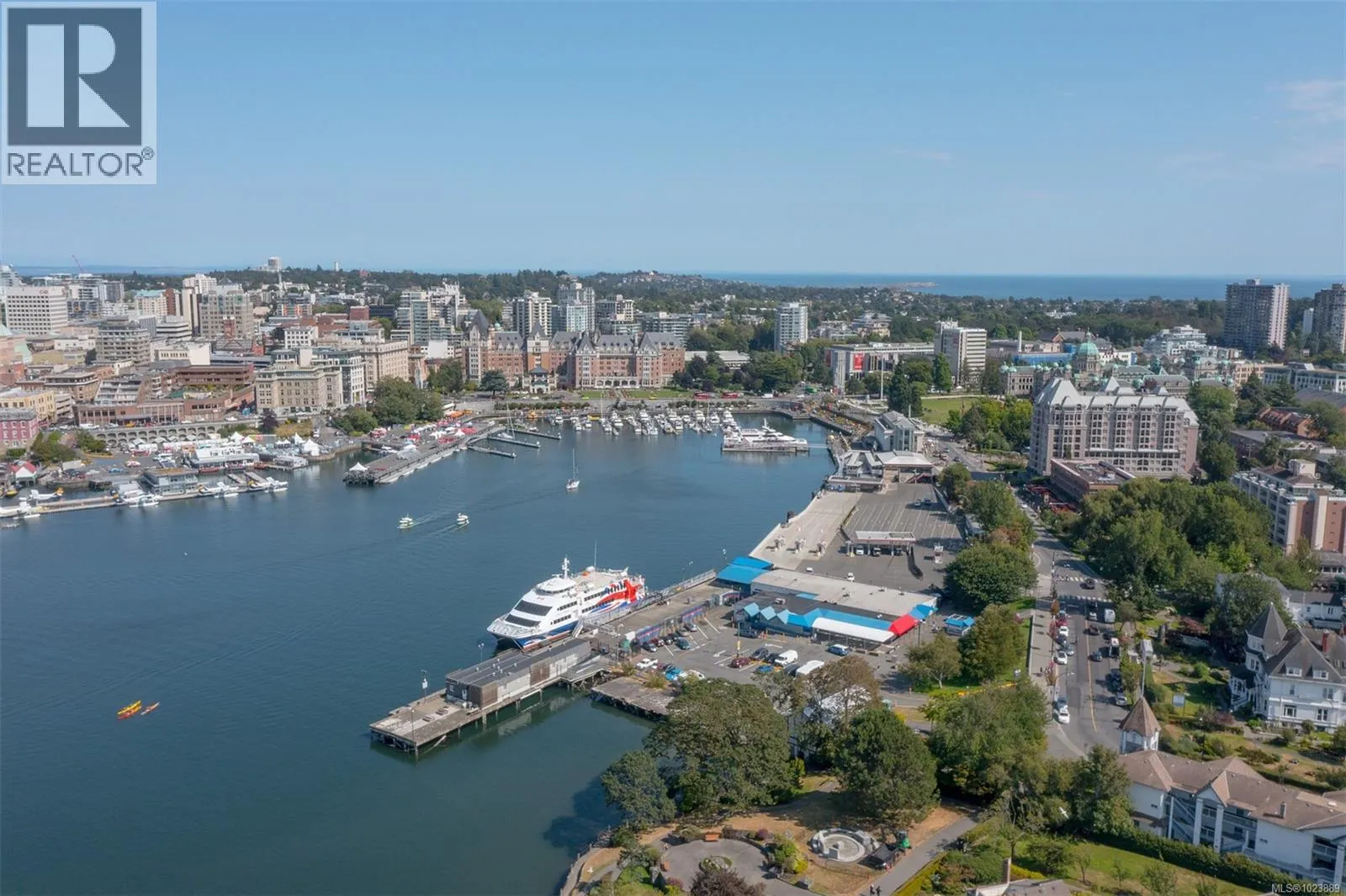 Come and discover this absolutely stunning 8th floor 2-Bedroom, 2-Bath condo with some of the most incredible views of the magical Victoria Inner Harbour, marina's, and city including the historic Empress Hotel. This large 1200 sf home has been completely transformed into a modern and sophisticated residence so you can just move in and enjoy. You will love the brand new wood grained chefs kitchen featuring quartz counters, 5 person eating bar, new Stainless Steel appliances, and under-counter lighting. Very open design allows beautiful views from all principal rooms including both over-sized bedrooms. All new flooring including top quality laminate, new bathrooms, new fixtures, new feature fireplace, and all redecorated. Laurel point offers a gym, rec room, pool, library, and underground secure parking. This location is second to none - steps into the Inner Harbour, Fisherman's Wharf, restaurants, and shopping. You deserve this so come and view today. (id:27476)