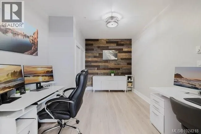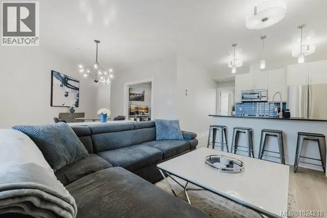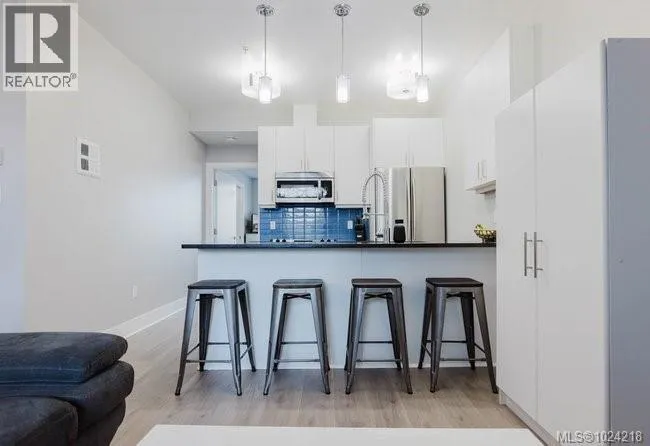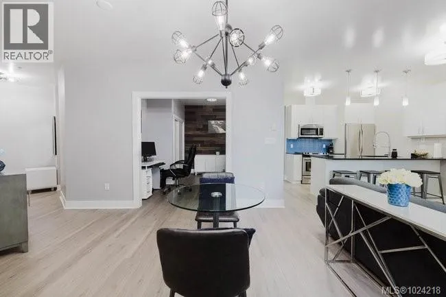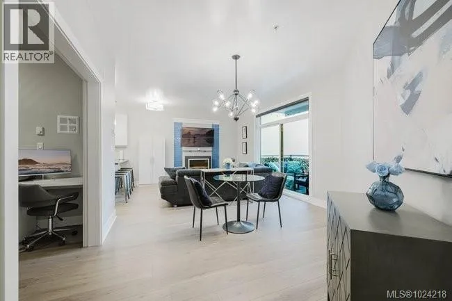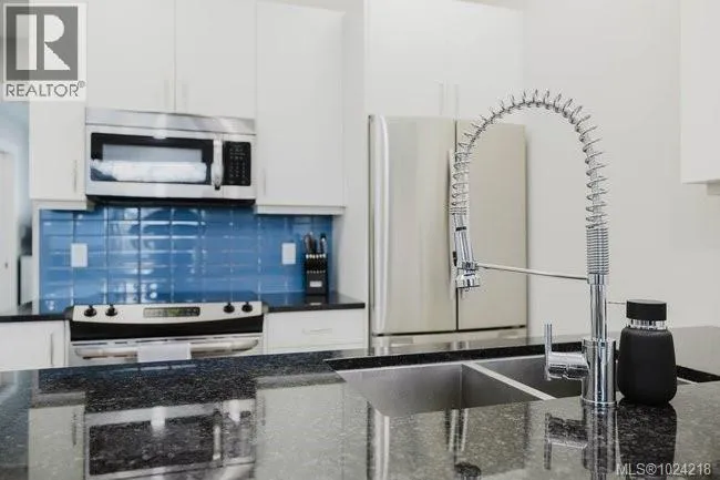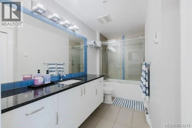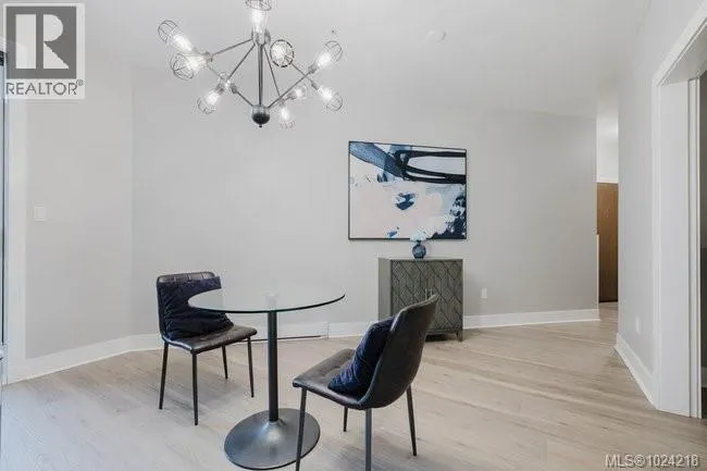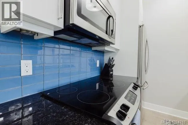 It's just perfect! A modernized corner unit set quietly within growing Mayfair neighbourhood, offering comfort and privacy. The freshly painted, open living area is warm and inviting, highlighted by updated flooring, a sleek electric fireplace and extra-wide sliding glass doors that lead to private northeast-facing balcony, filling the space with flow-through, soft morning light. A chandelier adds an elegant touch. The kitchen is well appointed w/ stainless steel appliances, double sinks w/ garburator, granite countertops, and a casual eating bar. This home offers two bathrms, incl a generous 4-pce ensuite in the primary featuring a deep soaker tub, tile flooring, under-cabinet lighting, and striking blue accent tile plus a convenient 2-pce powder room, alongside in-suite laundry w/ stacked washer & dryer. Both bedrooms are thoughtfully designed, w/ the primary bedroom offering a peaceful retreat and the second bedroom enhanced by a distinctive wood accent wall. A thoughtful touch! (id:27476)