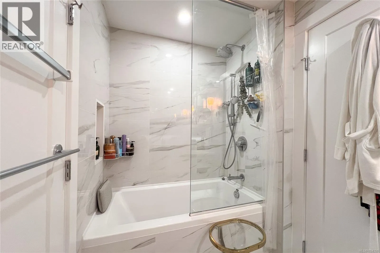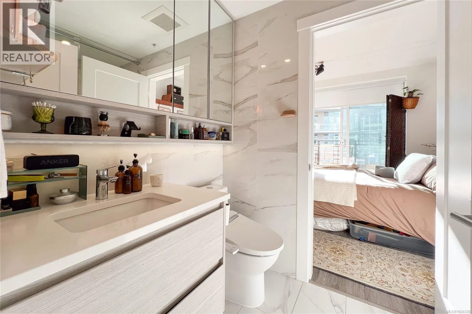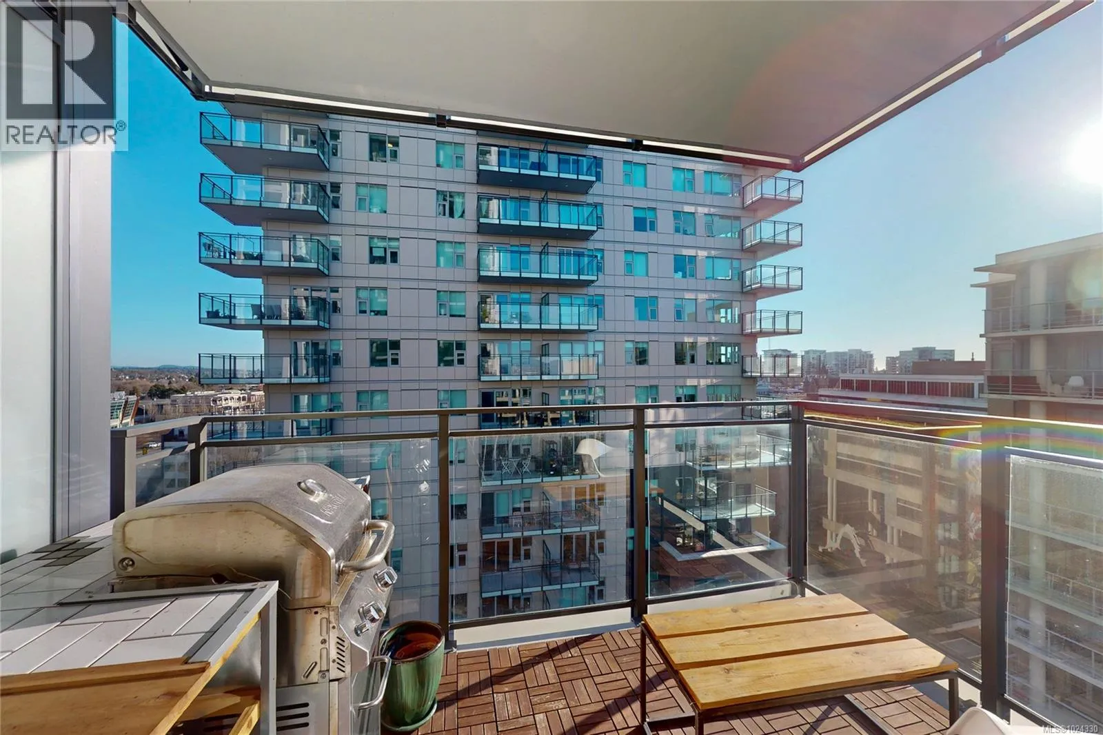 Welcome to Hudson Place One, the 25-story gem of the Victoria skyline. Located in the heart of downtown, everything you need is just steps away, from public transit and groceries to restaurants, coffee shops, and much more. Enjoy an array of amenities, including concierge service, fitness center, yoga studio, infrared sauna, game lounge, business center, guest suite, dog park, and more! This two bedroom one bathroom concrete, air-conditioned home has TWO balconies overlooking city's view. Open kitchen with stainless steel appliances, quartz countertops, and sleek cabinetry with ample storage space. In-suite laundry. The spa-like bathrooms offer a deep soaker tub and heated tile floors. Welcome to a life of comfort and convenience at 777 Herald St. come make it your DESTINED home! (id:27476)