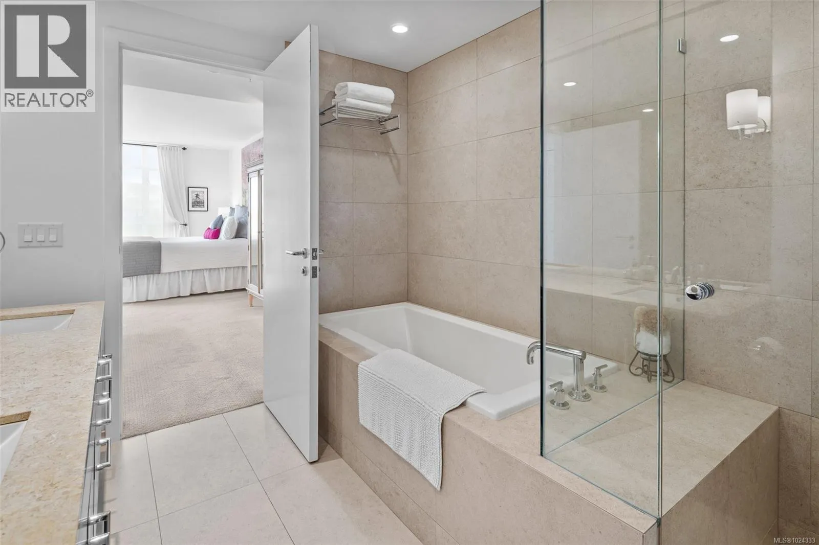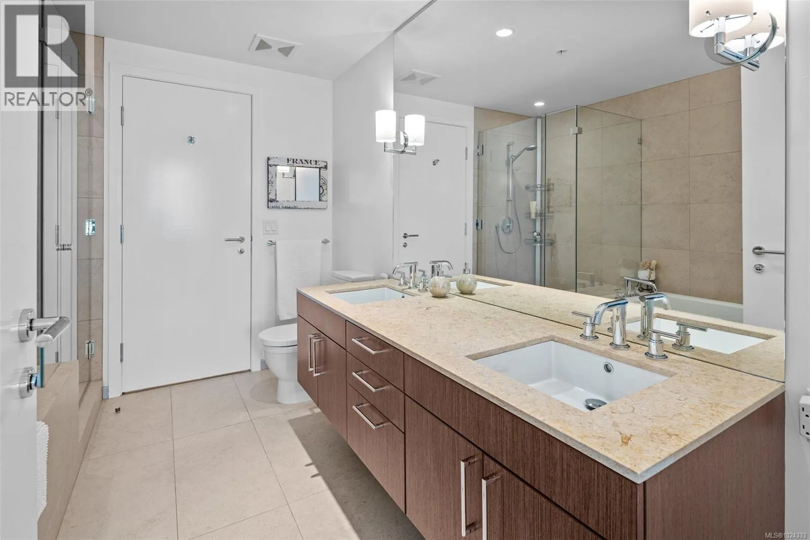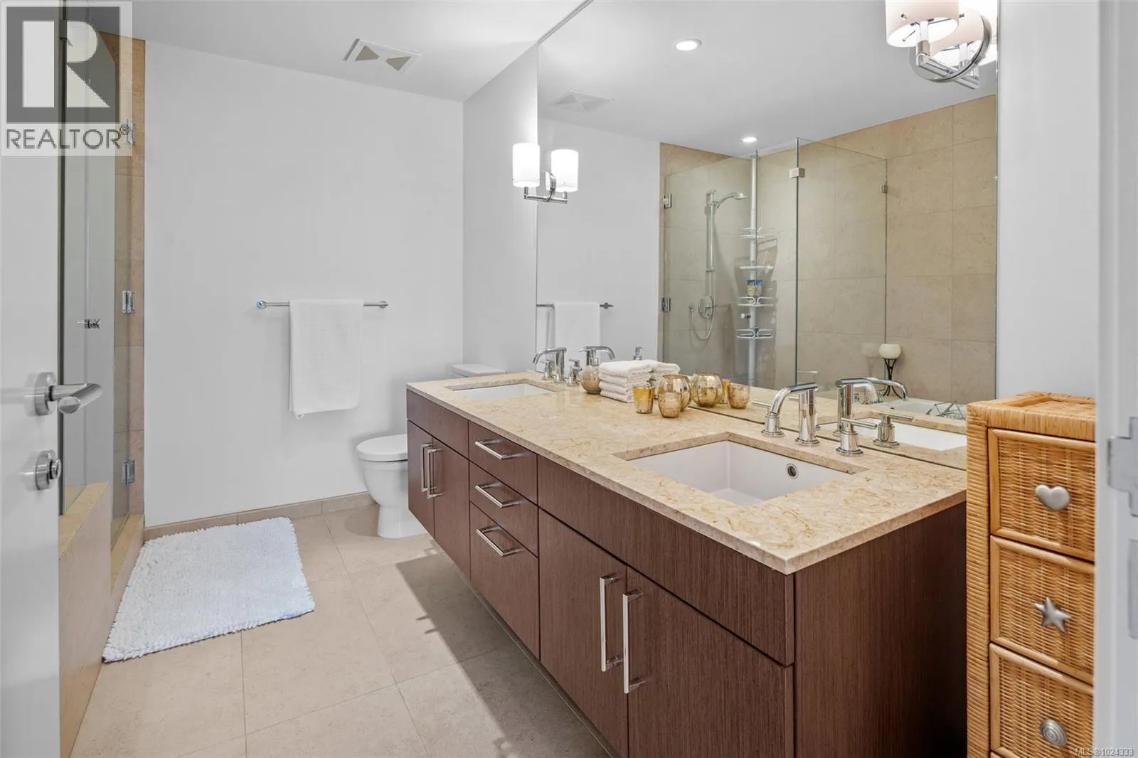 Signature luxury with over 1400 ft.² is a rare find in todayâs market. This south facing suite features 9â ceilings throughout plus floor to ceiling windows inviting natural light to flood the space. Thoughtfully designed plan with 2 primary bedrooms and their ensuites on opposite sides providing privacy and access to the 147 ft.² balcony. Sleek styled kitchen adjoins spacious dining and living areas, ideal for entertaining. A bonus flex room as separated space for office, crafts or cozy den. Bayview One is recognized as Victoriaâs Premier development, unparalleled in class and timeless elegance. Offering security and a sophisticated lifestyle, this is the perfect home for anyone looking to downsize without compromise. Immaculate hotel style living with an exceptional list of amenities - grand lobby entrance, concierge, conference, resident's lounge, large outdoor sun deck with kitchen and BBQ, fitness facility, hot tub and sauna, guest suite, bicycle and kayak storage rooms, car wash and pet parlour. Secure parking and storage locker all inclusive. Note: strata fees include heat, A/C, hot water and natural gas. Steps to E&N and Galloping Goose Trails, a short stroll from this superb location joins the scenic ocean front Songhees Walkway. (id:27476)