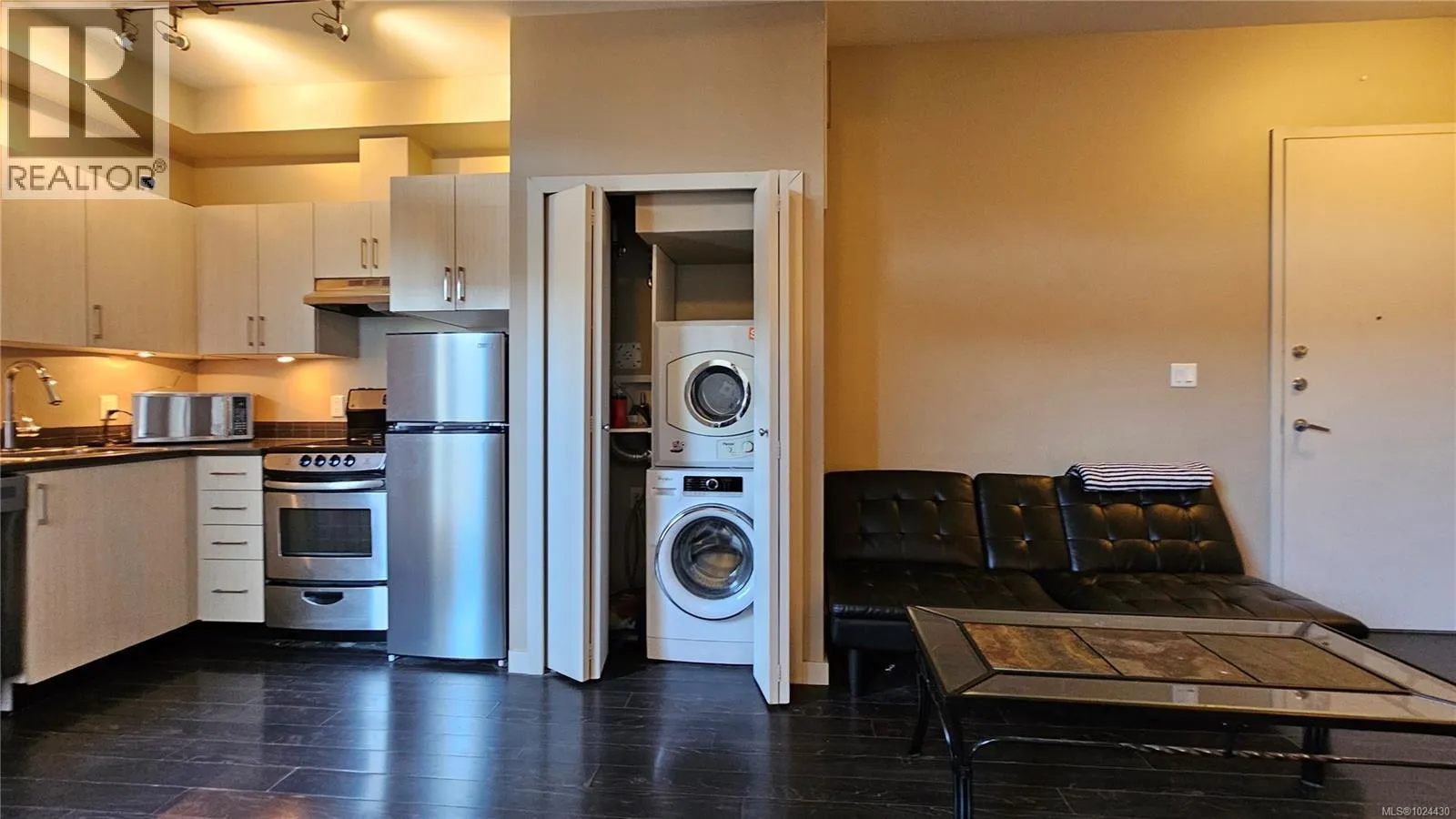 One of the most affordable one-bedroom condos in the city, priced well below BC Assessment. This home features an open-concept layout with soaring 10-foot ceilings, a sleek modern kitchen with newer stainless steel appliances, in-suite laundry, and a thoughtfully designed room divider that balances style and privacy. Included are a bike locker and storage locker. The living area extends to a private balcony, while the buildingâs standout rooftop patio offers sweeping mountain and city views, plus a shared BBQ area. Ideally suited for professionals and investors, this centrally located condo is just steps from Cook Street Village, Market on Yates, and the scenic trails of Beacon Hill Park. With easy access to cafes, transit, and bike lanes. This property offers an exceptional turnkey opportunity in the heart of the city. (id:27476)