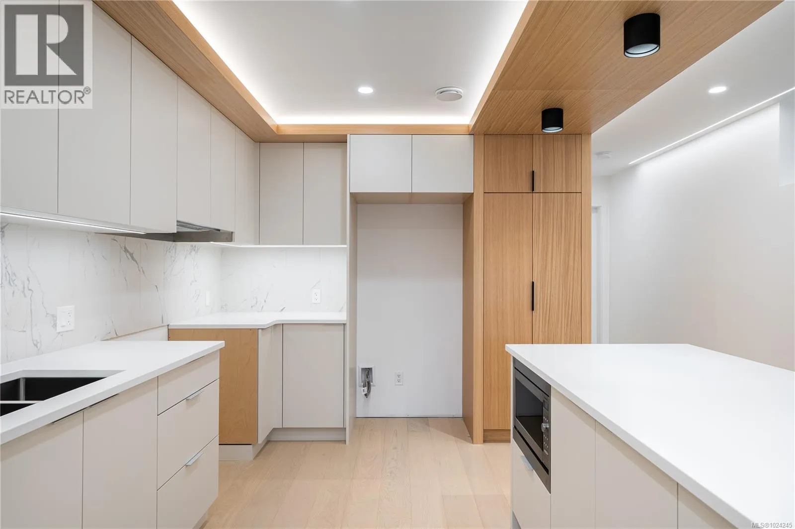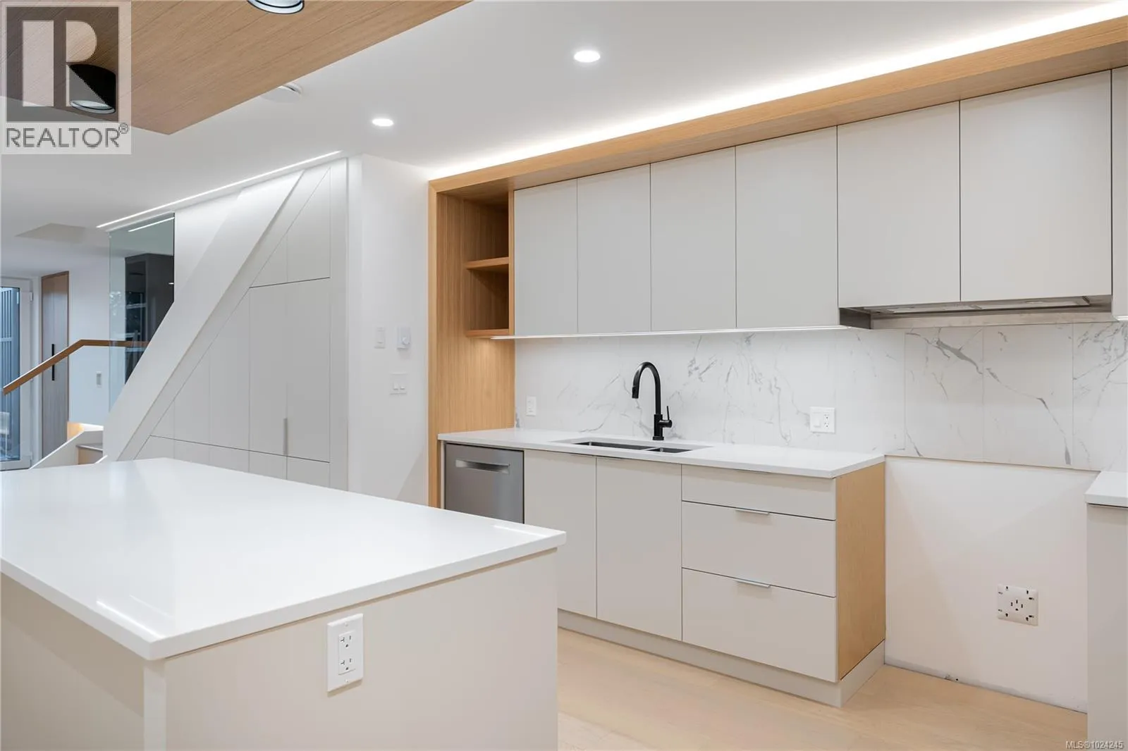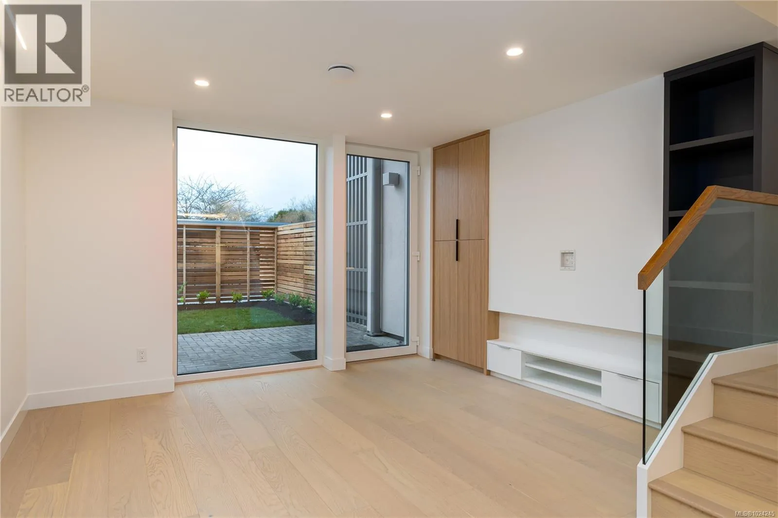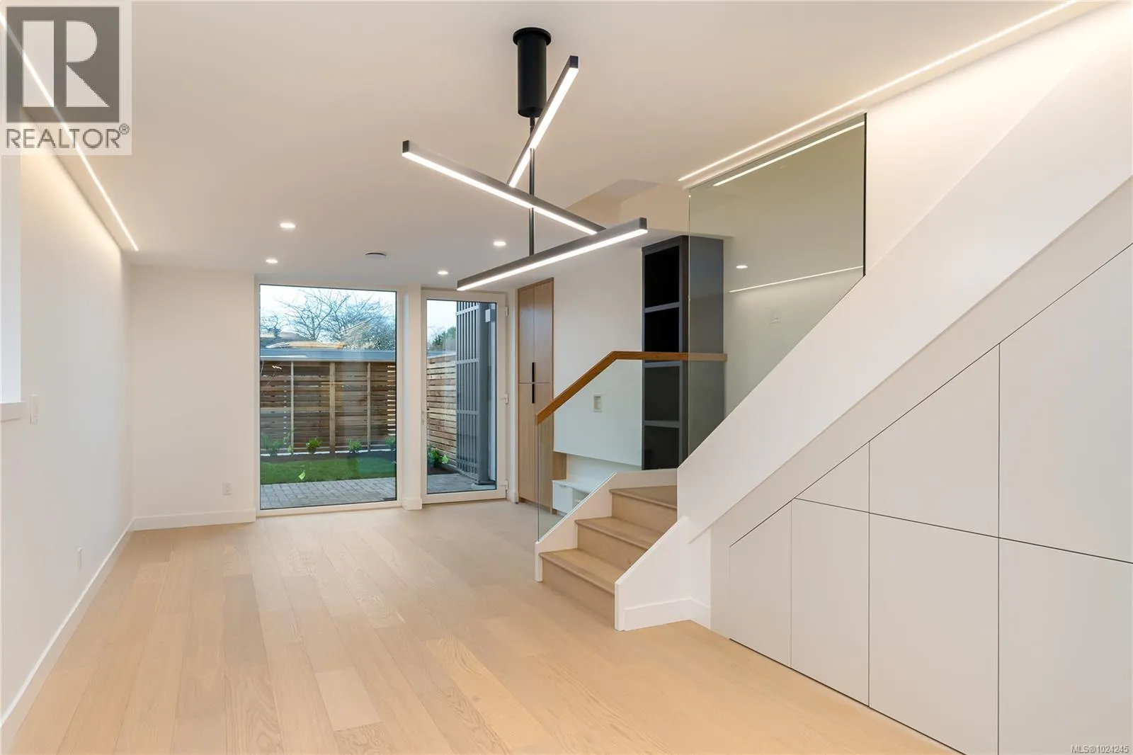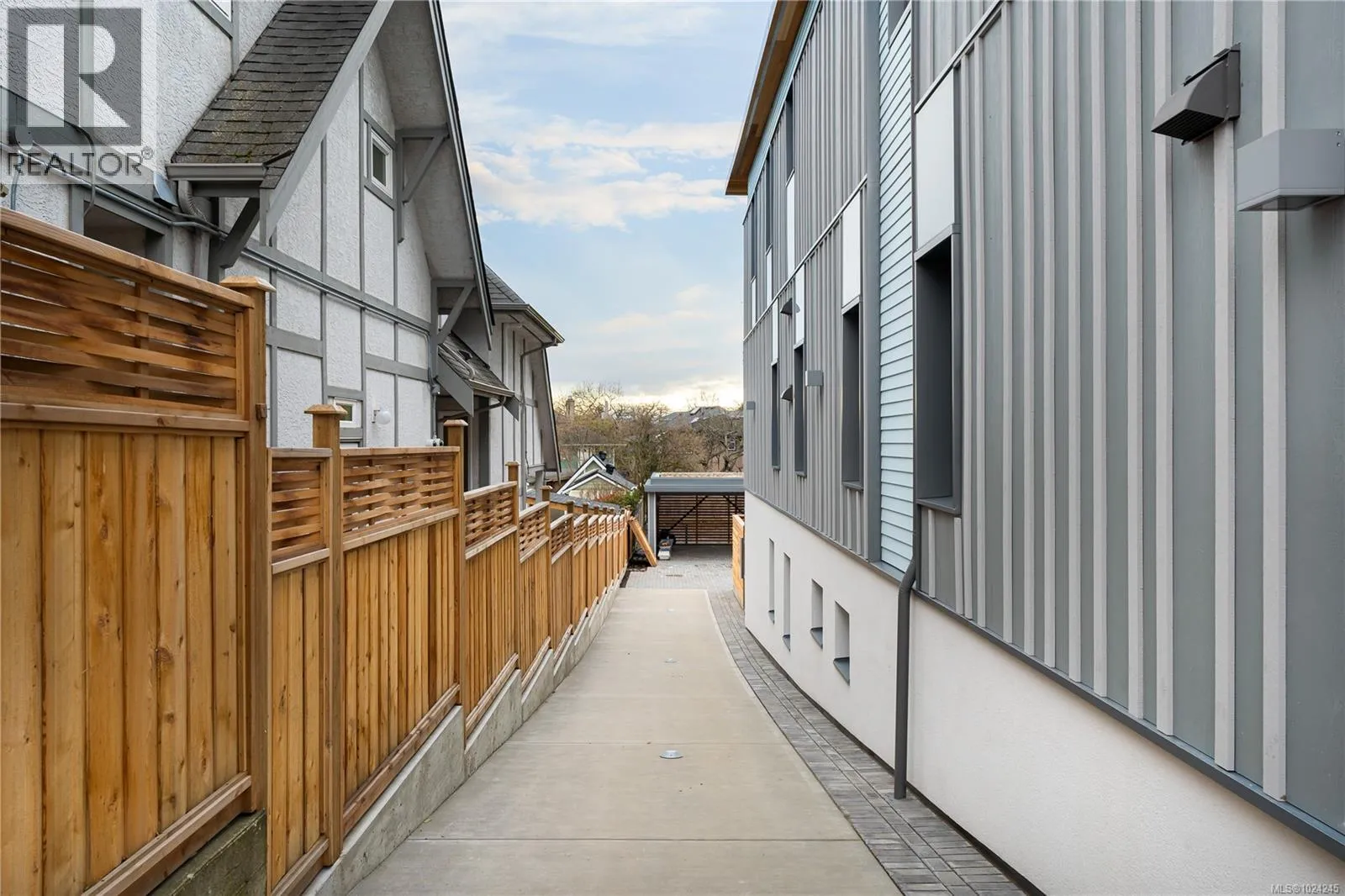 Introducing sustainable boutique luxury living redefined. 1417 May Street is architecturally designed by Award Winning Cascadia Architects, constructed by P. Gosgrave Construction and interior design by Spot Design Company. Sleek modern lines meet functional design with each unit featuring custom cabinetry throughout to maximize storage, engineered oak plank flooring, Bosch appliance package, and HRV. Warm wood tones mixed with crisp whites provide the perfect balance and emphasize the natural light throughout. The sloped lot fronts onto Moss Rocks Park with views of the park and provides privacy for the front units and the lower units have private fenced in rear yards with screening. A large, shared yard behind the carport is fully fenced for residents to enjoy at their leisure. No detail is overlooked with these newly constructed townhomes in a location that canât be beat. Only a stoneâs throw to iconic Dallas Road and the beach, Fairfield Plaza, and a short distance to all that downtown Victoria has to offer. (id:27476)