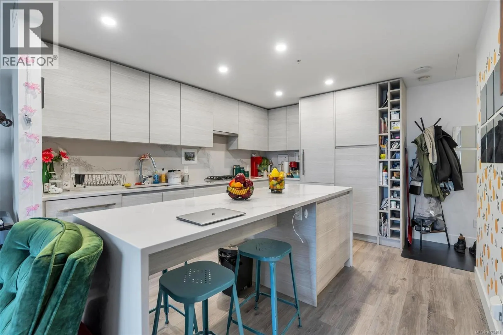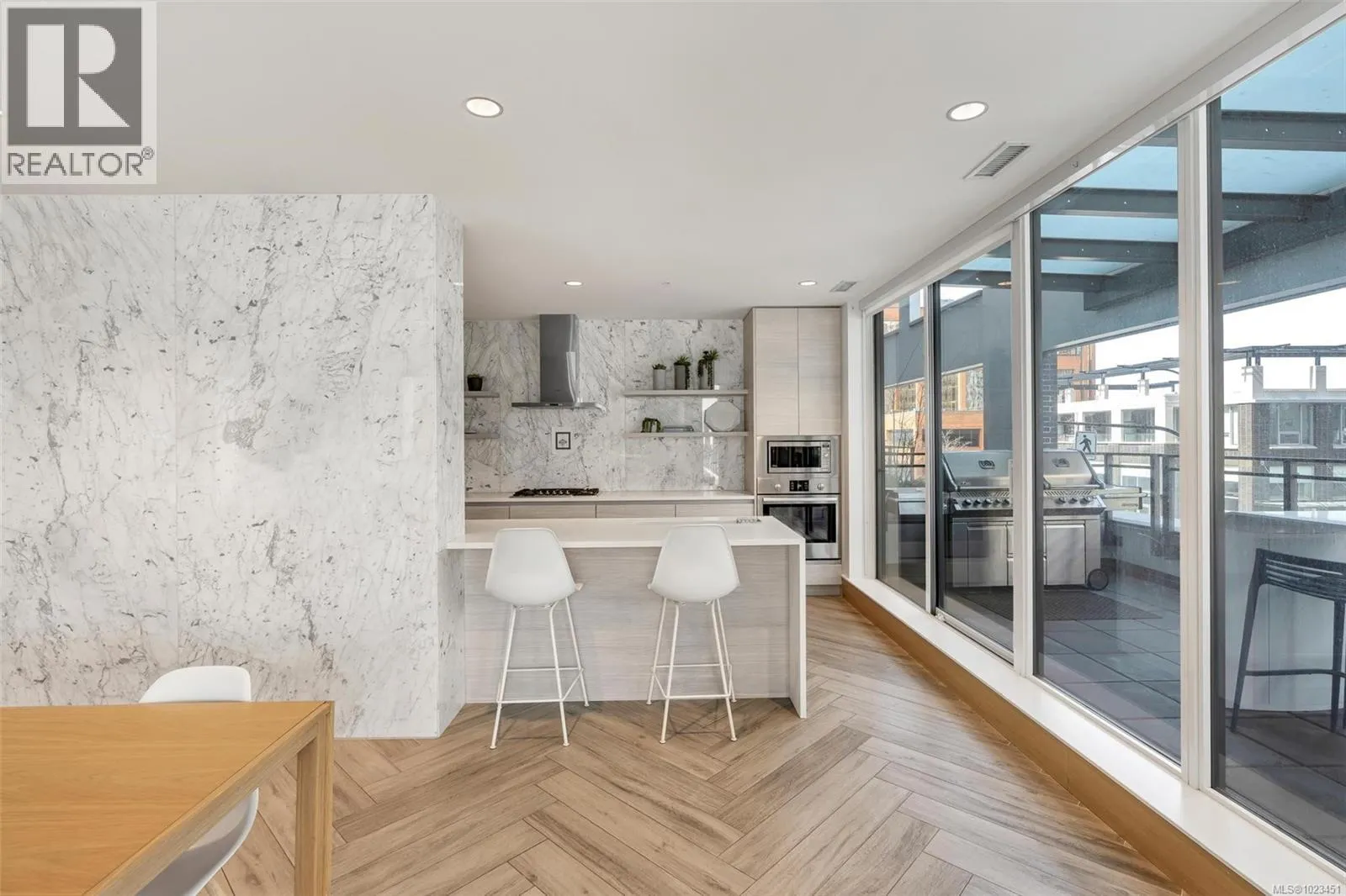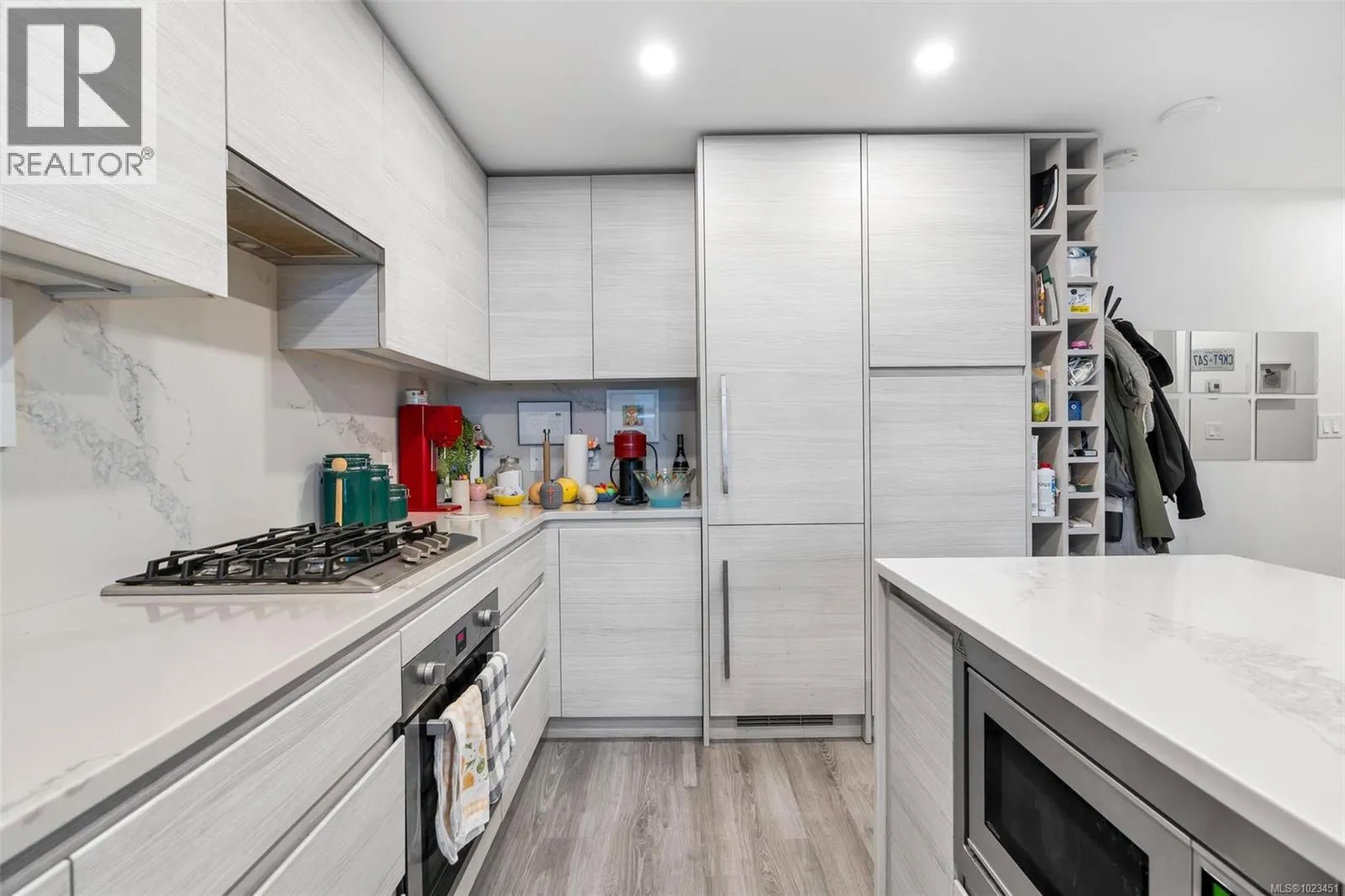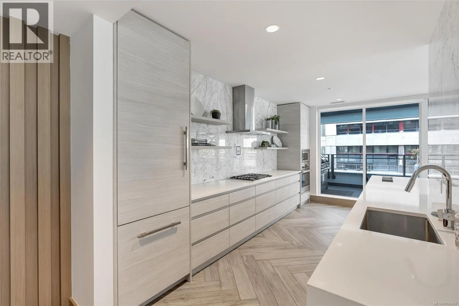 Perched on the 11th floor, this bright and well-designed 1 bed / 1 bath home at Hudson Place One offers the perfect balance of elevation, comfort, and value. The open-concept layout maximizes space and natural light, featuring a quartz waterfall island, Bosch appliances, gas cooktop, and an integrated fridge and dishwasher for a seamless modern look. Floor-to-ceiling windows and a private balcony provide open city views without the intensity of ultra-high floors. Residents enjoy over 11,000 sq ft of resort-style amenities, including 24-hour concierge, fitness centre, yoga studio, sauna, co-working space, guest suite, and expansive outdoor common patio with fire pits and outdoor kitchen. Secure underground parking and a separate storage locker add everyday convenience. Centrally located in downtown Victoria, just steps to cafés, restaurants, theatres, grocery stores, and everyday amenities â offering true urban convenience and lifestyle appeal. Ideal for homeowners and investors alike. (id:27476)