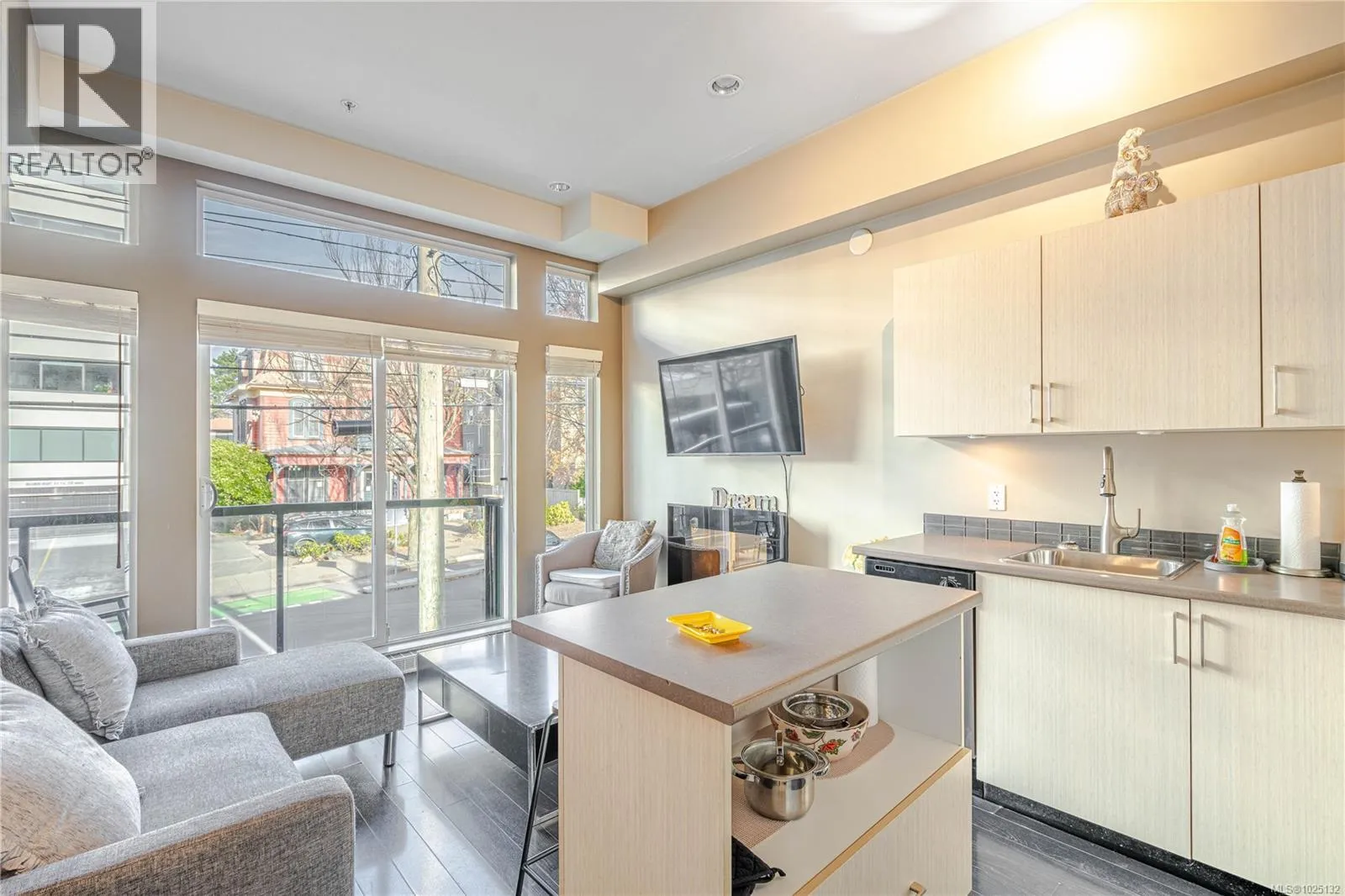Welcome to the Zen. Unit 203 is a well-designed one bedroom Condo that is sure to please, the location couldn't be better right along bustling Fort Street and steps to Cook St., Village. The stylish Condo is perfect for part time or minimalist living, students, professionals and investors alike. Every inch is perfectly thought out to ensure maximum storage and space, zoning even allows for live or work. Boasting 10 foot ceilings, stainless steel appliances and in suite laundry. You have restaurants, pubs, market, cafes and shopping right at your doorstep. Enjoy breathtaking views at the rooftop terrace perfect for hosting a summer barbecue. On a main bus route to Uvic and walking distance to the ocean and Beacon Hill Park this is a lifestyle to be desired. Call today for your private viewing of this urban condo on the edge of Fairfield, Rockland and downtown. (id:27476)