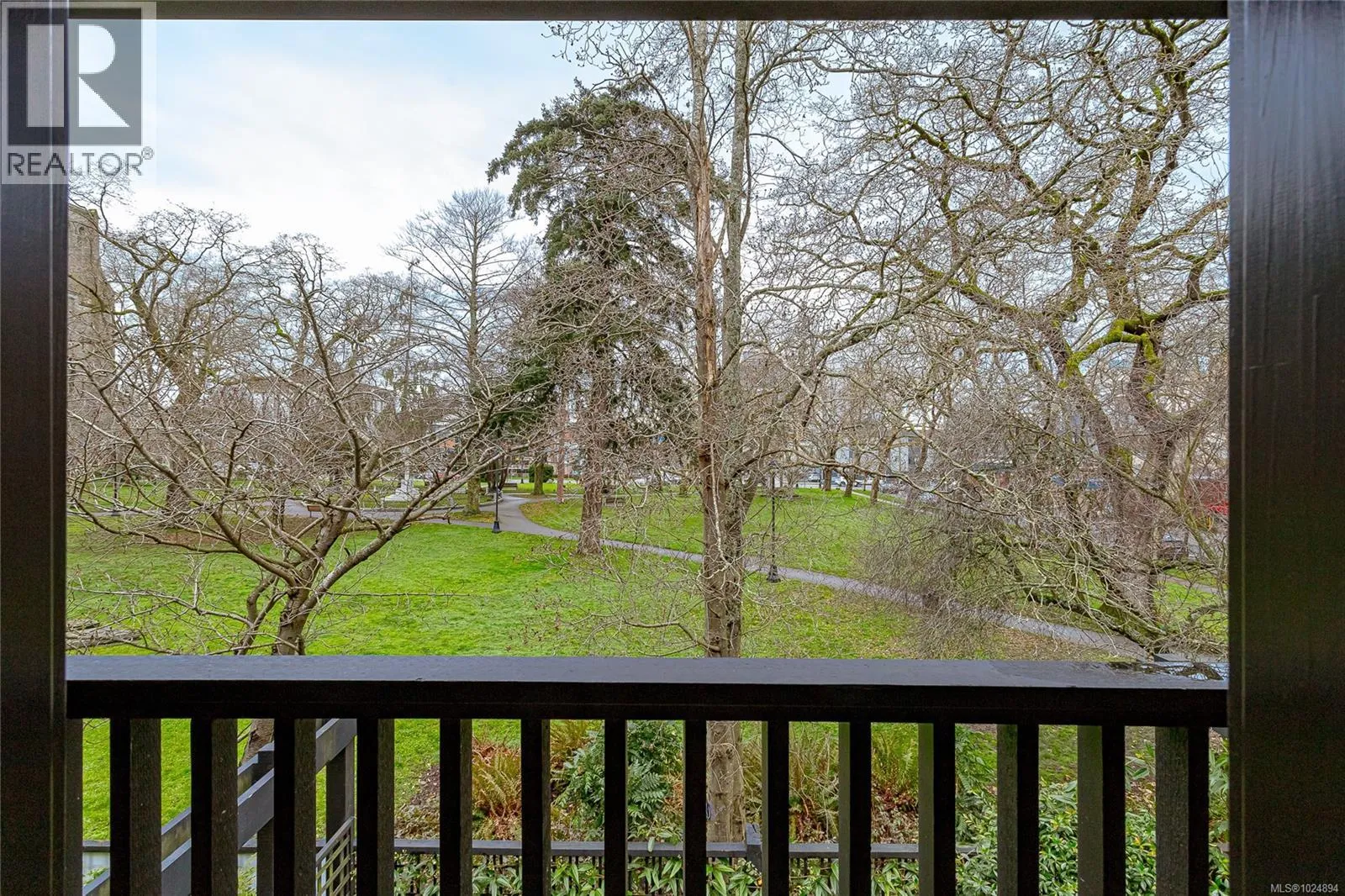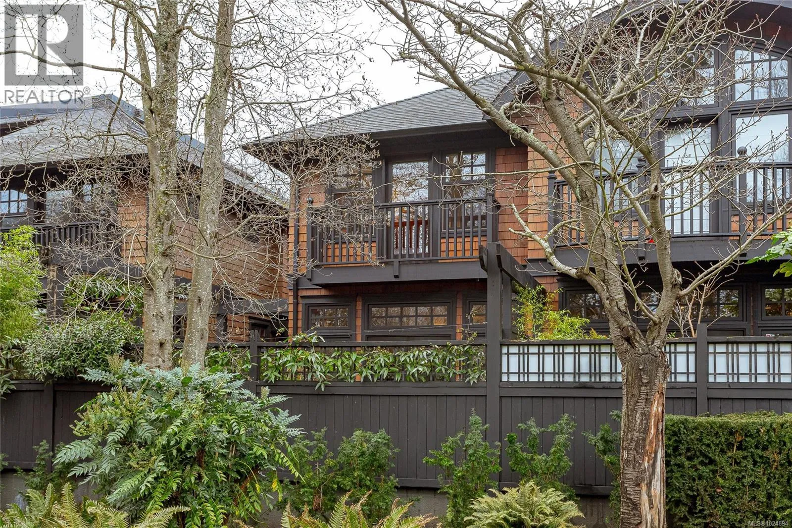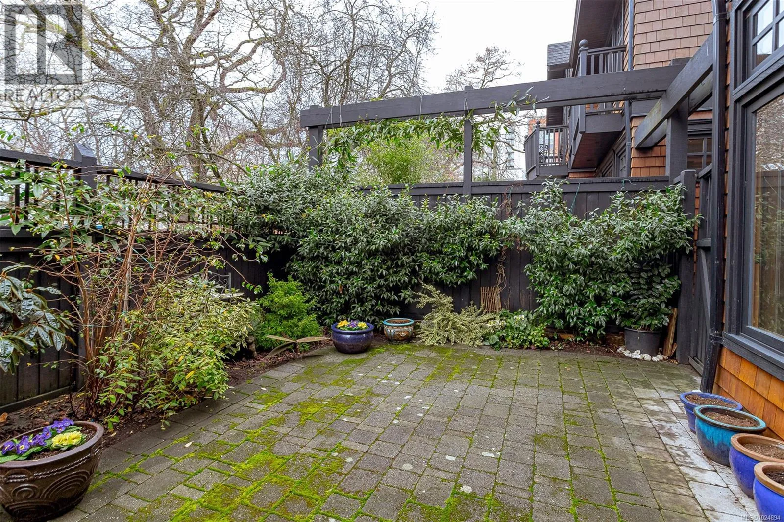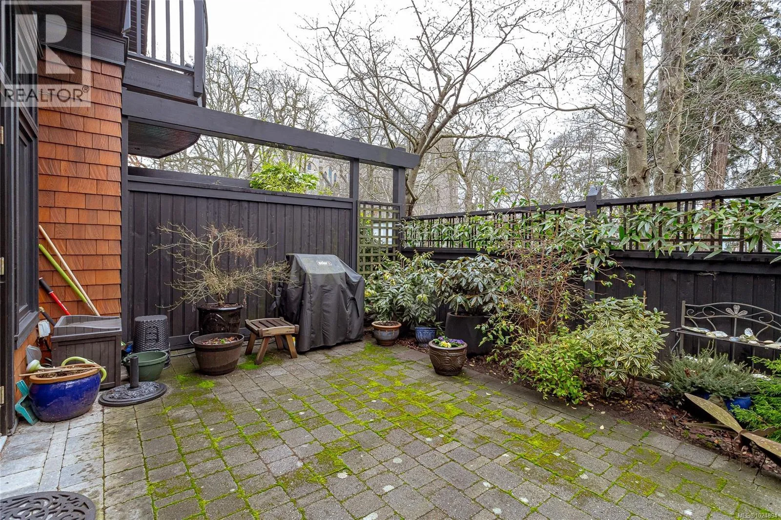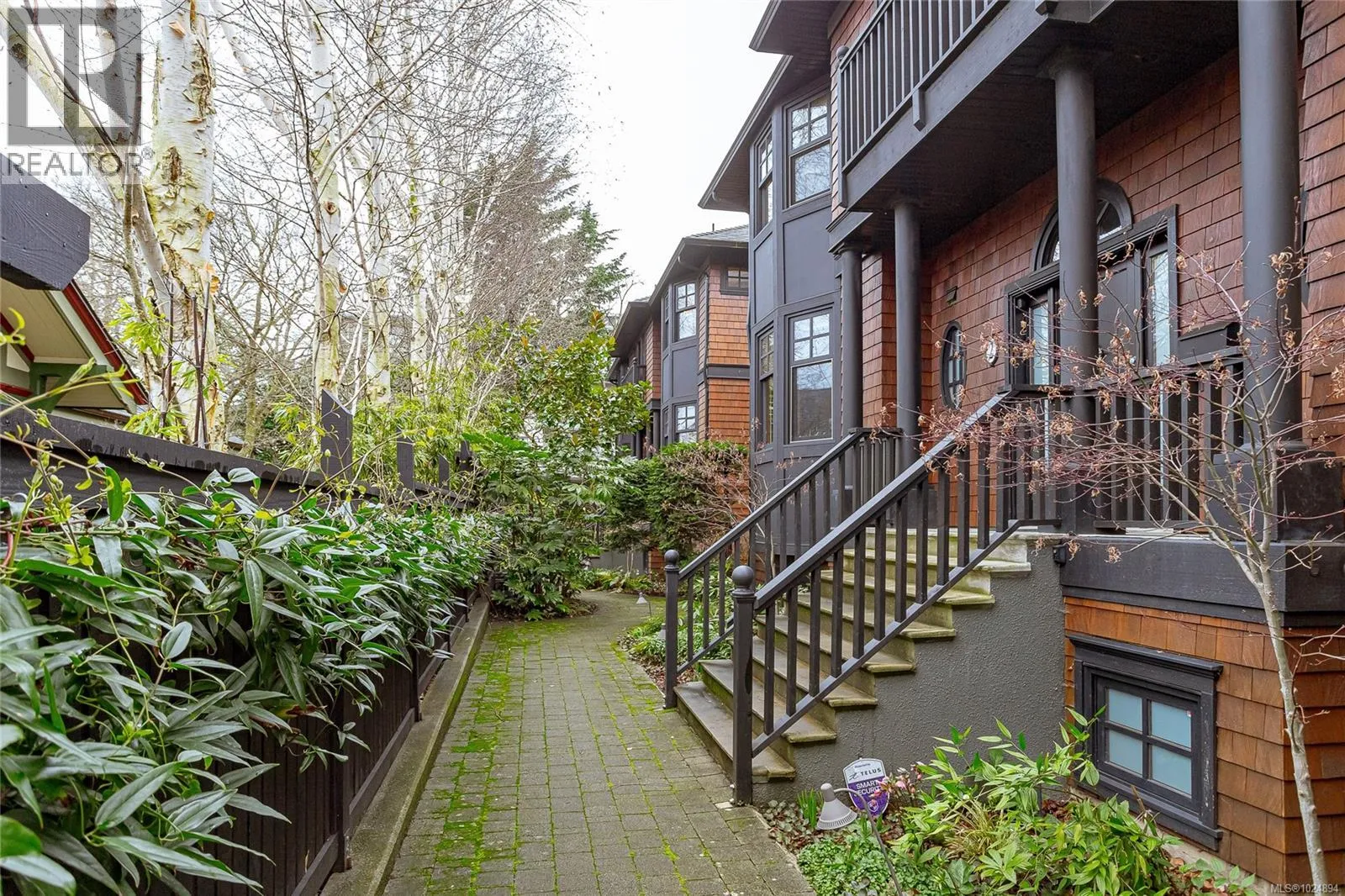 Enjoy luxurious downtown Victoria living at the award winning Terra Rose, built by Abstract Developments. A private enclave of 6 townhomes overlooking heritage greenspace. An oasis within the city. Enter through a private breezeway surrounded by mature landscaping & custom walkway lighting. Over 2000 sq. ft. of elegant living with 3 bedrooms and 4 bathrooms. Quality finishings including 10' ceilings, cherry wood floors, custom wood & stainless appliances, granite counters, wine fridge, built in cabinetry, in-floor radiant heat, gas f/p. Primary bedroom has vaulted ceilings, Juliet park view Balcony, spa inspired ensuite w/separate shower & soaker tub. Lowest level offers 3rd bedroom or office with murphy bed. Entertain on your 200 sq/ft private garden terrace w/BBQ hookup. 2 underground parking spots with EV charger, separate storage plus a heated storage attic. 5-10 minute walk to most downtown shopping, restaurants, theatres, cinemas, and cultural venues. (id:27476)