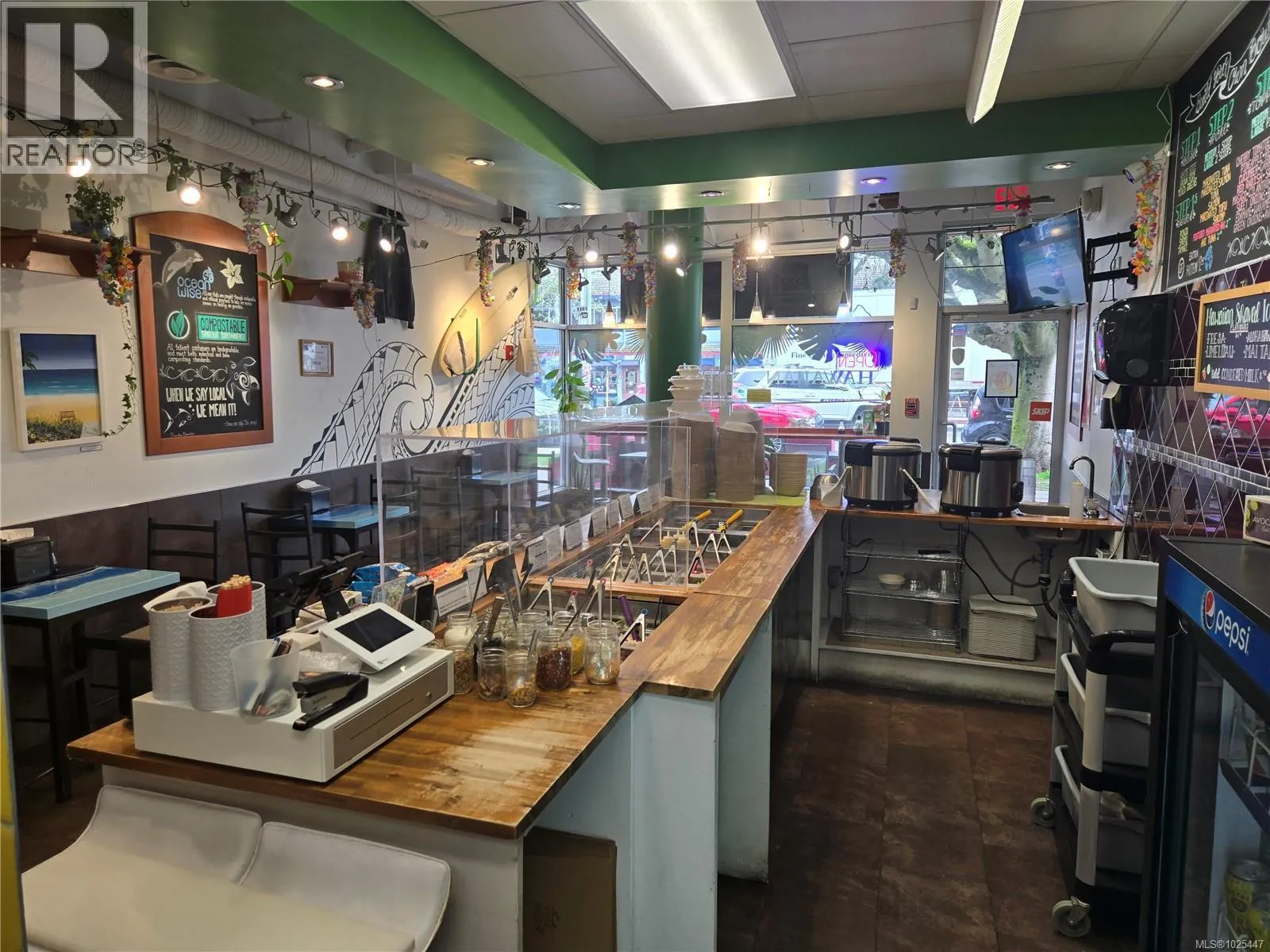 Turnkey restaurant (no commercial hood) in a prime location with excellent street exposure, close to park, residential areas, and popular tourist attractions. The area is experiencing significant new developments, offering even more potential. Interior offers over 800 sqft of space, including 19 seating options. Recently renovated with updated flooring, a modern serving bar, stylish interior décor, and new light fixtures. A fantastic location with reasonable rent! Come make it your DESTINED business! Do not approach staff or business owner regarding the sell of business.* (id:27476)