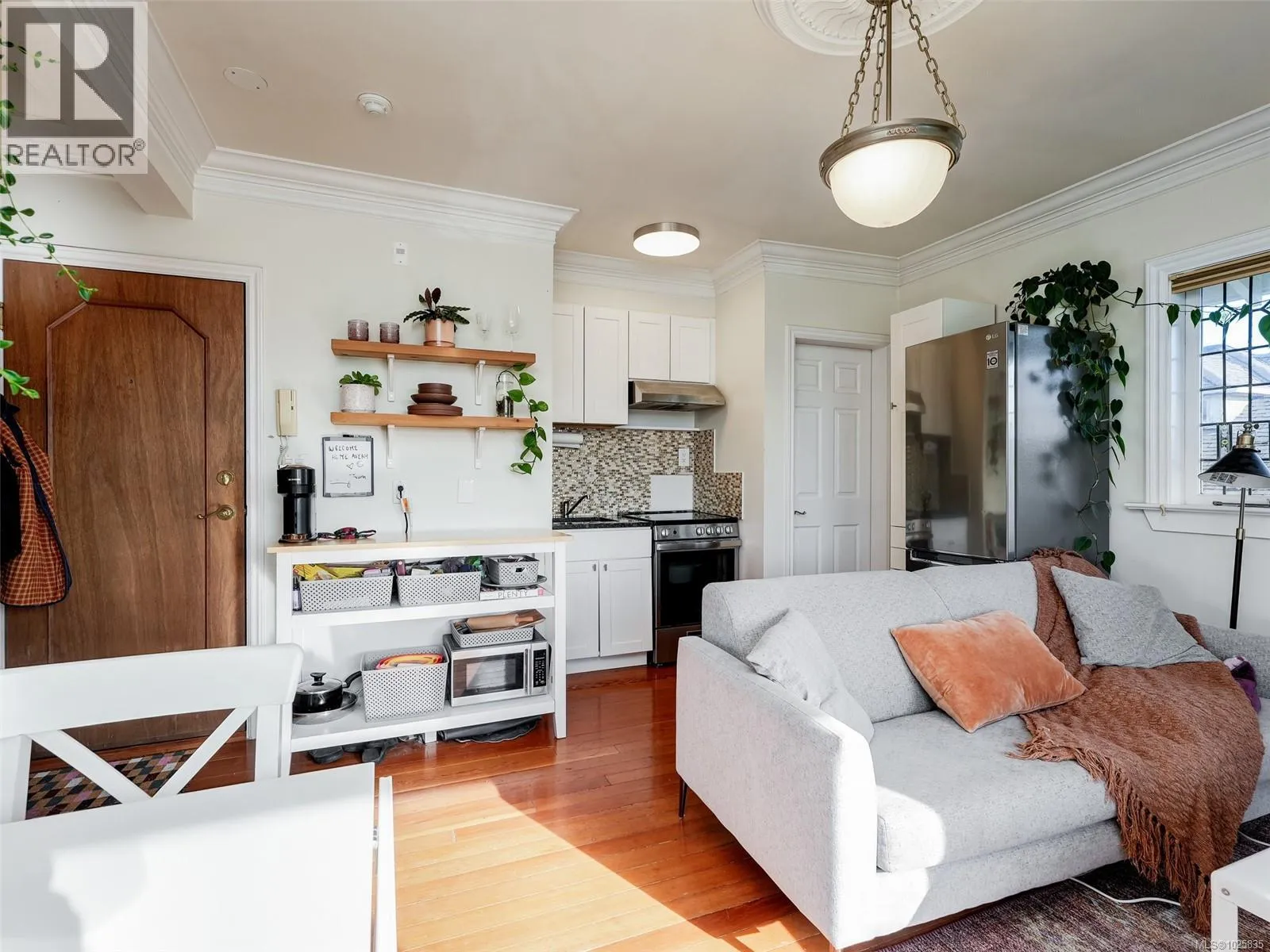 Charming character conversion suite in a beautiful 1909 home tastefully restored into 7 unique suites in 1996. This is a delightful 1 bedroom,1 bathroom sun filled, corner unit where light pours in from 3 sides to create a bright and breezy ambience. With lovely outlooks from all rooms, features include cozy gas fireplace in the living room, open plan kitchen with stainless steel appliances, fir floors throughout, stained glass windows and crown mouldings. Laundry is shared with one other unit plus there's a parking stall, separate storage locker and bike storage. This is a small, pet friendly complex rich in period details that is set on a tranquil, tree-lined street, perfect for cyclists, that is in one of Victoria's most desirable locations where you are just a short stroll to quaint Cook Street Village, Dallas Road beaches, Beacon Hill Park's gardens and the city's picturesque and vibrant Downtown. (id:27476)