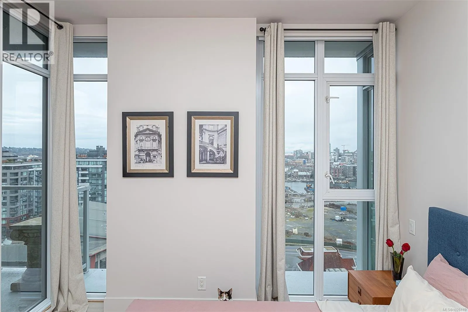 Beautiful and in like-new condition, this dramatic and stunning home at the Promontory, Victoriaâs premiere 21 story high quality steel & concrete built luxury condos. This 12th floor two-bedroom, one bath bright corner unit features a secure underground parking spot, located directly across from elevator entrance, for ultimate convenience. Full floor-to-ceiling windows throughout, combined with a super functional floor plan, creates the feeling of bright endless space. Euro-style kitchen, with gas stove & high-quality appliances including hidden cabinet faced fridge for elegant & seamless look. Great size balcony, that easily allows enough space for BBQing and entertaining with friends and family. In suite laundry, central heating/AC, secure UG parking & storage locker. Building features concierge service, bookable social lounge, and fitness facility. Pets, rentals, and kids welcomed. Easy walking to downtown shopping & dining plus the vibrant community of Vic West at your door step. (id:27476)