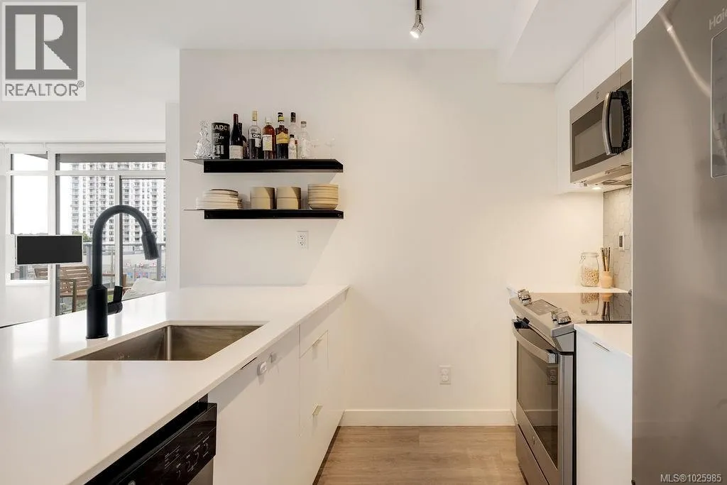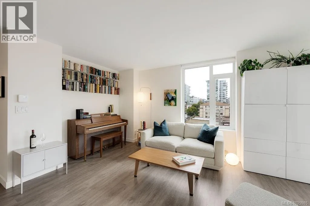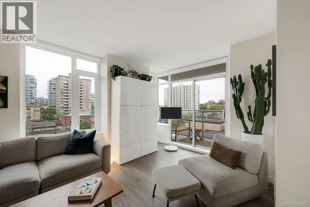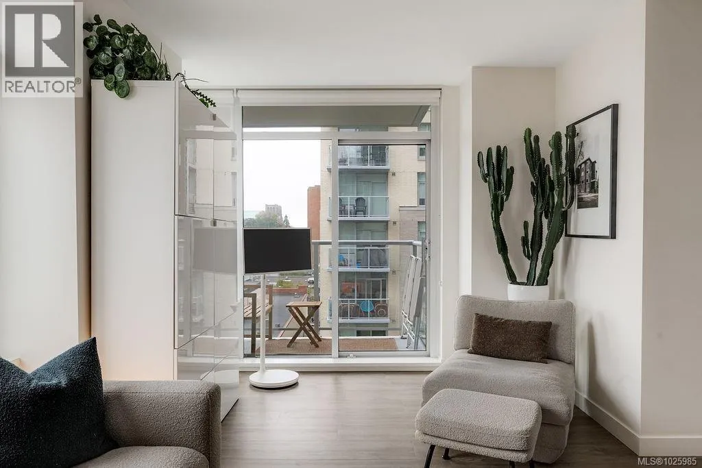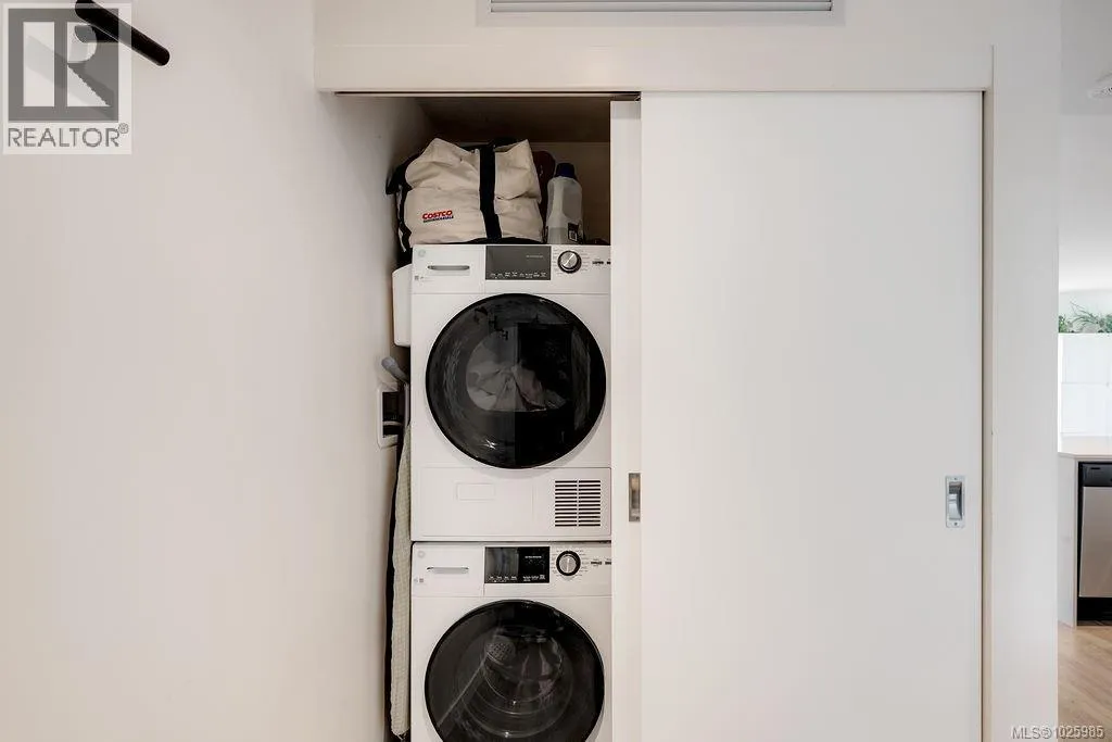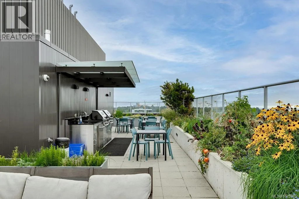Discover the vibrant lifestyle of downtown Victoriaâa coastal capital known for its walkable streets, historic architecture, oceanfront pathways, and year-round events. From the iconic Inner Harbour and scenic waterfront to boutique shopping and an exceptional culinary scene, Victoria blends West Coast charm with urban convenience. Whether youâre a first-time buyer or seeking a lock-and-leave retirement home, this location offers effortless living in one of Canadaâs most desirable cities. This bright, contemporary 2-bedroom, 1-bath condo offers over 780 sq ft of thoughtfully designed space and includes your personally owned parking stall. Enjoy beautiful city and mountain views from the sunny south-east exposure or relax on your private balcony just off the living room. The modern kitchen features quartz countertops, stainless-steel appliances, in-suite washer and dryer, and sleek luxury vinyl plank flooring throughout. Added conveniences include EV charging, secure underground parking, a bike room, and a storage locker. Residents also enjoy a rooftop terrace with BBQ area, dog run, and community gardenâperfect for embracing Victoriaâs mild climate and outdoor lifestyle. Just steps to dining, shopping, transit, Harbour Air, and the Victoria Clipper. Includes remaining 2-5-10 warranty. Measurements are approximate (id:27476)