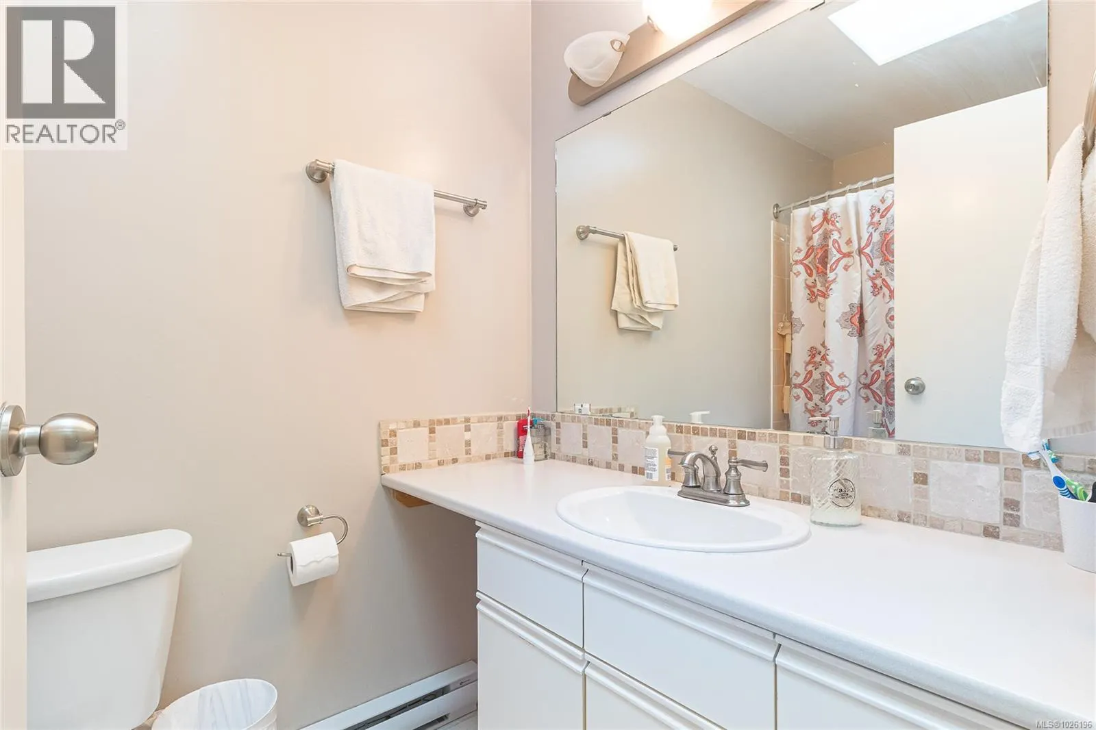 Tucked away in the sought-after Oaklands neighbourhood, this charming 3-bedroom townhome offers the perfect blend of comfort, convenience, and community. Part of a rare 3-unit complex, this home enjoys a quiet setting while being just steps from Hillside Mall, schools, parks, transit, and more. Inside, youâll find a spacious, light-filled living and dining area complete with a cozy fireplace. The sunny kitchen features stainless steel appliances, an eating nook, and direct access to a private sunroom and quaint patioâperfect for morning coffee or enjoying the day. Upstairs, the thoughtful layout provides three bedrooms, including a primary with 3-piece ensuite, plus an additional full bathroom, skylights, and in-suite laundry. The attached single-car garage, driveway parking, and lovely garden outlook create great curb appeal. The current great tenants would love to stay, making this an ideal opportunity for investors or those seeking future flexibility. (id:27476)