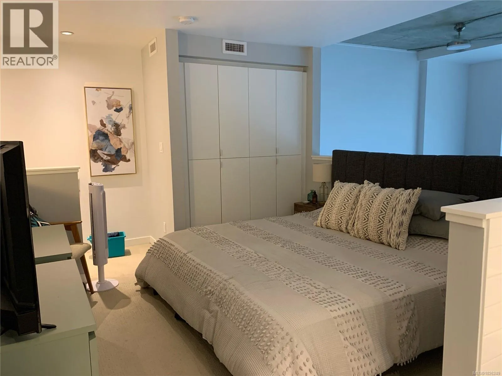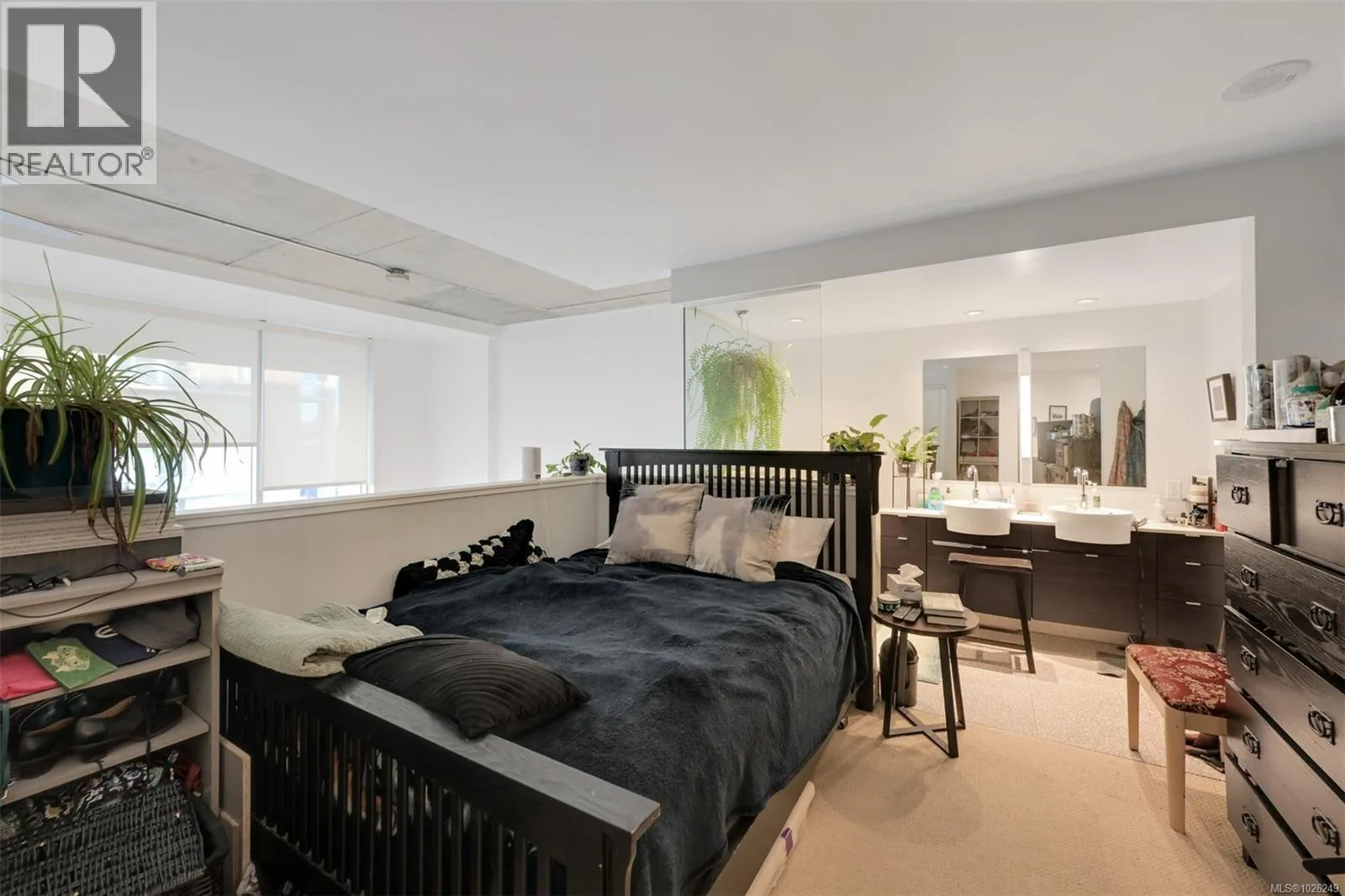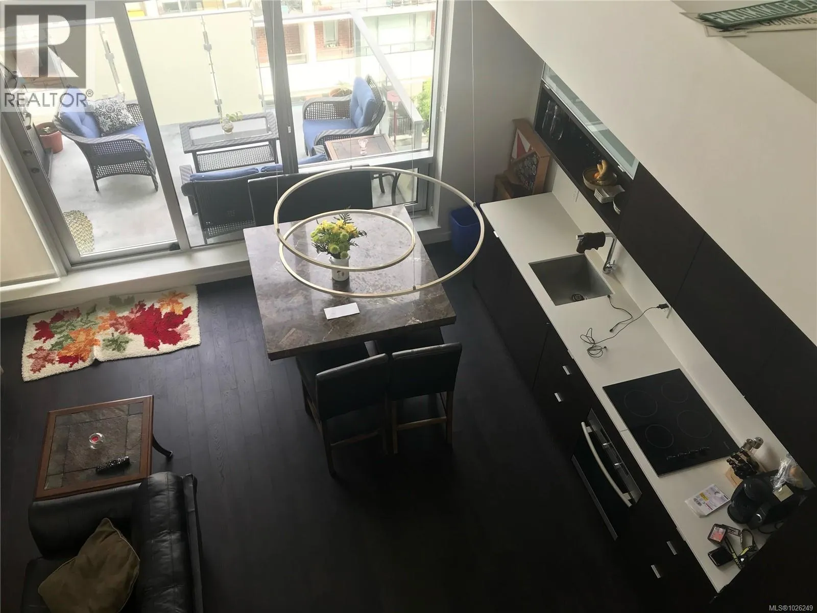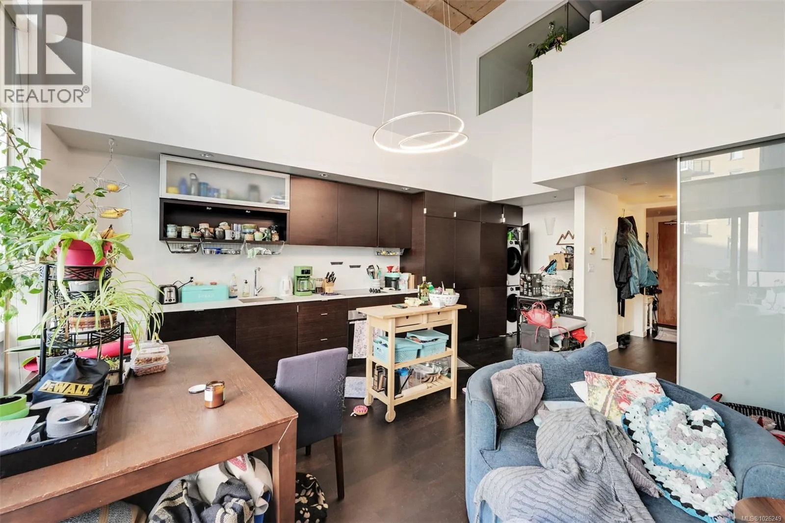 Live in style at The Hudson! This stunning east-facing loft features soaring 18-foot ceilings and oversized windows that flood the space with beautiful natural light. Step out onto your private balcony, BBQs are allowed, perfect for morning coffee or evening entertaining. It's rare to have a Condo availlable with a Balcony in the Hudson! Rich dark hardwood floors and sleek matching kitchen cabinetry create a modern, sophisticated feel, while the carpeted upper loft and heated tile floors in the bathroom add warmth and comfort. The open-concept kitchen is designed to impress, complete with stainless steel appliances, a hidden cabinet-front fridge and dishwasher, crisp white countertops, and contemporary open shelving. Whether hosting friends or enjoying a quiet night in, the flexible layout adapts effortlessly to your lifestyle. Upstairs, the spacious primary retreat offers a luxurious five-piece ensuite featuring dual sinks, a deep soaker tub, and a walk-in shower. Ample storage is found throughout, with full-sized double closets in the bedrooms and hallway, plus an additional storage locker downstairs. Located in a pet and rental friendly building with secure underground parking & a beautiful rooftop patio with views of the Harbour. This unbeatable downtown address places shops, groceries, and everyday conveniences right at your doorstep, while keeping you steps from everything the vibrant downtown core has to offer. (id:27476)