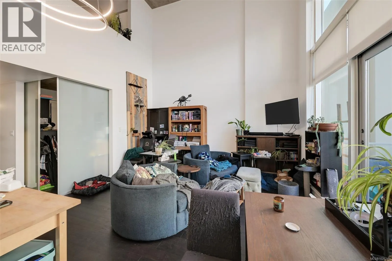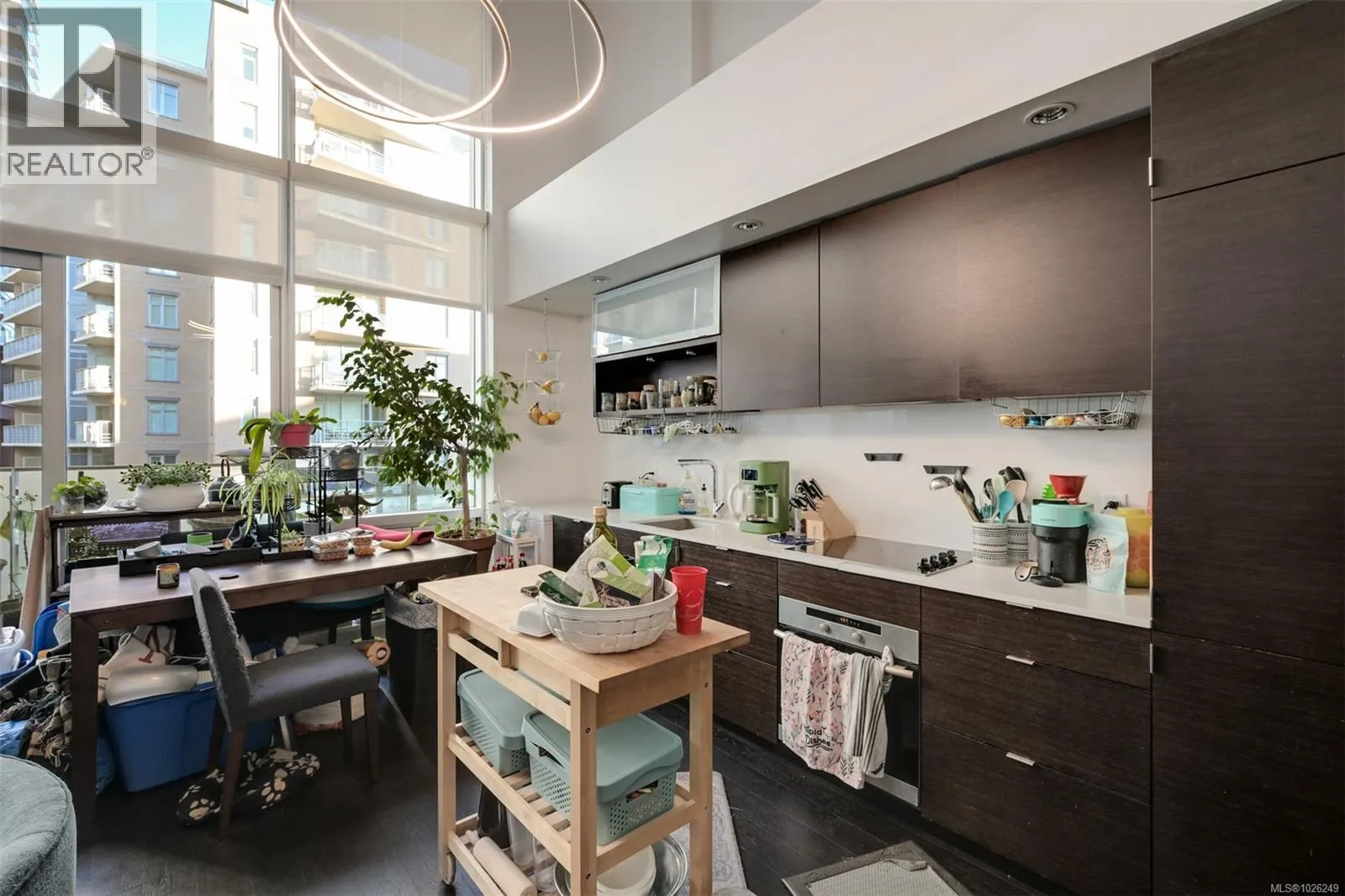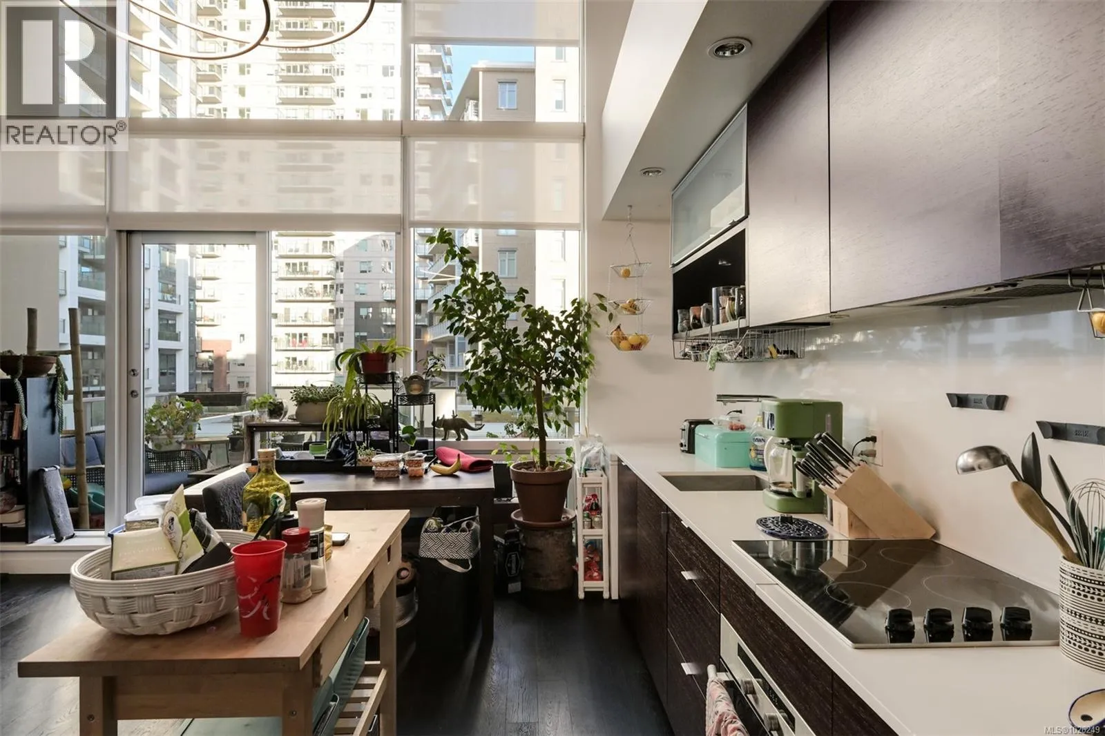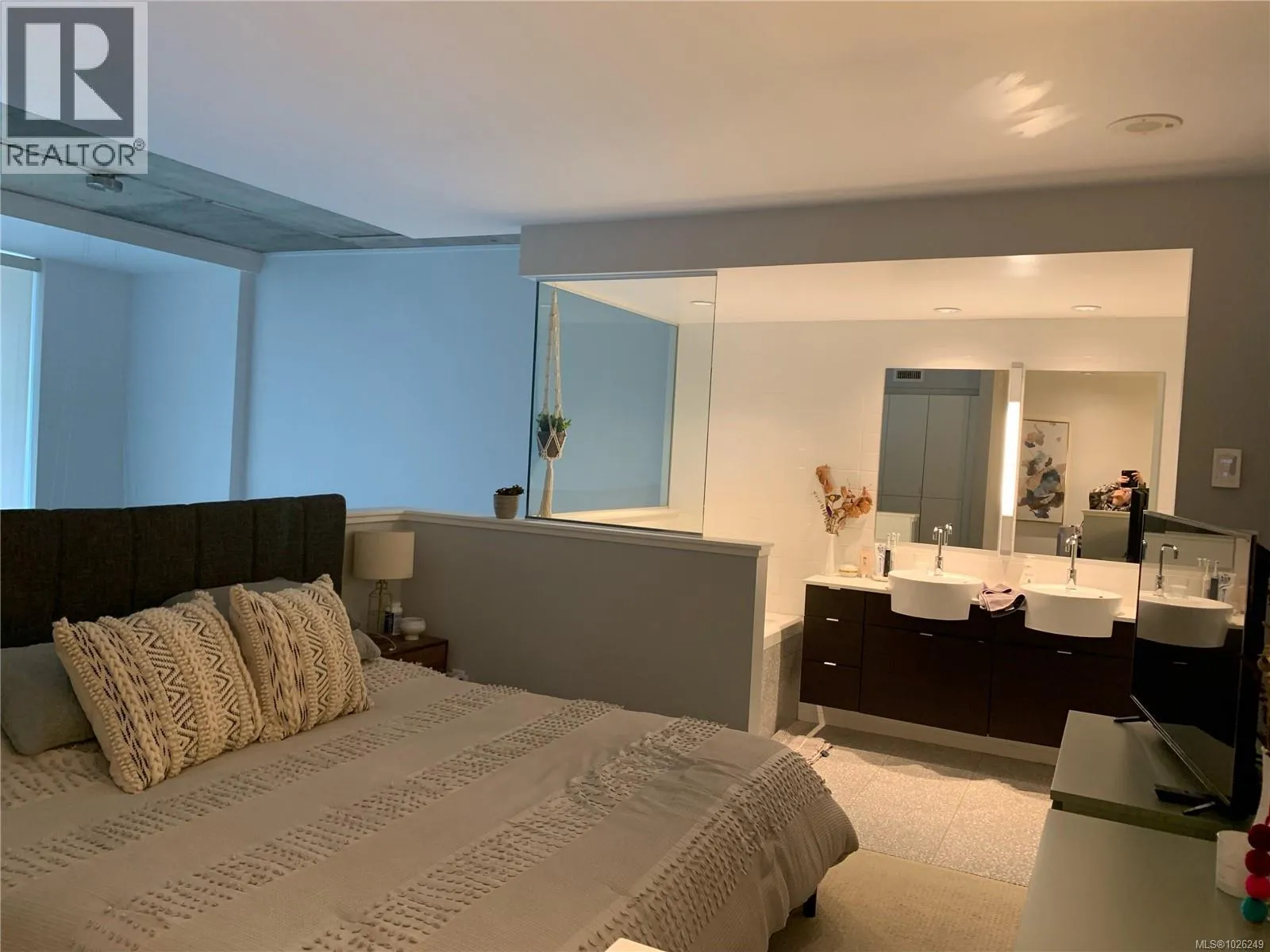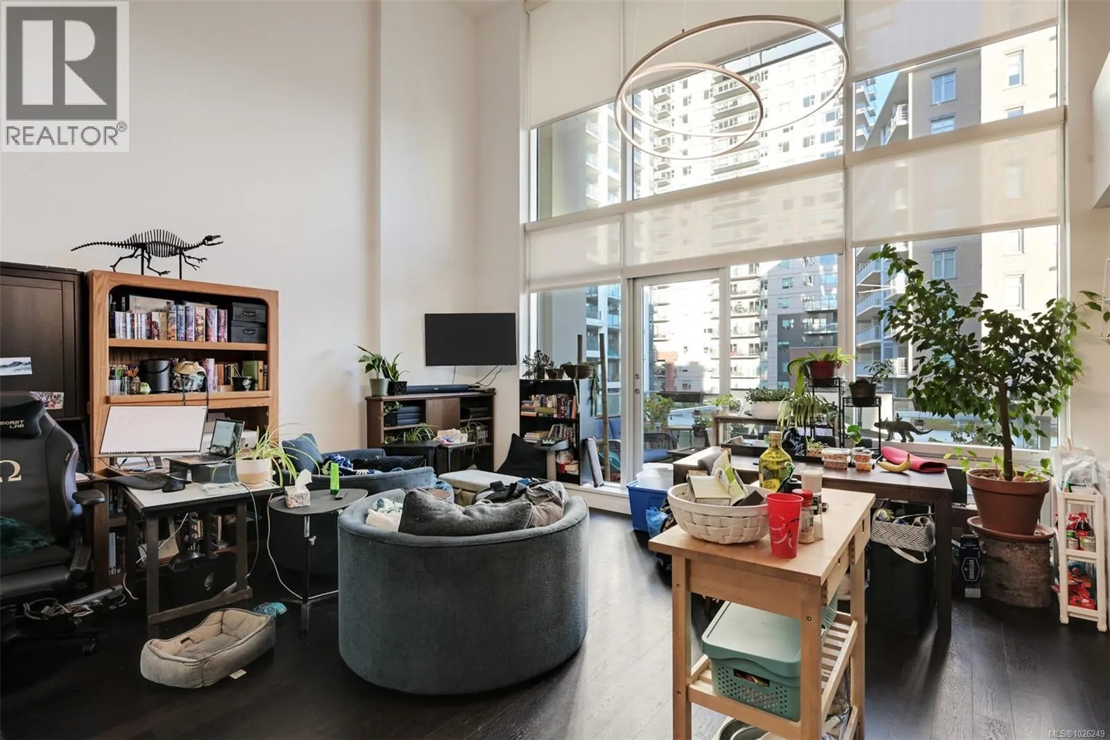 Live in style at The Hudson! This stunning east-facing loft features soaring 18-foot ceilings and oversized windows that flood the space with beautiful natural light. Step out onto your private balcony, BBQs are allowed, perfect for morning coffee or evening entertaining. It's rare to have a Condo availlable with a Balcony in the Hudson! Rich dark hardwood floors and sleek matching kitchen cabinetry create a modern, sophisticated feel, while the carpeted upper loft and heated tile floors in the bathroom add warmth and comfort. The open-concept kitchen is designed to impress, complete with stainless steel appliances, a hidden cabinet-front fridge and dishwasher, crisp white countertops, and contemporary open shelving. Whether hosting friends or enjoying a quiet night in, the flexible layout adapts effortlessly to your lifestyle. Upstairs, the spacious primary retreat offers a luxurious five-piece ensuite featuring dual sinks, a deep soaker tub, and a walk-in shower. Ample storage is found throughout, with full-sized double closets in the bedrooms and hallway, plus an additional storage locker downstairs. Located in a pet and rental friendly building with secure underground parking & a beautiful rooftop patio with views of the Harbour. This unbeatable downtown address places shops, groceries, and everyday conveniences right at your doorstep, while keeping you steps from everything the vibrant downtown core has to offer. (id:27476)