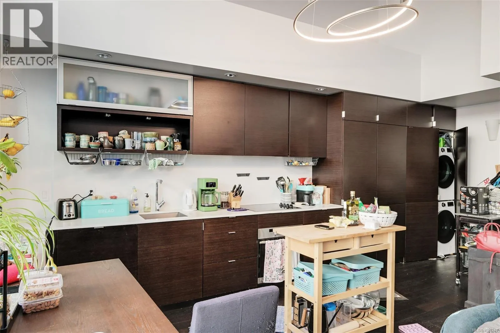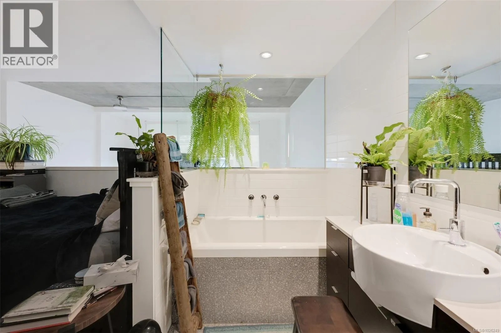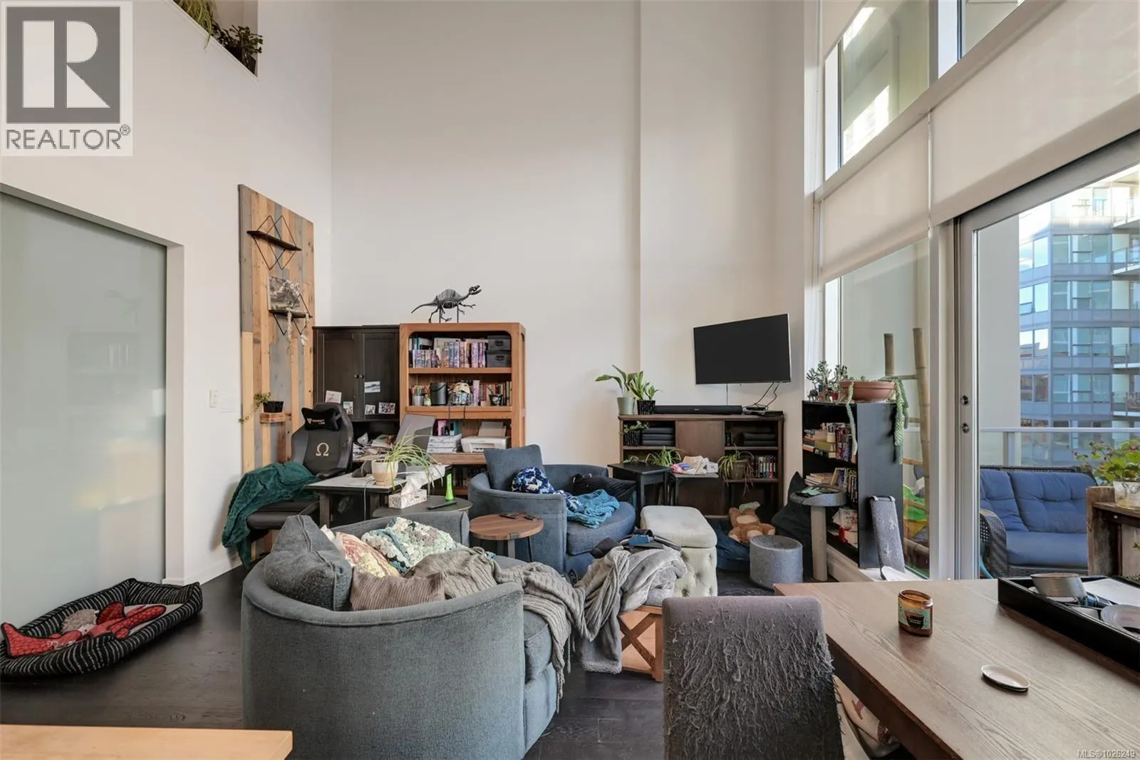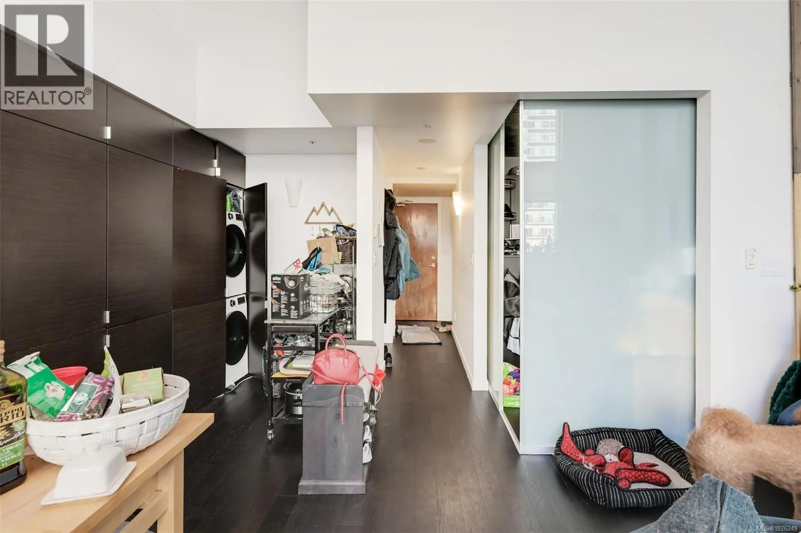 Live in style at The Hudson! This stunning east-facing loft features soaring 18-foot ceilings and oversized windows that flood the space with beautiful natural light. Step out onto your private balcony, BBQs are allowed, perfect for morning coffee or evening entertaining. It's rare to have a Condo availlable with a Balcony in the Hudson! Rich dark hardwood floors and sleek matching kitchen cabinetry create a modern, sophisticated feel, while the carpeted upper loft and heated tile floors in the bathroom add warmth and comfort. The open-concept kitchen is designed to impress, complete with stainless steel appliances, a hidden cabinet-front fridge and dishwasher, crisp white countertops, and contemporary open shelving. Whether hosting friends or enjoying a quiet night in, the flexible layout adapts effortlessly to your lifestyle. Upstairs, the spacious primary retreat offers a luxurious five-piece ensuite featuring dual sinks, a deep soaker tub, and a walk-in shower. Ample storage is found throughout, with full-sized double closets in the bedrooms and hallway, plus an additional storage locker downstairs. Located in a pet and rental friendly building with secure underground parking & a beautiful rooftop patio with views of the Harbour. This unbeatable downtown address places shops, groceries, and everyday conveniences right at your doorstep, while keeping you steps from everything the vibrant downtown core has to offer. (id:27476)