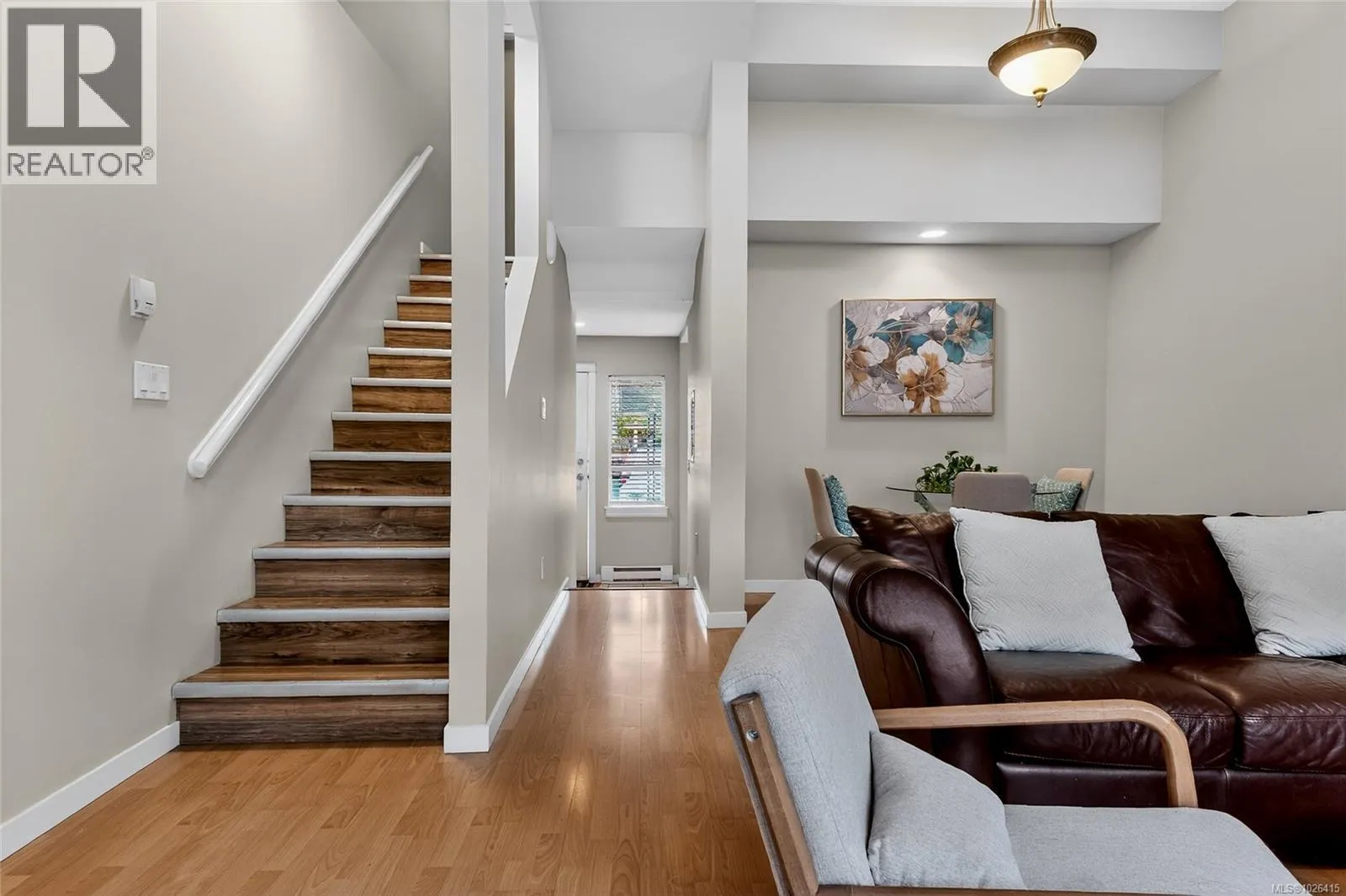 Don't miss this centrally located 3 bedroom and 2 bath townhome in excellent condition. Built in 2002, this home offers all the comforts one needs in a compact floor plan over 3 levels. In a quiet complex with beautiful private gardens, this home boasts 1,290 sq ft of convenient living space. A bright kitchen, and a cozy living/dining room featuring Vaulted ceilings and an energy efficient gas fireplace to warm the space. Bonus: gas included in strata fee! Wander upstairs into the spacious master suite complete with ensuite & large closet along with a second bedroom, bathroom and laundry. The top level you will find another bedroom perfect for guests! Through the bright living room onto the back patio, enjoy the space for a summer BBQ! In a pet & children friendly complex, this townhome is an ideal starter home for a young family! Extremely close to many amenities, including coffee shops, schools, Crystal Pool, Save-on-Foods grocery store walking distance away, & more! (id:27476)