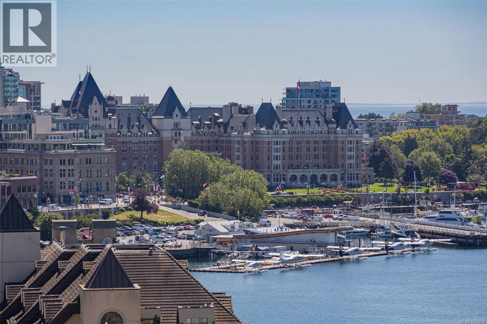 BAYVIEW ONE - subpenthouse- style, corner unit w/incredible southwest facing views across Victoriaâs Inner Harbour to the Ocean & the Olympic Mountains. One of the cityâs most coveted condo settings and quality concrete and steel bldgs offering executive amenities: ownersâ lounge & BBQ area, fitness centre, hot tub, sauna/steam, boardroom, car wash, dog spa, guest suite, and concierge service. Entertain with ease from the designer kitchen complete w/upgraded appls incl. wolf gas stove, and a large island & dining area. Enjoy one of the buildingâs best balconies at sunset & the spacious layout featuring 10-ft ceilings, open-concept living and dining, and bedrm separation, both w/ full spa-inspired en-suites. Nestled in the peaceful Songhees neighbourhood, enjoy waterfront paths and a short walk to experience the lifestyle of Downtown Victoria convenience, the Inner Harbourâs dining, culture, and entertainment. Great value and an amazing location to enjoy the lifestyle surrounding! (id:27476)