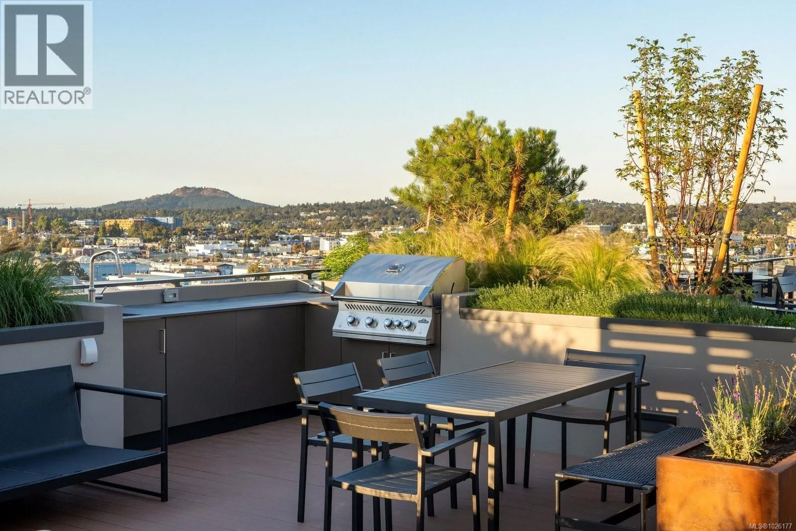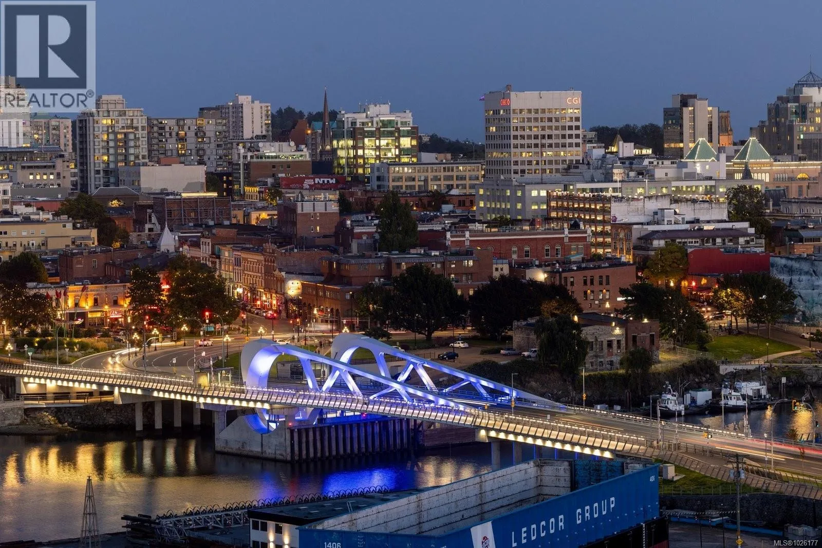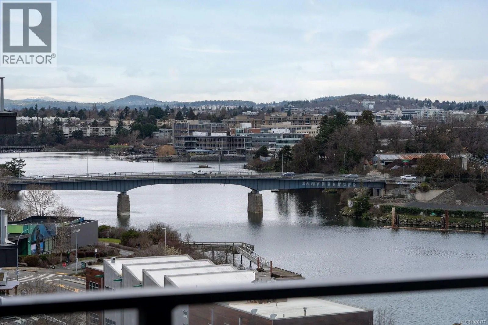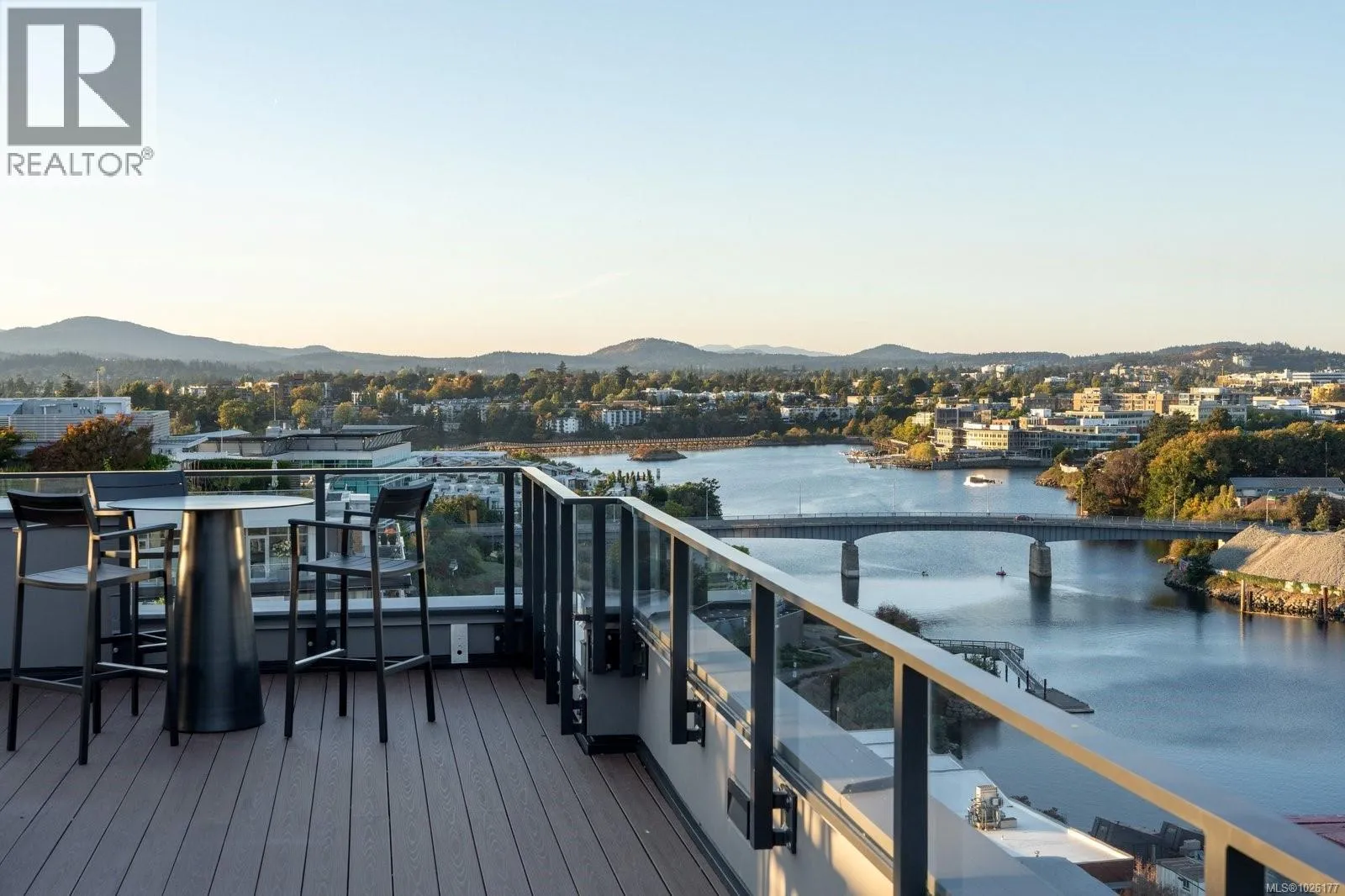 Sweeping ocean & downtown views from this corner unit on the 8th floor of 369 Tyee (Tower 1). This luxurious 2 bed/2 bath urban oasis in the heart of Vic West is thoughtfully designed with a perfect blend of modern living with sustainable features. Almost 1,100 sqft of open-concept living space, the kitchen boasts Stosa Italian cabinetry, sleek stainless steel appliances, quartz countertops, and a convenient breakfast bar. The primary bedroom is a tranquil retreat with a large ensuite & walk in closet. The 2nd bedroom is perfect for guests or office with amazing views of downtown. A large private patio overlooks the waterway, perfect spot for BBQ'ing & entertaining all summer. Storage space has not been overlooked, with plenty of closets to accommodate. Secure underground parking, separate storage & a bike room. Top it off with resident exclusive amenities - a lounge, fitness facility, pet wash, bike repair, and a rooftop patio to enjoy 360 degree views. (id:27476)