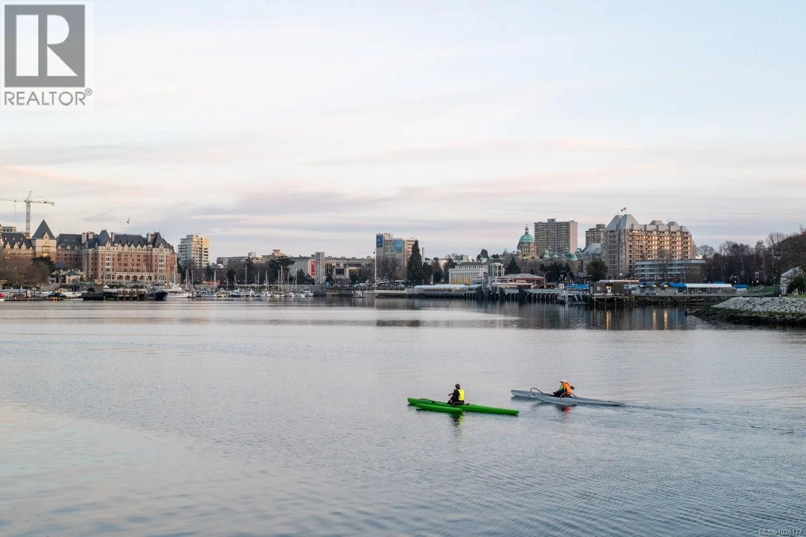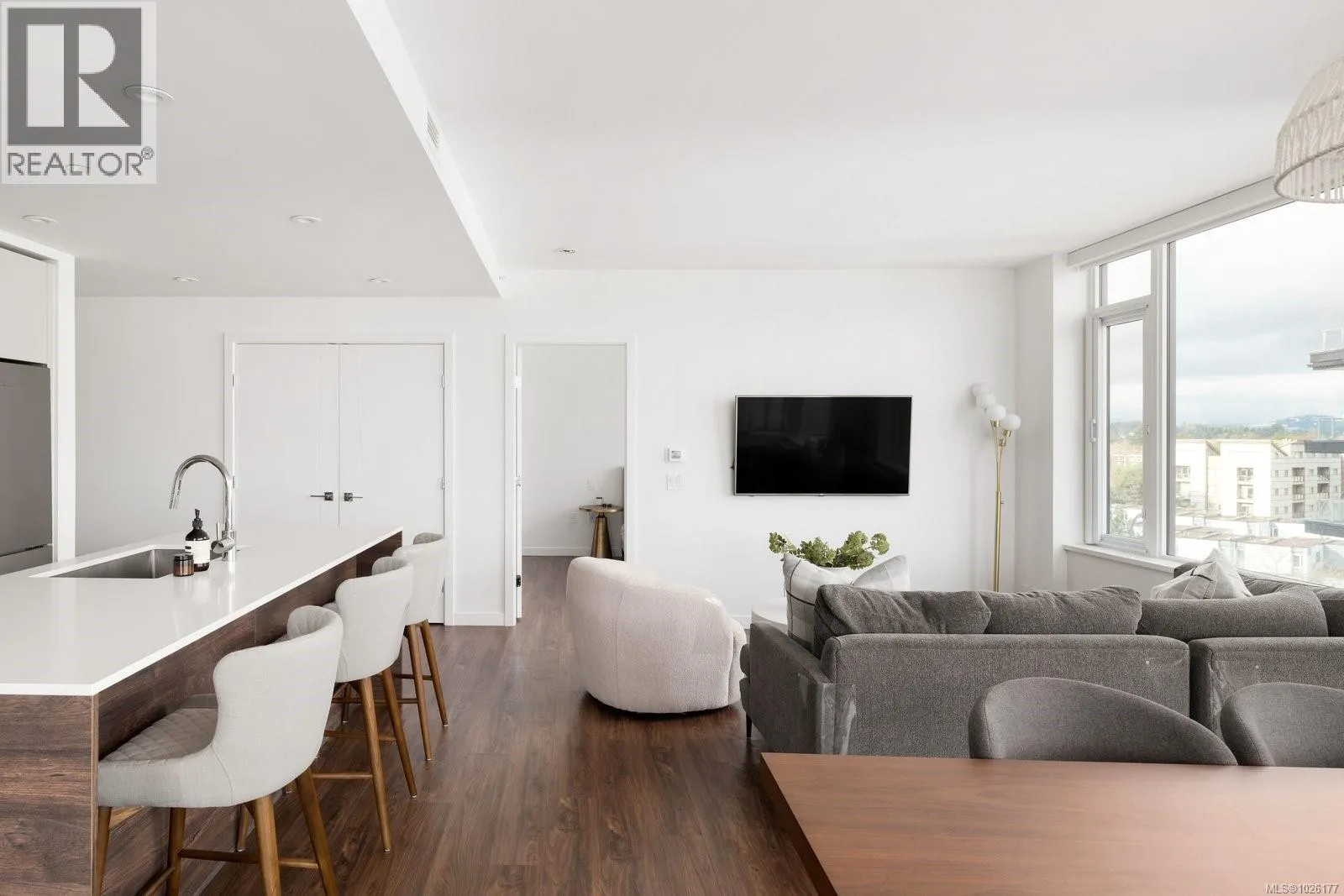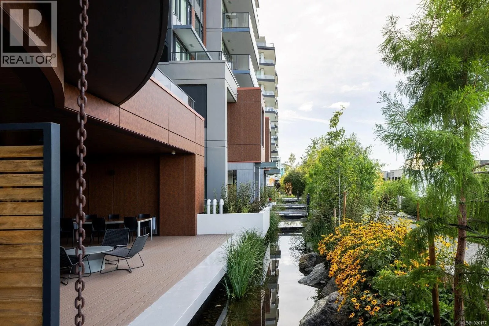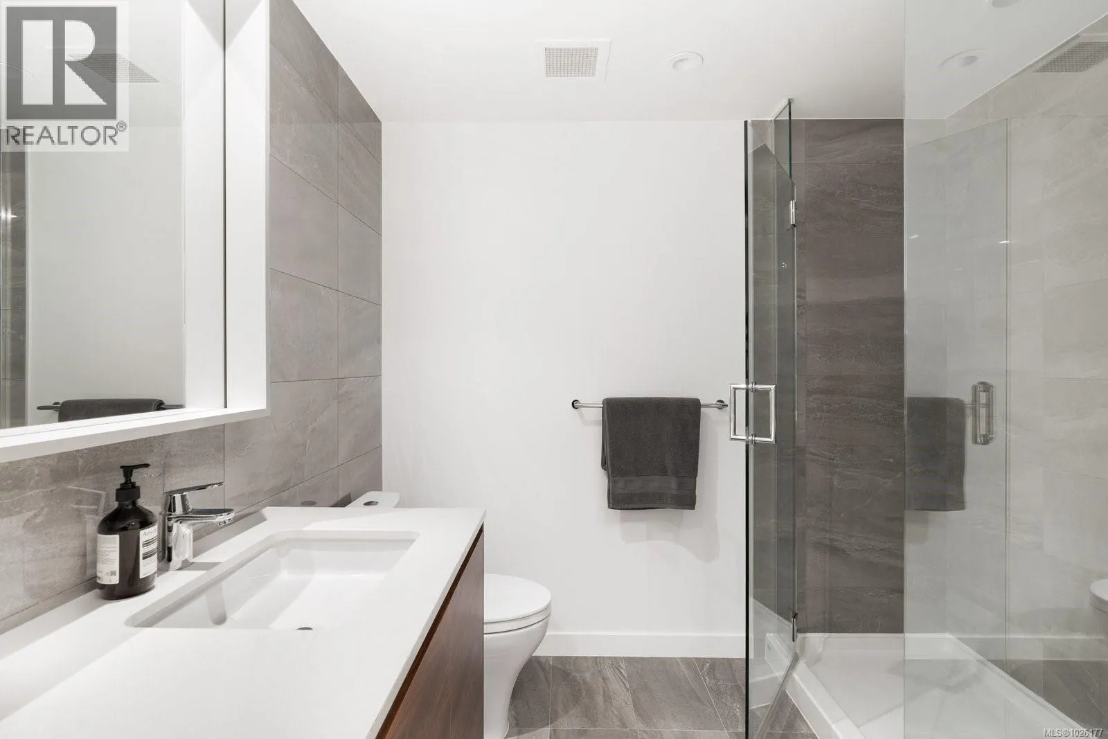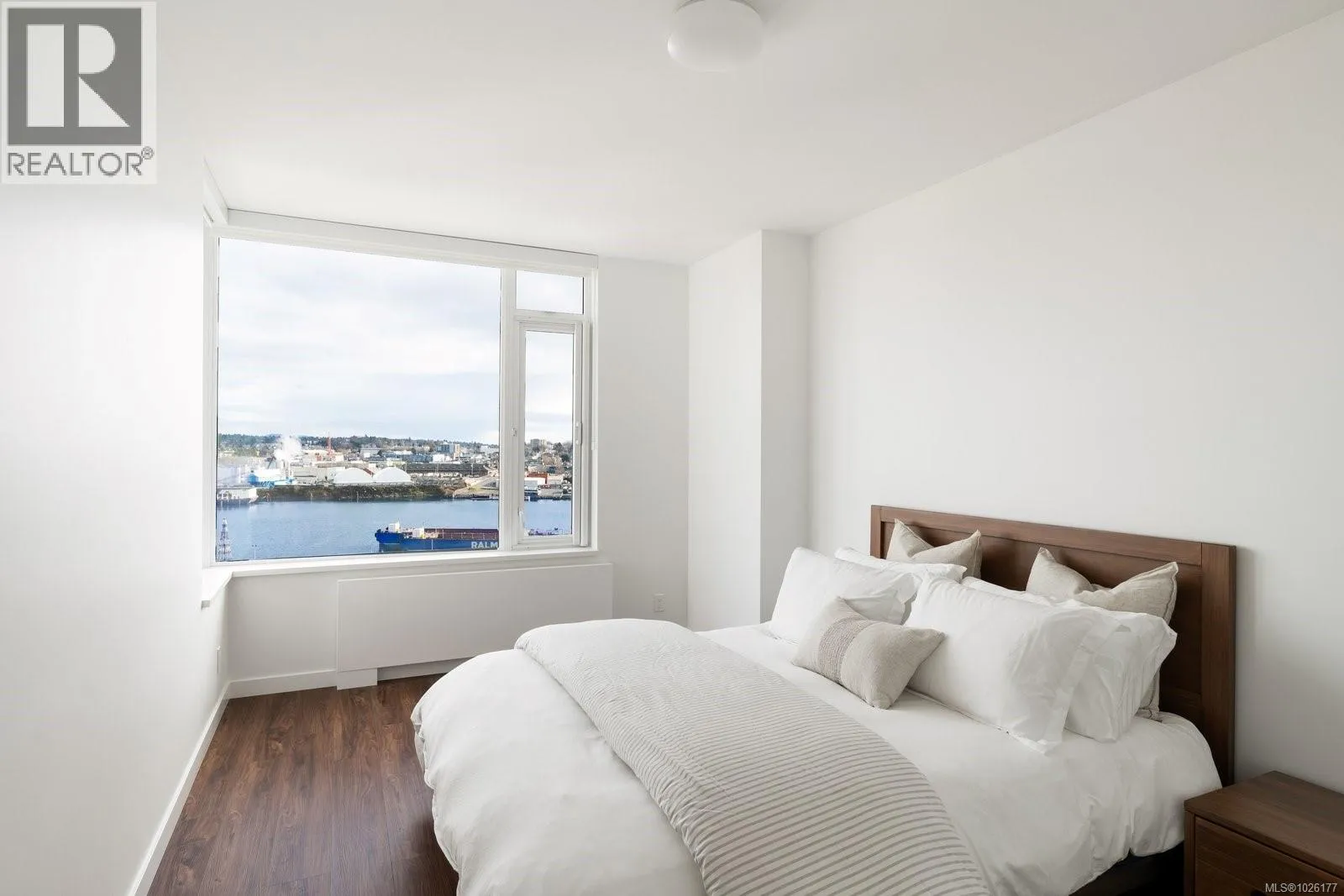 Sweeping ocean & downtown views from this corner unit on the 8th floor of 369 Tyee (Tower 1). This luxurious 2 bed/2 bath urban oasis in the heart of Vic West is thoughtfully designed with a perfect blend of modern living with sustainable features. Almost 1,100 sqft of open-concept living space, the kitchen boasts Stosa Italian cabinetry, sleek stainless steel appliances, quartz countertops, and a convenient breakfast bar. The primary bedroom is a tranquil retreat with a large ensuite & walk in closet. The 2nd bedroom is perfect for guests or office with amazing views of downtown. A large private patio overlooks the waterway, perfect spot for BBQ'ing & entertaining all summer. Storage space has not been overlooked, with plenty of closets to accommodate. Secure underground parking, separate storage & a bike room. Top it off with resident exclusive amenities - a lounge, fitness facility, pet wash, bike repair, and a rooftop patio to enjoy 360 degree views. (id:27476)