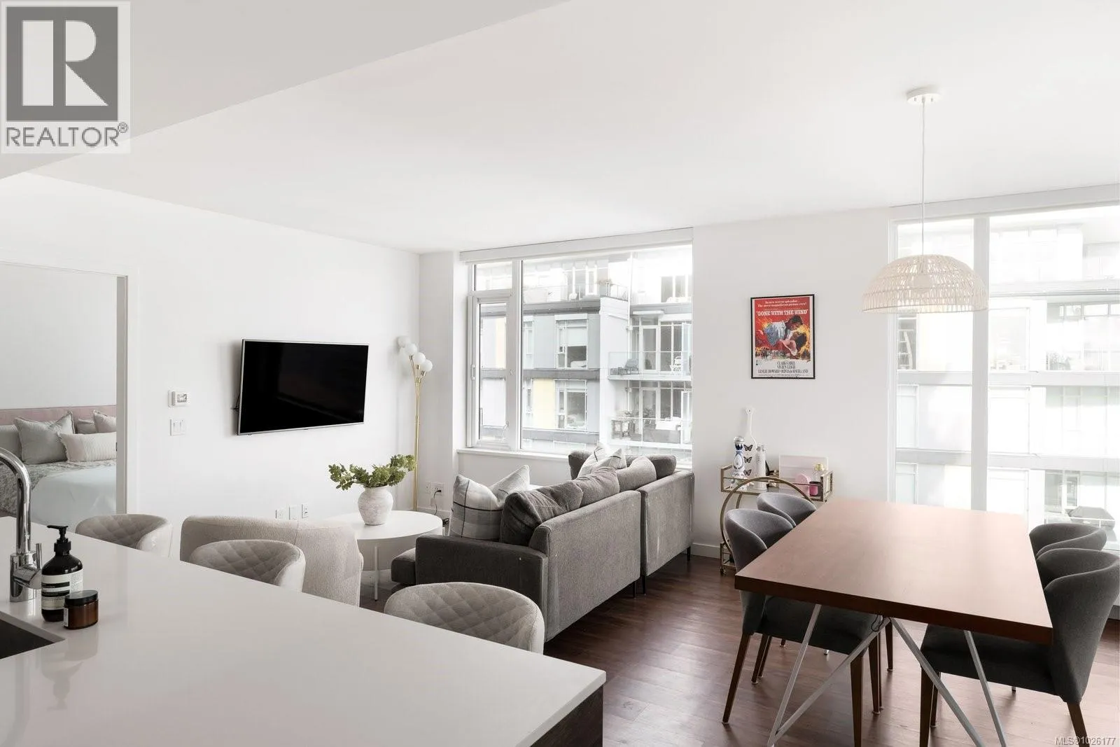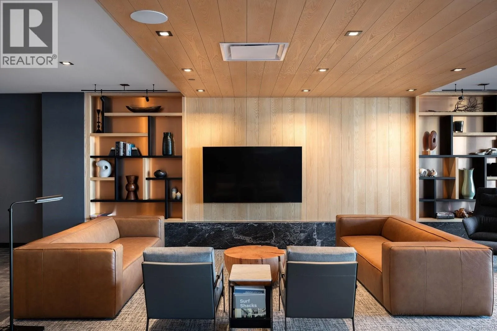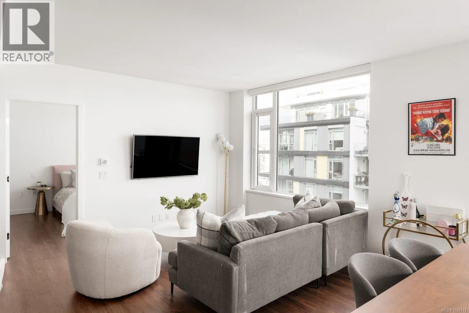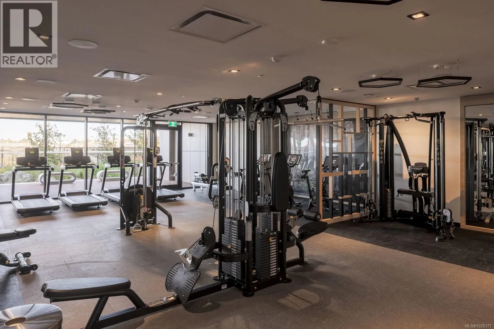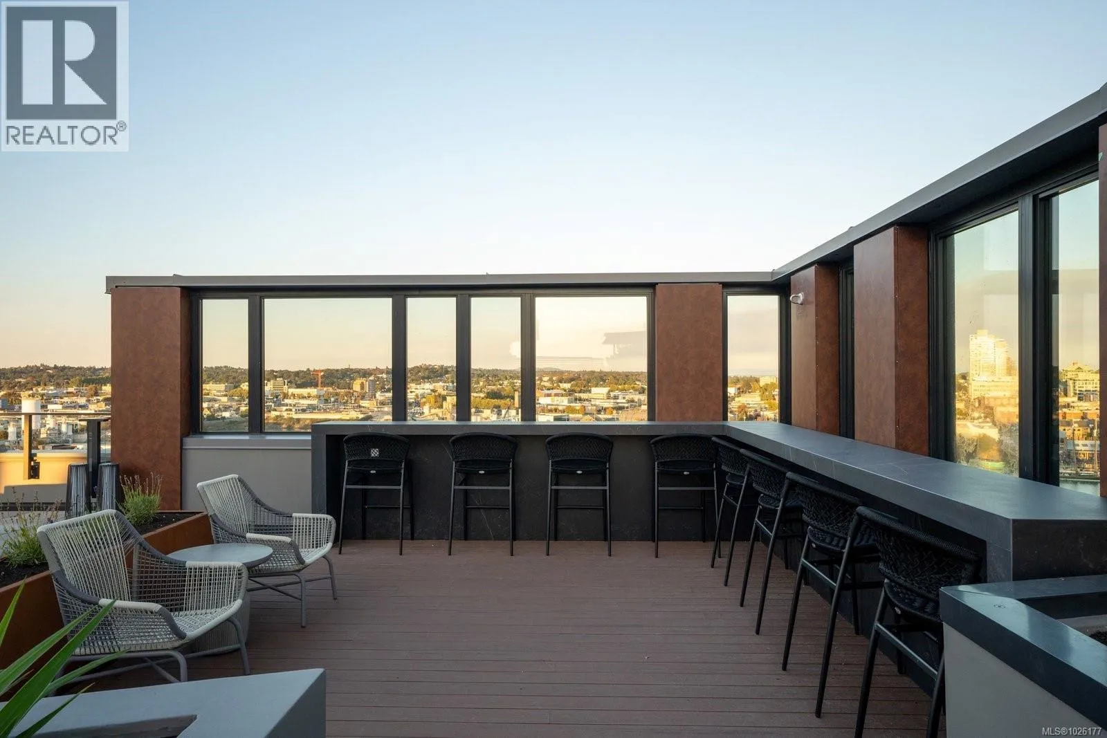 Sweeping ocean & downtown views from this corner unit on the 8th floor of 369 Tyee (Tower 1). This luxurious 2 bed/2 bath urban oasis in the heart of Vic West is thoughtfully designed with a perfect blend of modern living with sustainable features. Almost 1,100 sqft of open-concept living space, the kitchen boasts Stosa Italian cabinetry, sleek stainless steel appliances, quartz countertops, and a convenient breakfast bar. The primary bedroom is a tranquil retreat with a large ensuite & walk in closet. The 2nd bedroom is perfect for guests or office with amazing views of downtown. A large private patio overlooks the waterway, perfect spot for BBQ'ing & entertaining all summer. Storage space has not been overlooked, with plenty of closets to accommodate. Secure underground parking, separate storage & a bike room. Top it off with resident exclusive amenities - a lounge, fitness facility, pet wash, bike repair, and a rooftop patio to enjoy 360 degree views. (id:27476)