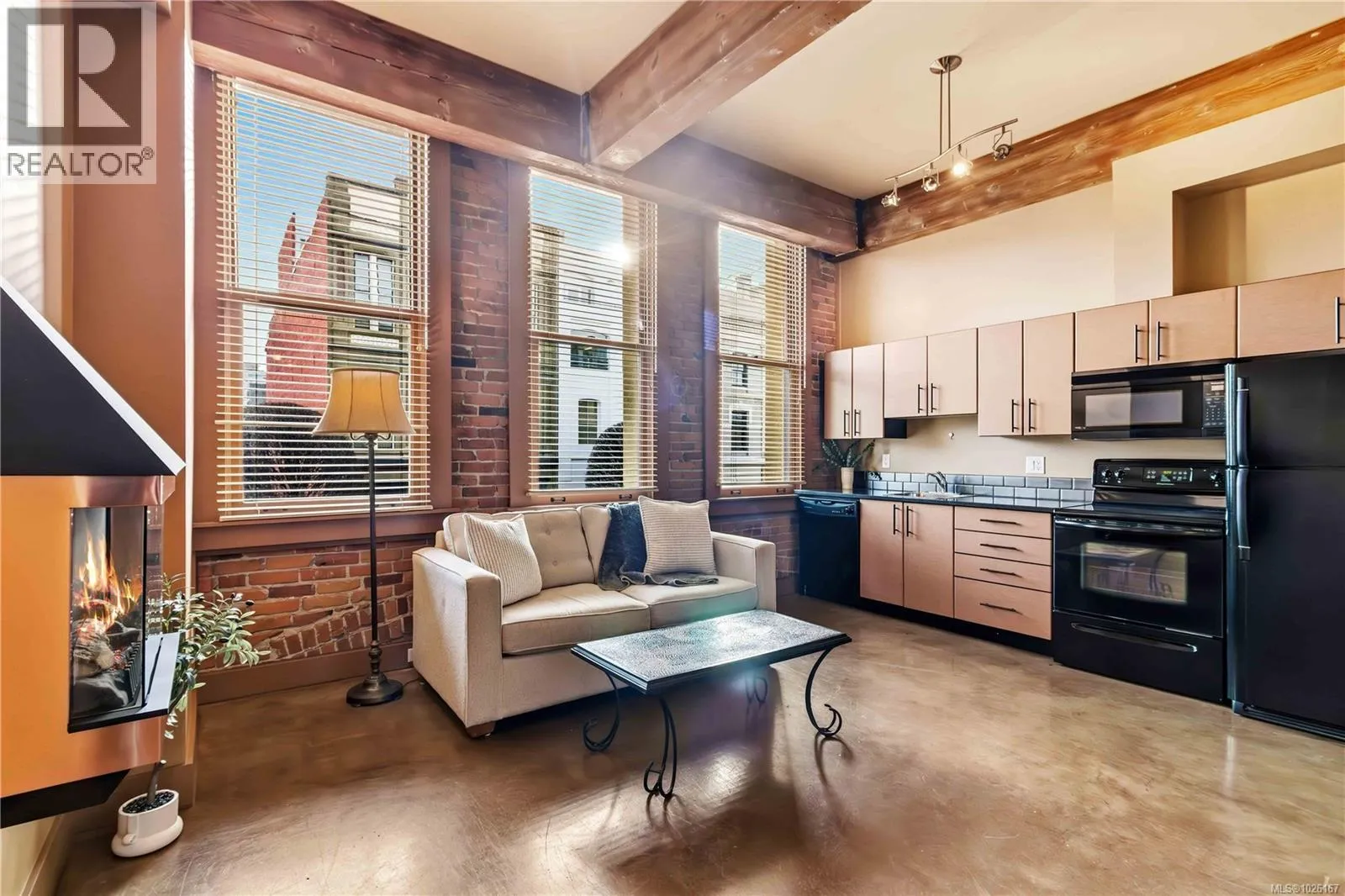 O/H Saturday, 12-2! Own a piece of Victoriaâs history. Bright, airy, and full of character in the heart of downtown - welcome to The Vogue. Originally built in 1892 and restored in 2006, The Vogue seamlessly blends period charm with timeless urban living in Old Town. This pristine, beautifully maintained condo showcases 11-foot ceilings, exposed brick from the original hotel, fir beams, and oversized east-facing windows that flood the home with morning light. Polished concrete floors, a cozy fireplace, and an open kitchen create a warm and inviting atmosphere. In-suite laundry, separate storage, and access to the shared rooftop deck complete the package. Situated within Victoriaâs Old Town District zoning, offering flexibility for home occupation or potential live/work possibilities - buyer to verify permitted uses. Just steps to cafés, Market Square, the Inner Harbour, and the oceanfront - exceptional downtown living in one of Victoriaâs most iconic buildings. (id:27476)