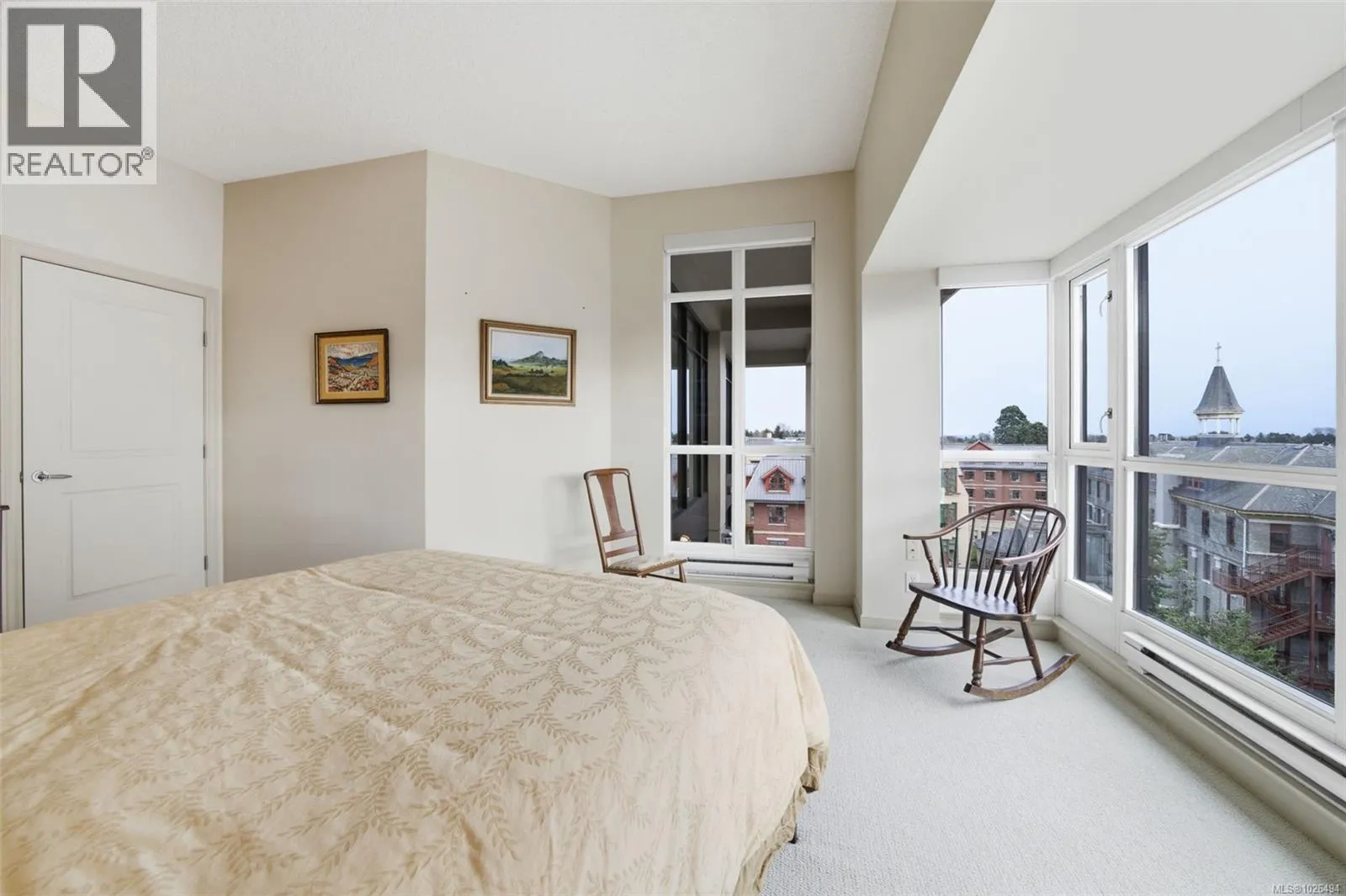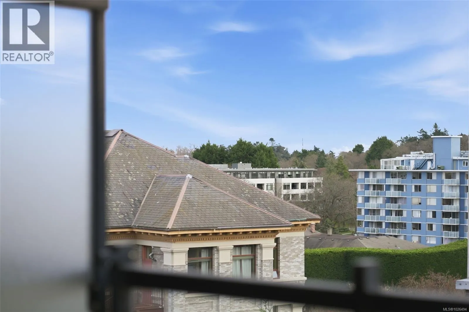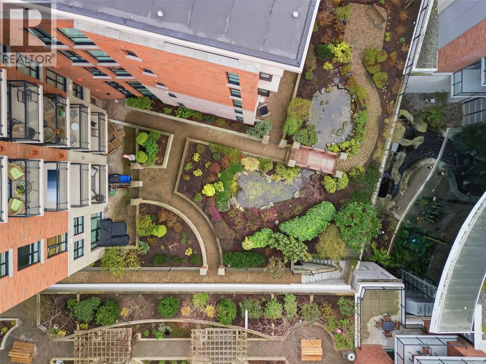 Top-floor penthouse living at City Place with exceptional indoor-outdoor spaces and refined two-level design. This immaculate 2-bed, 2-bath residence offers bright, executive living with soaring 10-ft ceilings, oversized windows, and a skylight that fills the home with natural light while offering a calm, private outlook rarely found downtown. Southern exposures showcase peekaboo views of the Salish Sea, Mt. St. Maryâs, and St. Annâs, adding a sense of openness while maintaining excellent privacy. Rich Brazilian cherry hardwood floors anchor the main level, and the kitchen features stainless steel appliances, granite countertops, and a breakfast bar that opens seamlessly to the airy living and dining area and private deck. Motorized solar roller shades provide comfort and convenience throughout. The spacious primary suite offers a spa-inspired ensuite with separate shower and deep soaker tub, creating a true retreat within the home. Upstairs, the exclusive 238 sq ft rooftop patio delivers open-sky west-facing city outlooks â a private setting ideal for entertaining, container gardening, or relaxing above the city. This thoughtful two-level layout provides excellent separation of space and a refined penthouse lifestyle with a focus on light, privacy, and livability. City Place is a well-managed steel and concrete building offering secure underground parking with EV charging options and pet-friendly living with no size or weight restrictions. Centrally located just steps to shops, dining, parks, and the Inner Harbour, this location pairs vibrant urban access with a peaceful residential feel. Elevated, private, and rare. Book your private showing today. (id:27476)