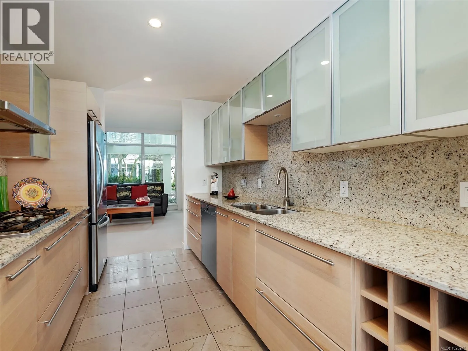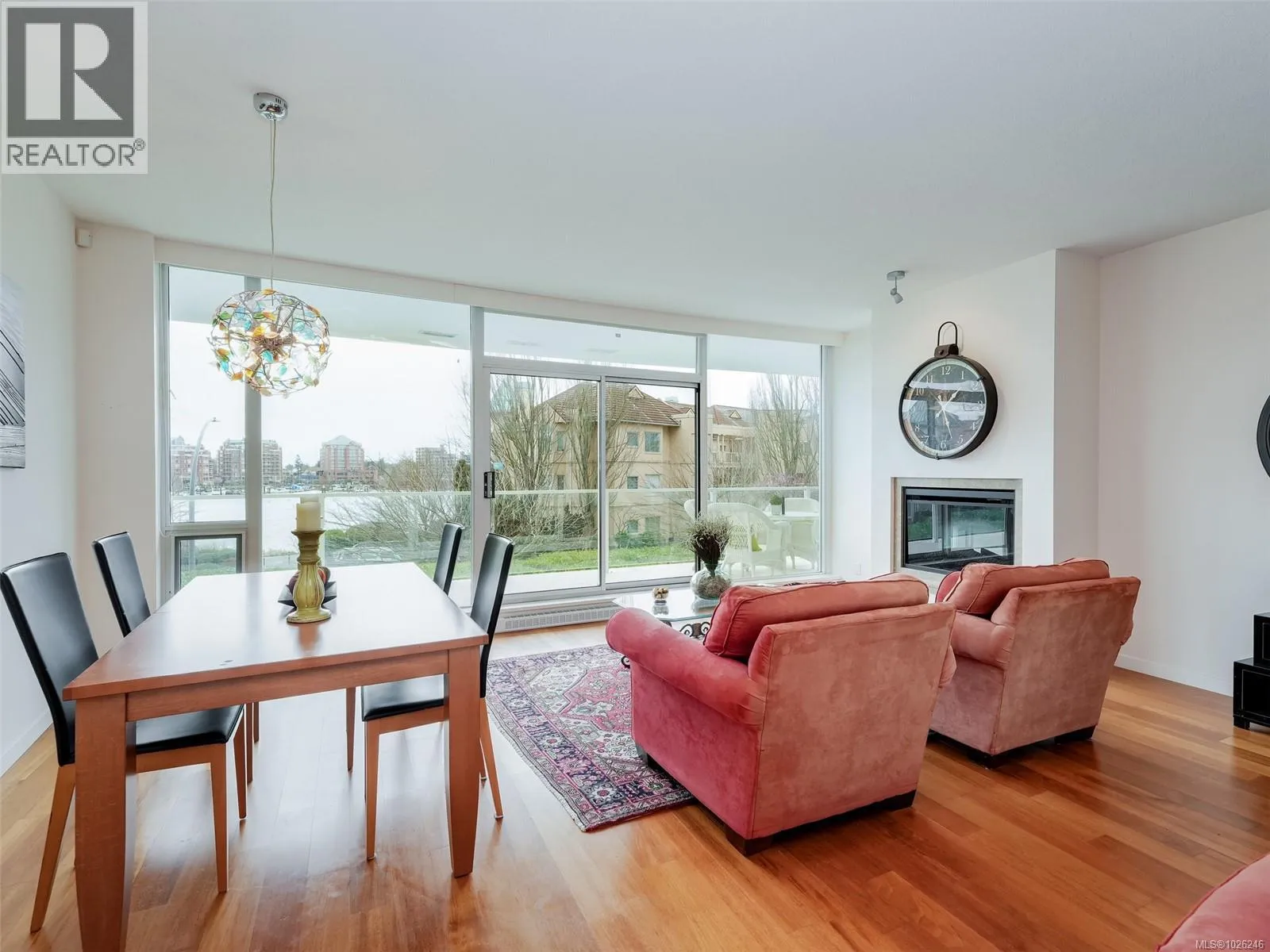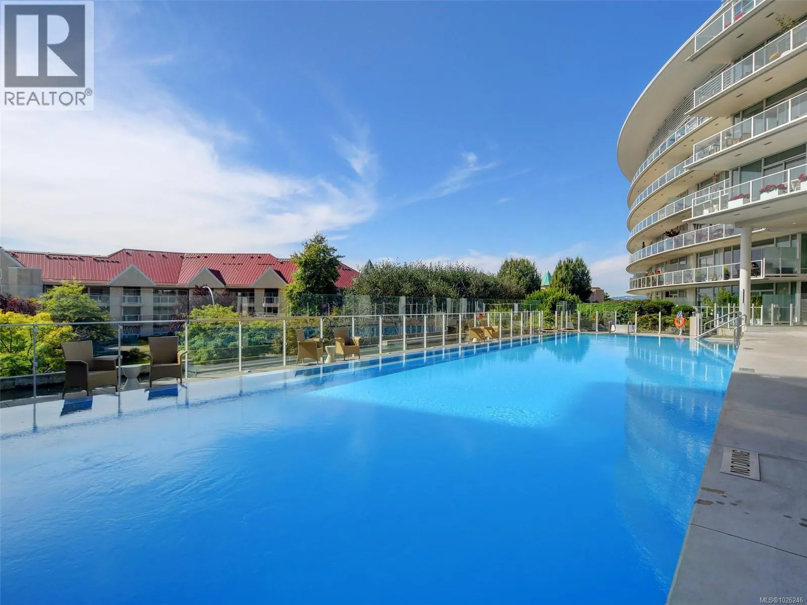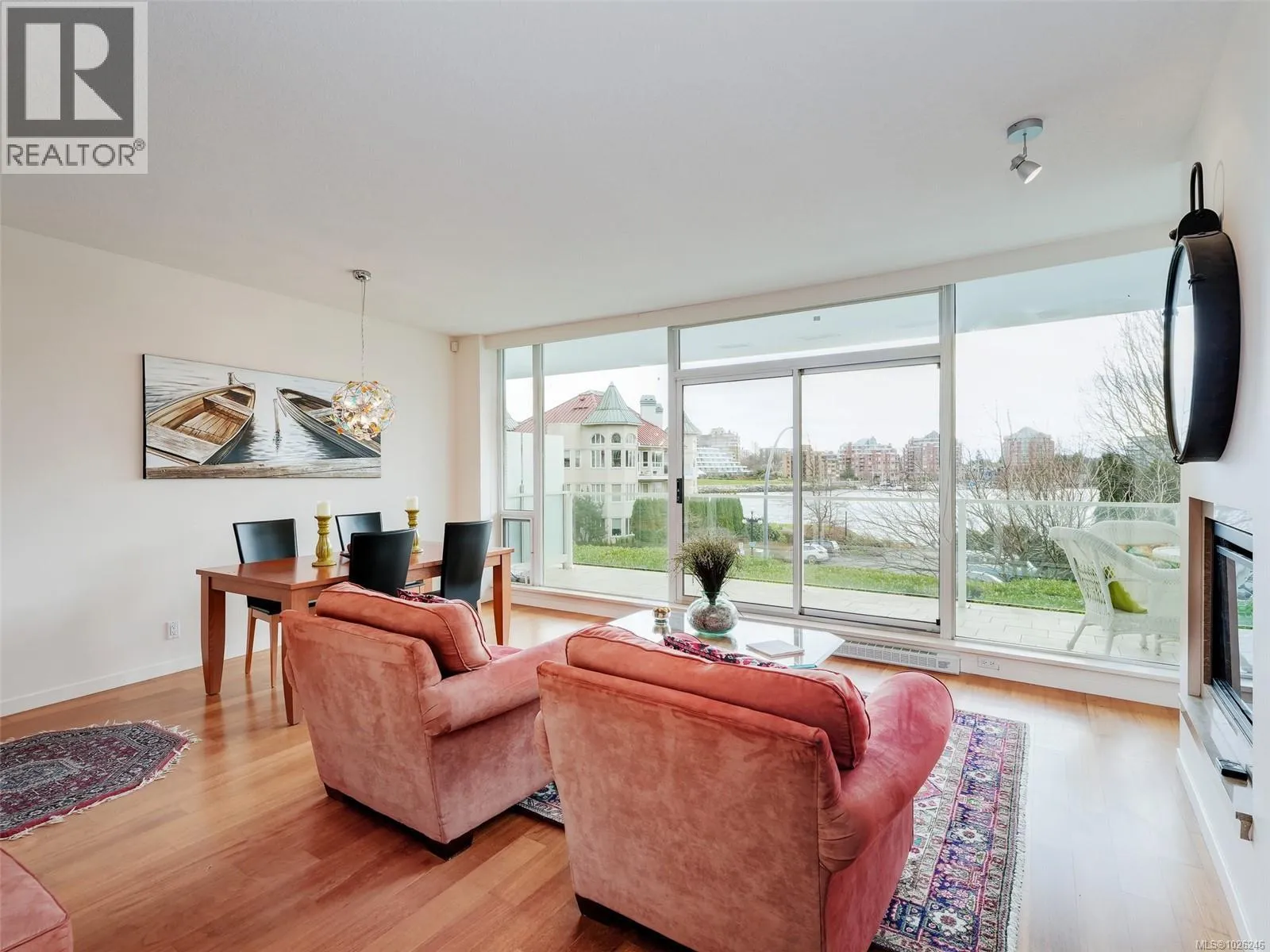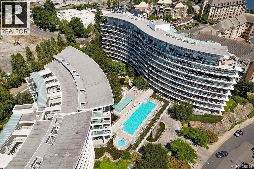 Welcome to The Shutters â an exceptional lifestyle opportunity on the beautiful Songhees waterfront in Victoria. This stunning 2-bedroom, 3-bath luxury residence offers floor-to-ceiling windows that flood the home with natural light and frame unobstructed views of the Inner Harbour. Step onto your impressive 34-foot-long balcony, complete with a BBQ hookup â perfect for entertaining or simply relaxing while enjoying the sunshine and waterfront activity. As you enter, you're welcomed by a serene, calming atmosphere highlighted by tranquil water features, lush greenery, and even a few resident ducks adding to the peaceful ambiance. Just a 10-minute walk brings you to Downtown Victoria, where fine dining, boutique shopping, and endless entertainment await. Dogs are welcome The spacious primary bedroom overlooks the balcony and offers direct water views â a perfect retreat at the end of the day. The spa-inspired bathrooms feature heated floors and a luxurious soaker tub. An electric fireplace adds warmth and comfort for cozy winter evenings at home. Residents enjoy world-class amenities designed for year-round enjoyment, including: Outdoor infinity pool, Sauna, Hot tub, Fully equipped fitness centre. This is the epitome of refined coastal living â an ideal setting for retirement or anyone seeking a vibrant yet peaceful waterfront lifestyle. Call Willy for your personal tour of the building and unit #110! 250 886 0612 (id:27476)