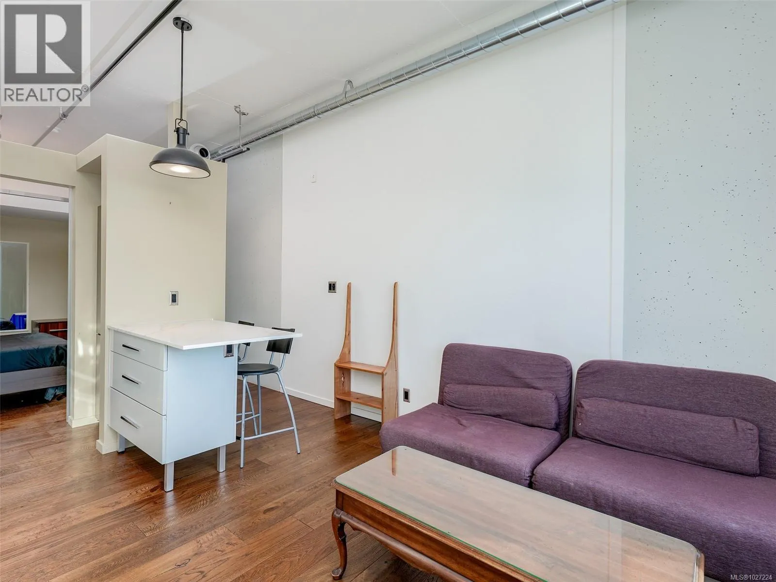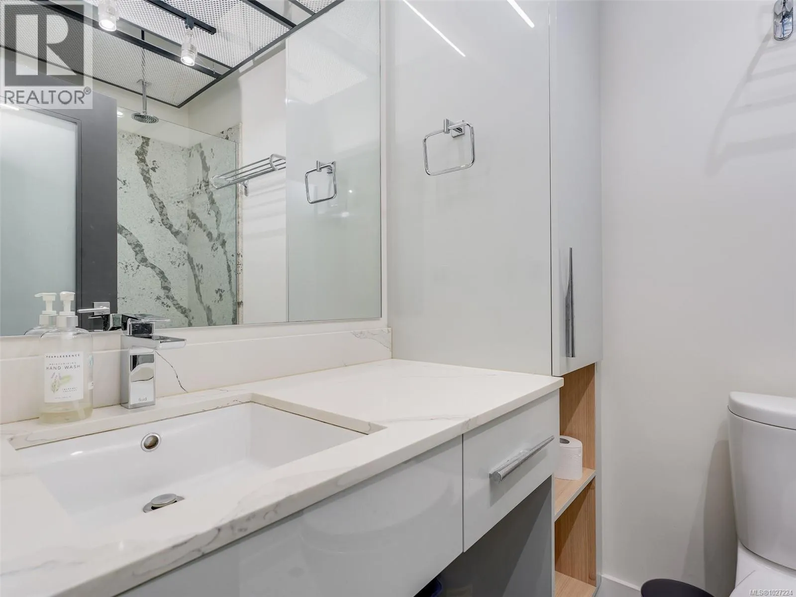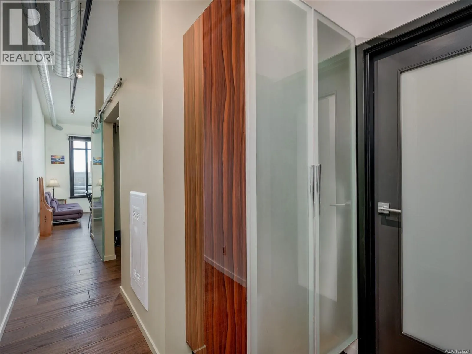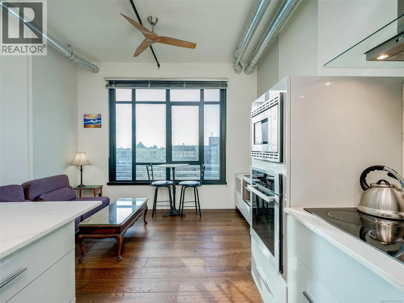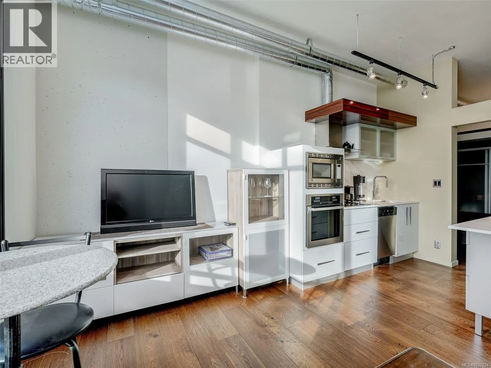 Experience downtown living at its finest with Jukebox, a stylish 2019-built steel and concrete condo by Mosaic Properties Inc. This 1-bedroom home is bright and modern with south-facing exposure, and the features are stunning: 10-foot ceilings, hardwood floors, quartz countertops, soft close cabinets, stainless steel appliances and in-suite laundry. Also, heating and hot water are included with the strata fees and there is a separate storage locker. Located in the vibrant Harris Green district of Downtown Victoria, the location is extremely central and within walking distance to so many amenities including London Drugs, Bin 4, restaurants, cafe's, shopping and so much more. With a walk score of 98, a bike score of 98 and a transit score of 89 there are so many convenient options for green transportation. Also, the building has a fully equipped gym with landscaped meditation garden and is pet friendly and rentable. Don't miss the opportunity to invest and call this property your home. (id:27476)