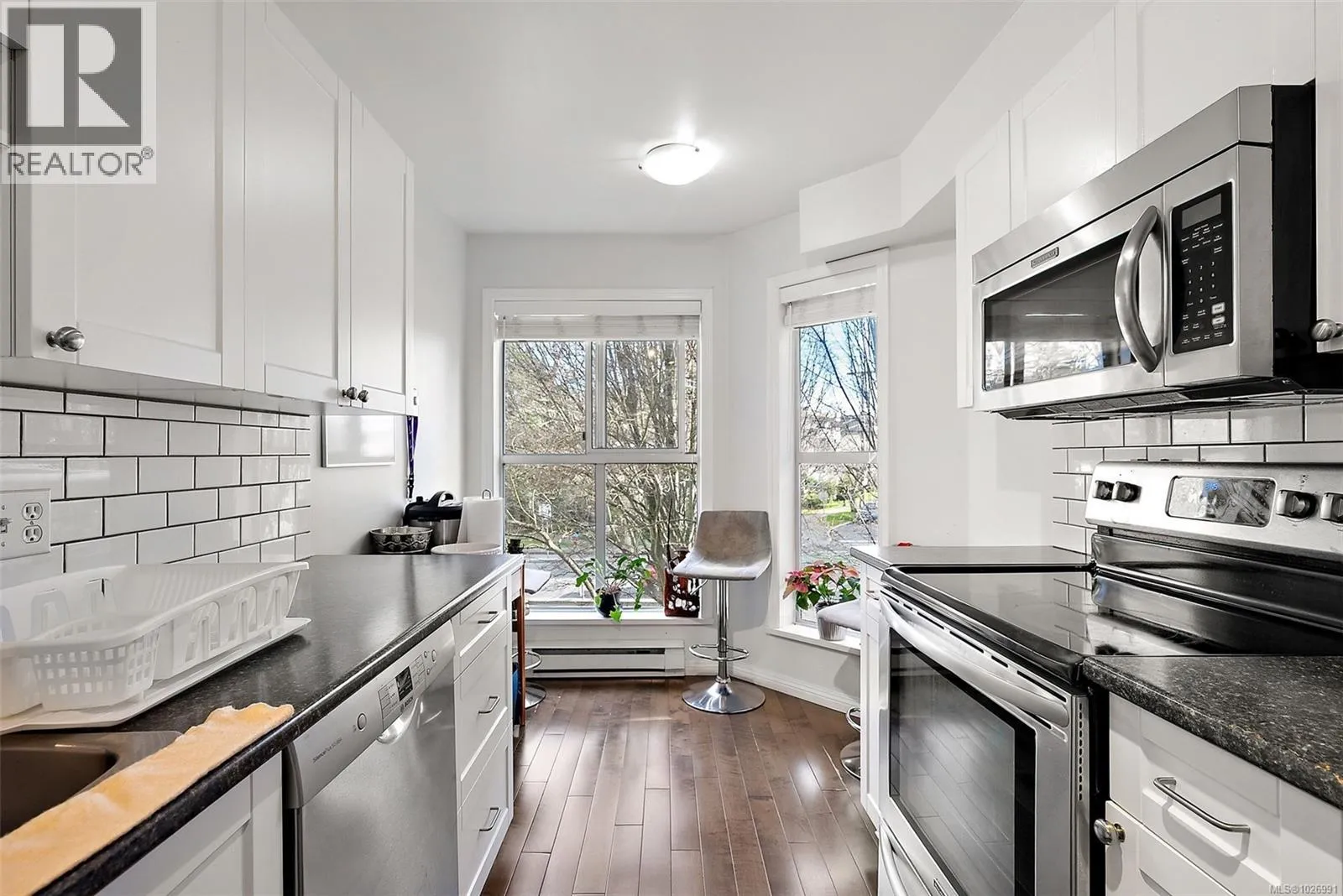 Invincible location in the desirable Jubilee area! This fully furnished 2 bed, 2 bath bright corner suite offers a well-designed layout, exceptional privacy, and unbeatable central convenience. Meticulously maintained and refreshed with new hardwood flooring in the main living areas, fresh paint, modern baseboards, and an updated kitchen with new counters, stylish cabinetry, subway tile backsplash, and new appliances. The sunny living room features a cozy gas fireplace and access to a private covered balcony overlooking lush greenery. The spacious primary bedroom includes its own ensuite, and both bathrooms are full 4-piece. In-suite laundry, secure underground parking, visitor parking, and separate storage included. Pet-friendly, well-managed building steps to Royal Jubilee Hospital, Oak Bay Village, Urban Grocer, parks, schools, rec centre, and downtown. Contact me today to book your viewing, via text or call at 250 709 3753 Text or call me at 250 709 3753 to book your viewing! (id:27476)