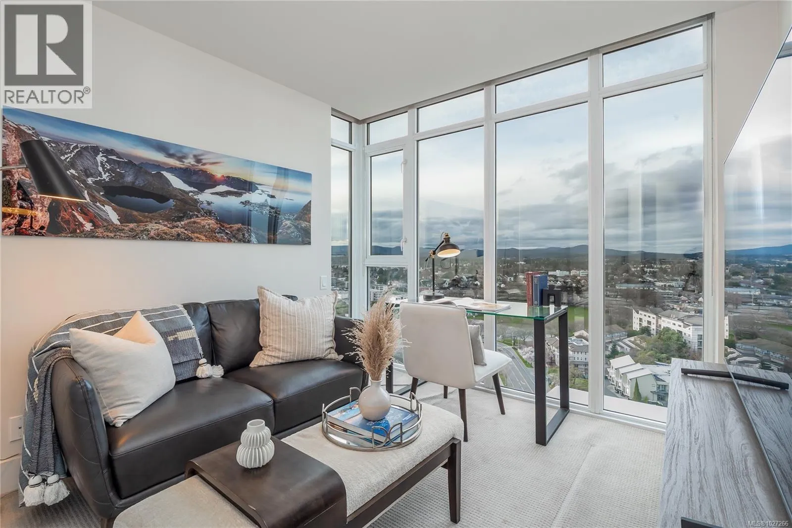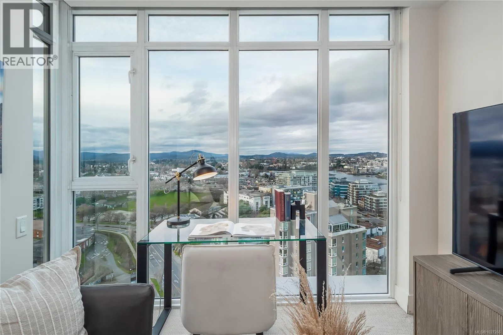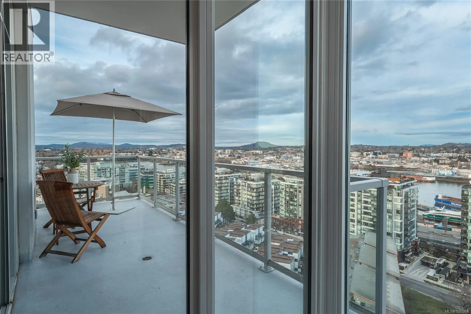 Promontory, by Bosa Properties. SUPERB VIEWS of the Sooke Hills, Upper Harbour, Inner Harbour, Ocean & Olympic Mntns from this 17th floor corner plan, offering amazing light & large balcony. EAST-NORTH-WEST exposure with floor to ceiling windows to enjoy terrific sunshine & views. Terrific sunsets! High end finishes, quality fixtures, Miele & Electrolux gas cooktop, & A/C. Enjoy seeing Mt. Baker from your primary bedroom, with over height windows. This is a steel & concrete building. Secure underground parking, storage, ample bike storage, gym, owner's lounge and a full time concierge. Walk to downtown in 10 minutes. Westside Village shops are a 5 min walk. This is a pet friendly building, with a dog park on the door step. A pleasure to view this superb home. (id:27476)