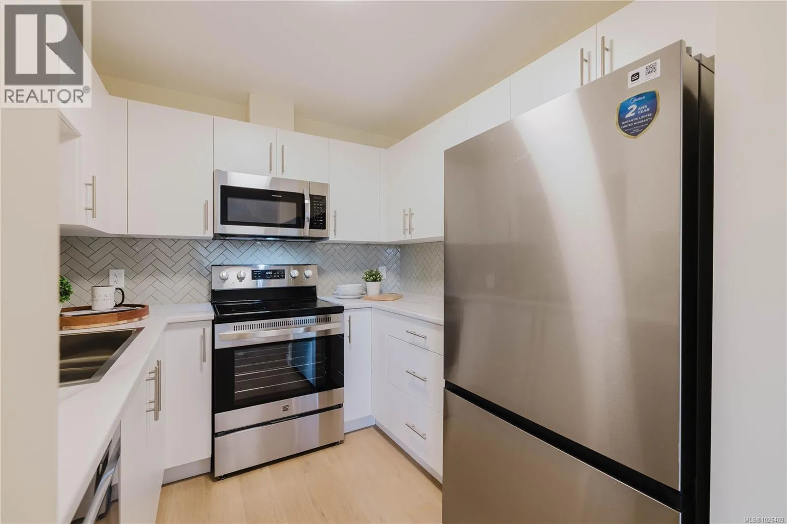 Completely renovated from top to bottom, this stunning 2 Bedroom k condo at 304â689 Bay Street feels like buying brand new. Every detail has been thoughtfully updated, including a brand new kitchen featuring all new appliances, beautiful new laminate flooring throughout, fresh paint, and a beautifully redesigned bathroom that offers a clean, modern aesthetic from the moment you step inside. The inviting living room features a cozy gas fireplace that efficiently heats the entire home, creating a warm and comfortable atmosphere year-round. The showpiece kitchen is finished with a stylish backsplash and contemporary touches, blending function and elegance seamlessly. The spacious primary bedroom provides a peaceful retreat, while the versatile bedroom/den is ideal for a home office, guest space, or creative studio. Enjoy your morning coffee on the quiet side east-facing balcony, soaking in the natural light. Located in the heart of downtown, youâre just steps from restaurants, nightlife, and endless entertainment. This well-managed strata offers a convenient car wash station, and the unit includes in-suite laundry, secure underground parking, and additional storage. A truly turnkey opportunity in an unbeatable location! (id:27476)
