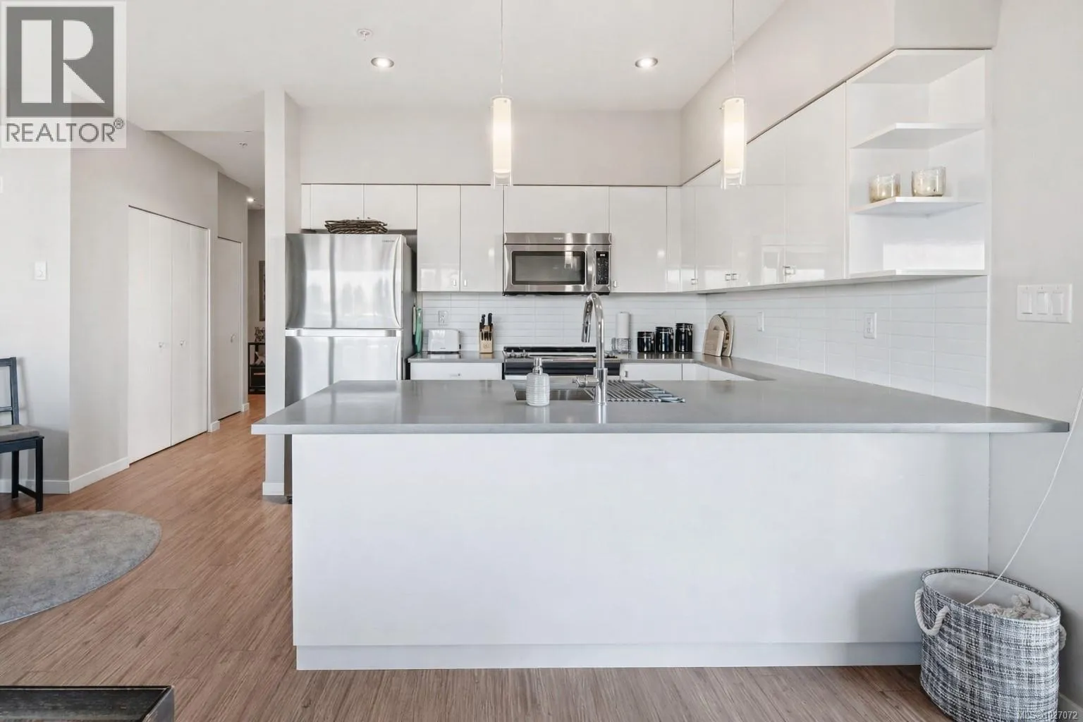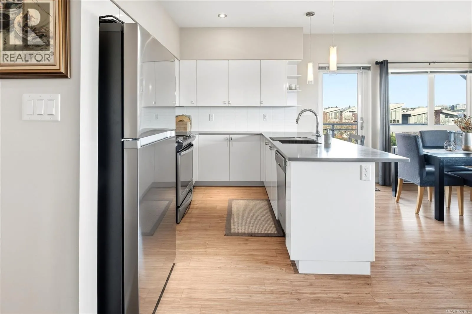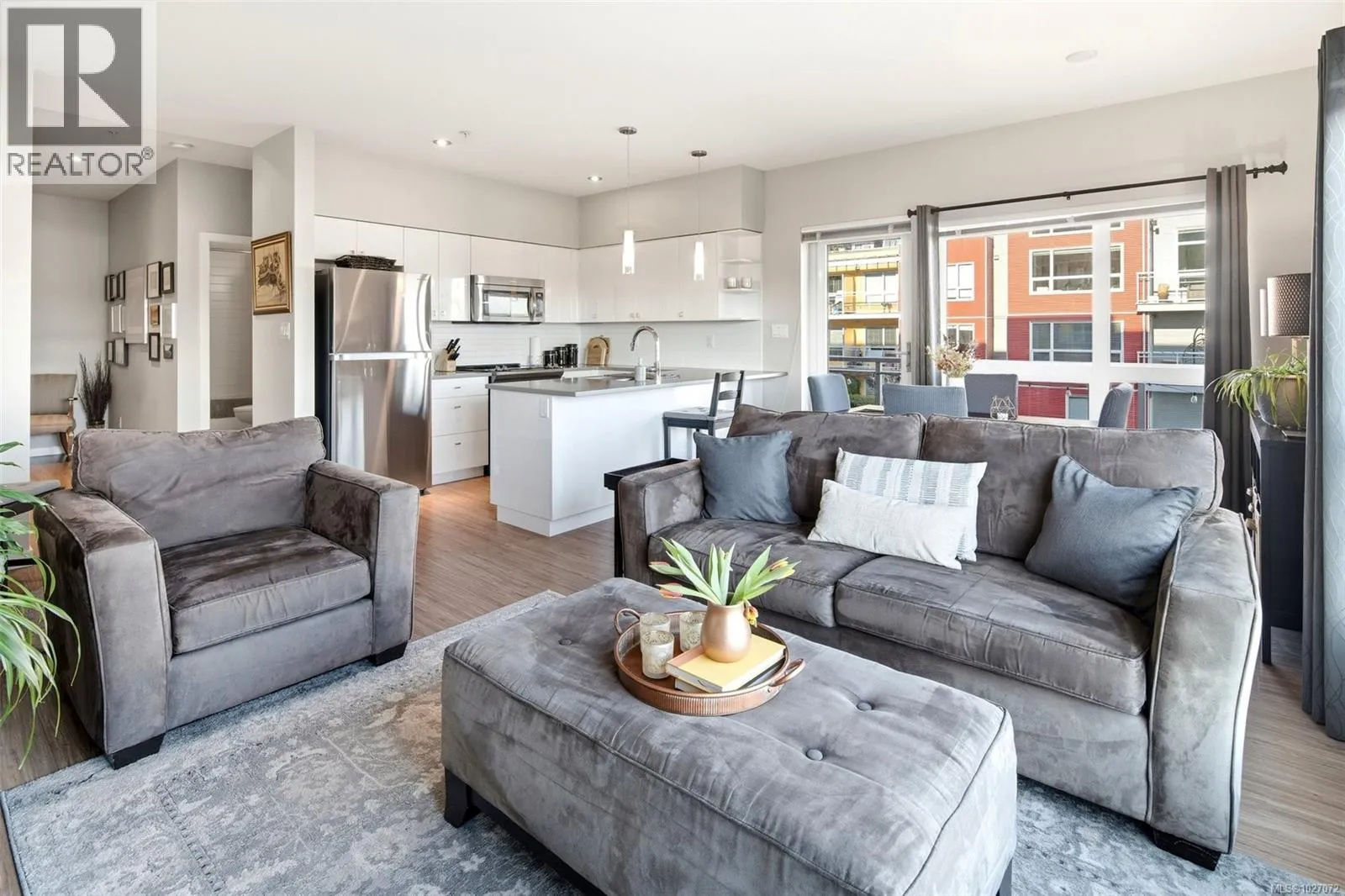 Welcome to Bonds Landing at the Railyardsâa modern, vibrant community offering the best of urban living and outdoor recreation at your doorstep. Located in desirable Vic West, this charming collection of condos and townhomes sits along the Selkirk Waterway, steps to groceries, restaurants, cafés, and the Galloping Goose Trail. This immaculate corner suite features the largest one-bedroom floor plan in the complex with an open-concept layout, spacious kitchen, dining area, and generous living room. The primary bedroom fits full-sized furnishings and includes a walk-in closet. Oversized windows, in-suite laundry, and a west-facing 14x5' balcony ideal for BBQs complete the home. Secure parking, storage locker, bike storage, and a pet-friendly complex allowing two dogs. Experience Victoriaâs sought-after waterfront community! (id:27476)