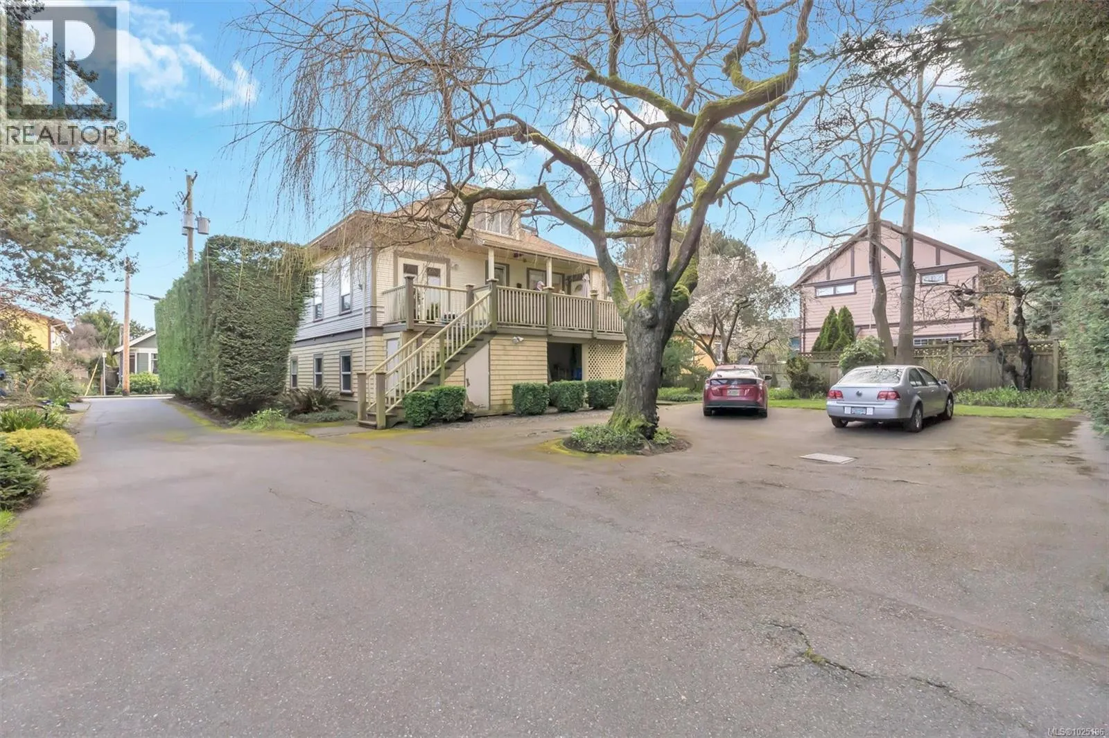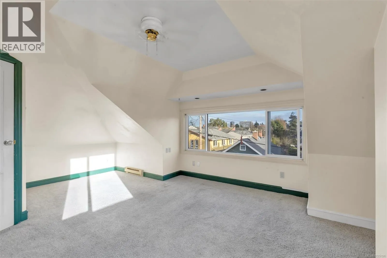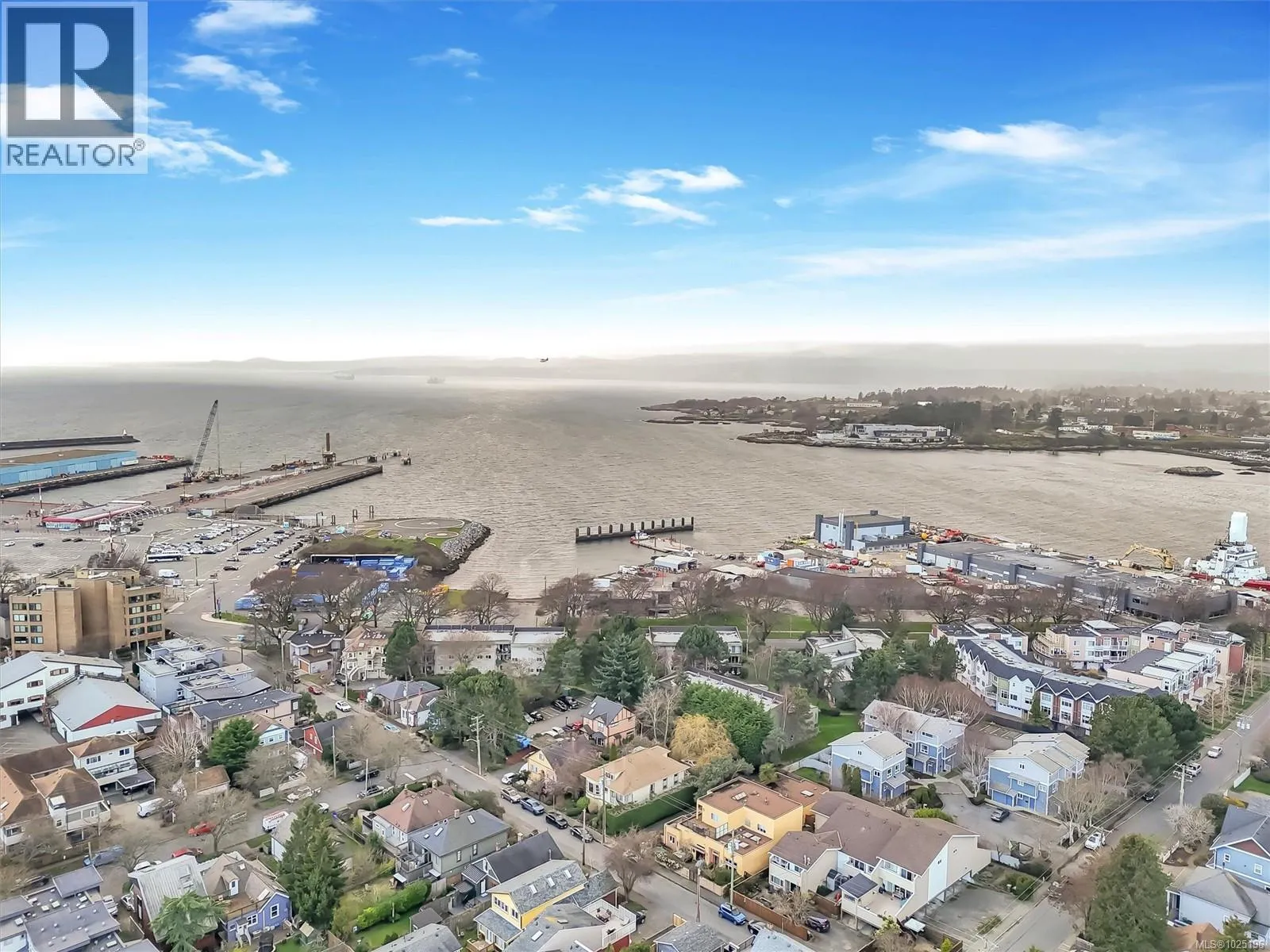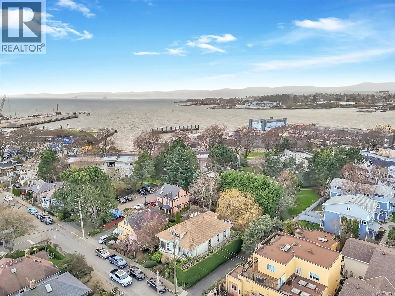 Your chance to get into an iconic neighbourhood awaits! Perfect for first-time buyers or young families, this home offers exceptional value and the opportunity to create your dream space in sought-after James Bay. Ideally located just off Dallas Road, perfectly positioned between Fishermanâs Wharf and Ogden Point, youâll enjoy oceanfront walks, cafés, and waterfront living right at your doorstep. This charming 3-bedroom townhouse is full of character, featuring 10-ft ceilings and large bay windows overlooking a quiet one-way street. The dining area flows off the functional kitchen into the bright living space. The main level offers two bedrooms and laundry, while upstairs is a private primary retreat with a sun-drenched patio. Includes off-street parking, and storage locker. Walk to downtown and everything James Bay has to offer. (id:27476)