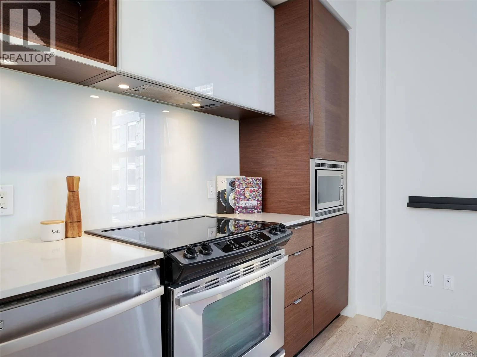 Welcome to 601 Herald â a modern, light-filled home in the heart of downtown. This beautifully designed residence features floor-to-ceiling windows that flood the space with natural light, complemented by 9-foot ceilings and elegant light oak hardwood floors. The open-concept kitchen and living area showcases stainless steel appliances, stylish cabinetry with glass backsplash, and sleek quartz countertops. The cozy bedroom offers a comfortable retreat, while the convenience of in-suite laundry and secure bike storage makes everyday living effortless. Pet lovers will appreciate that up to three pets of any size are welcome. Step outside and enjoy the buildingâs serene Zen garden and sitting area â your own peaceful green space in the centre of the city. Located on the corner of Government Street just steps away from the vibrant Chinatown district, the waterfront and surrounded by some of the best cafés and restaurants the city has to offer. (id:27476)