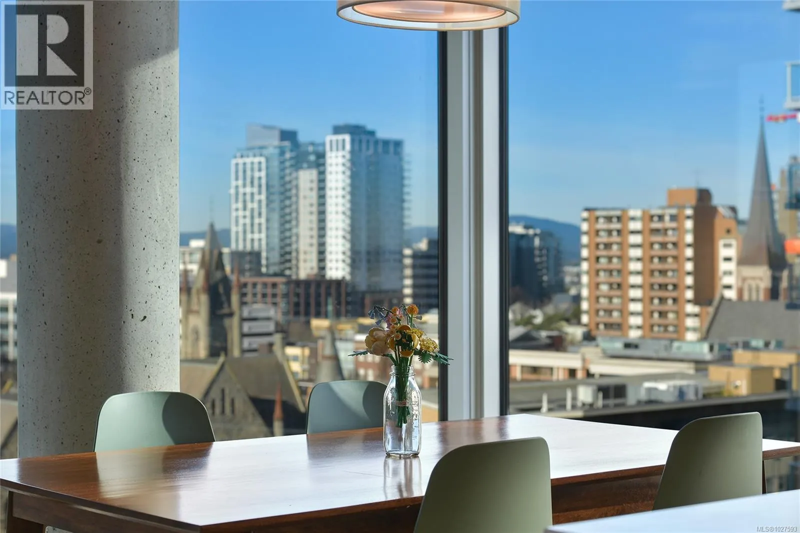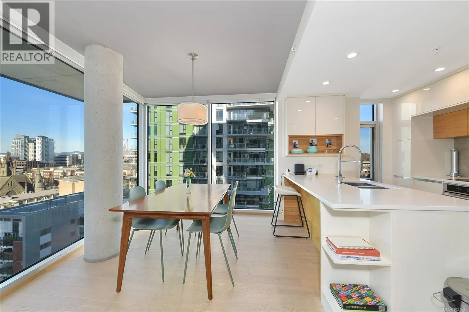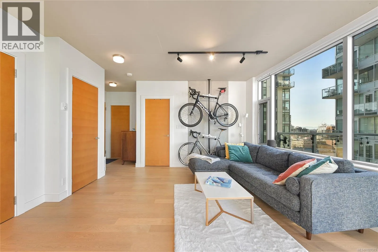 Not your typical downtown condo. This one is perched in a very unique way on the 10th floor at 989 Johnson. A bright NW exposure. Walk-in and instantly be impressed by the city, mountain, and water views surrounded by natural light via massive floor to ceiling windows. At 989 Johnson, the modern and industrial design is ahead of its time. This popular floorplan maximizes your living space and is customizable to fit your lifestyle. There is plenty of kitchen storage beautifully concealed behind white high gloss millwork for a contemporary and functional interior. Luxury appliances, white quartz countertops, exposed concrete accents, light oak engineered hardwood floors, and solid wood closet organizers are just a few of the premier finishes in this home. One underground secure parking stall and storage locker included. Pet friendly, rentals allowed, and all the amenities you need a short stroll away. (id:27476)