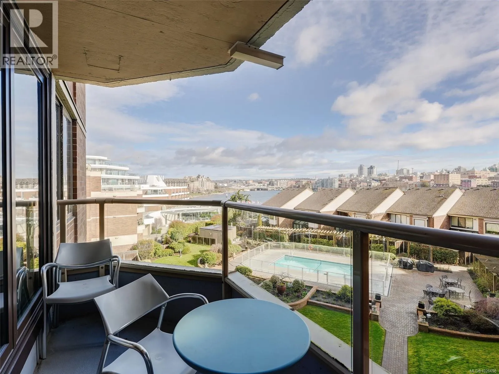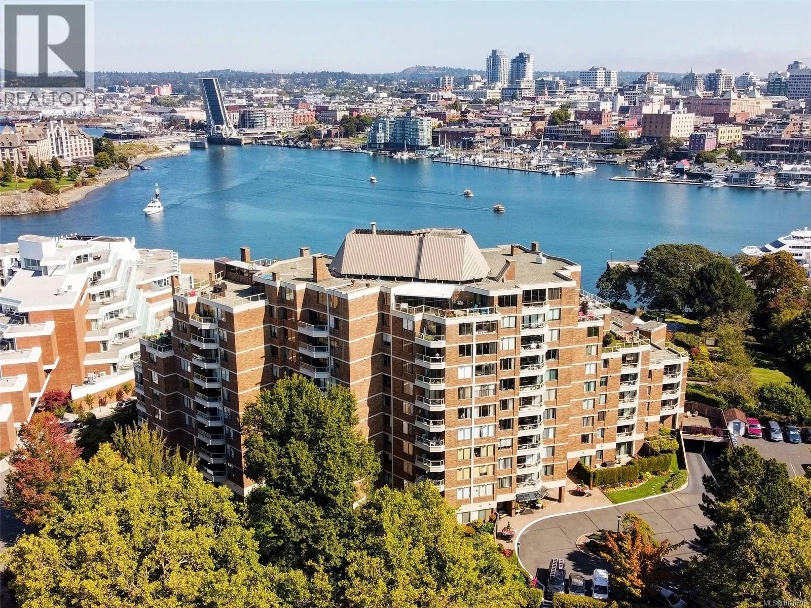 LAUREL POINT CONDO WITH OCEAN VIEWS. A highly coveted luxury condo complex in the heart of James Bay. Two bedrooms and two bathrooms offering a spacious living space with beautiful engineered hardwood flooring. The kitchen has newer appliances and bar seating, separate dining area and a living room with access to your covered balcony with a view of the pool and the harbour. The primary bedroom features a walk-in closet and a 4 piece ensuite. This building has much to offer with an outdoor pool, courtyard with BBQ and outdoor seating, games/amenities room, library, workshop and sauna. Comes with a secured underground parking, separate storage in a pet friendly building. Easy access to the David Foster Walkway and stroll along the waterfront. Fisherman's Wharf, parks, cafes, restaurants and shopping all within close proximity. Live where you love, book your showing today. (id:27476)