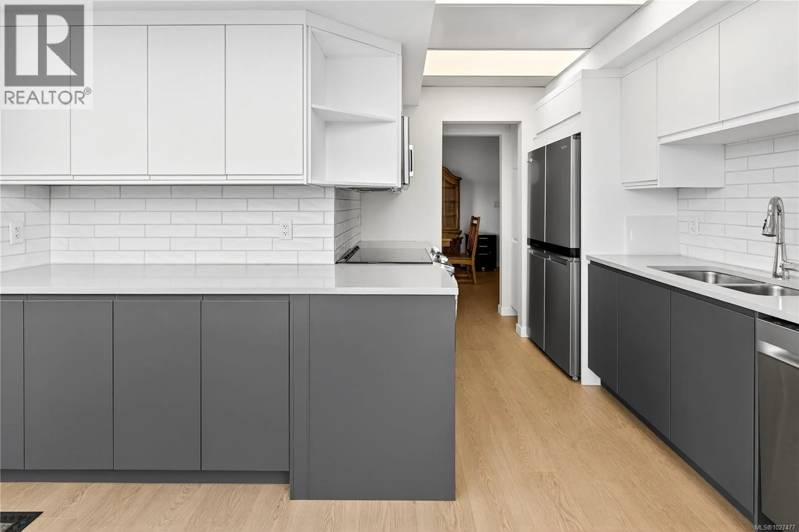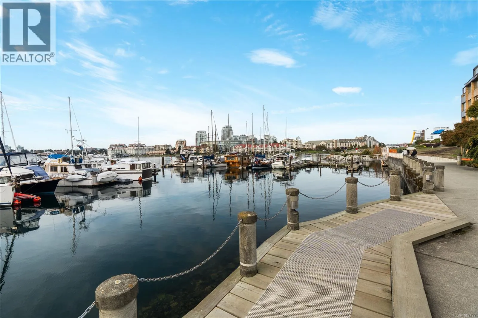 **OPEN HOUSE MARCH 8th 1:00-3:00pm** SIGNIFICANTLY REDUCED! Unobstructed Ocean Views and Fresh Renovations! This is a prime spot for a Victoria lifestyle. Walk the David Foster Pathway to the Inner Harbour, Empress, and Ogden Point. Carriages, float planes, and ferries make you feel like you're in a Hallmark movie. Retreat to your west-facing balcony for mountain and harbour vistas from your turnkey home. Updates like new hardwood flooring, a sleek kitchen, and 9'3'' ceilings save you the work of modernizing. The layout captures beauty from sunrise to sunset, even overlooking a lily pond. Gas fireplace, underground parking, updated common areas, a storage cage, and large Primary bedroom with ensuite bath make this tremendous value under $900k. Truly a picturesque place to call home. (id:27476)