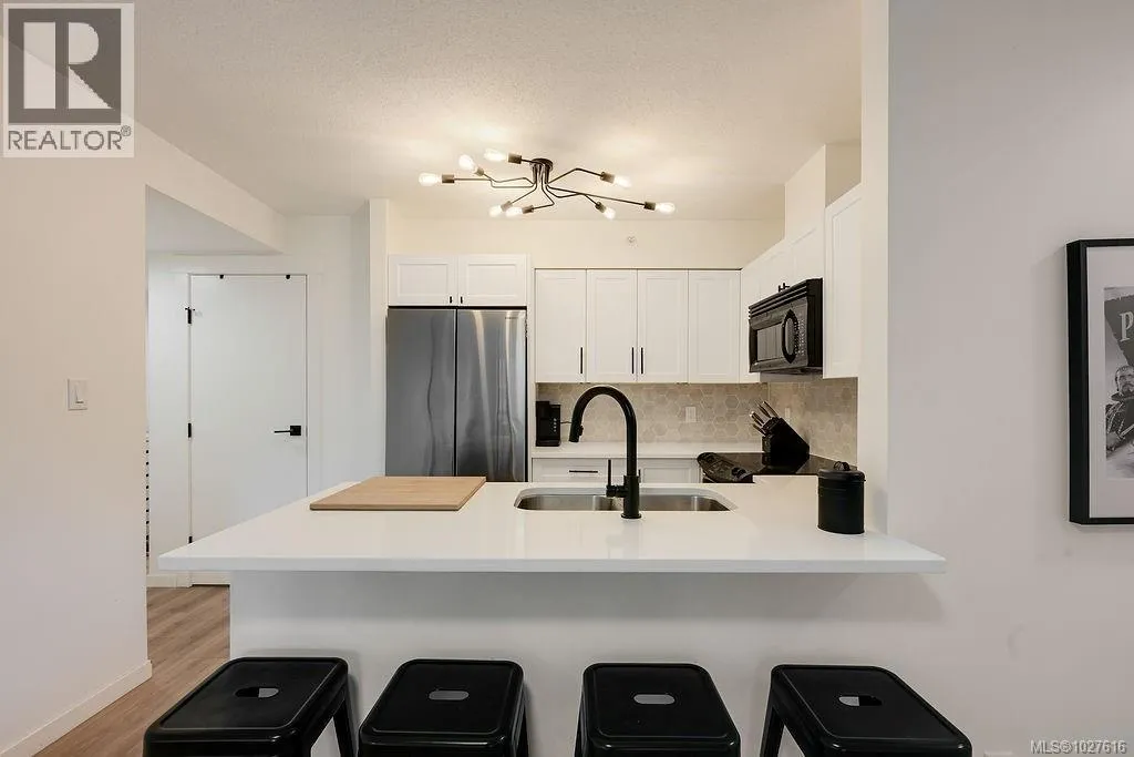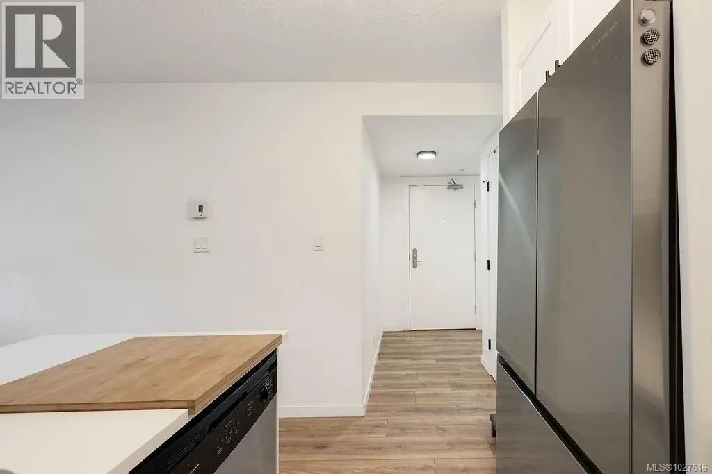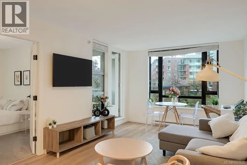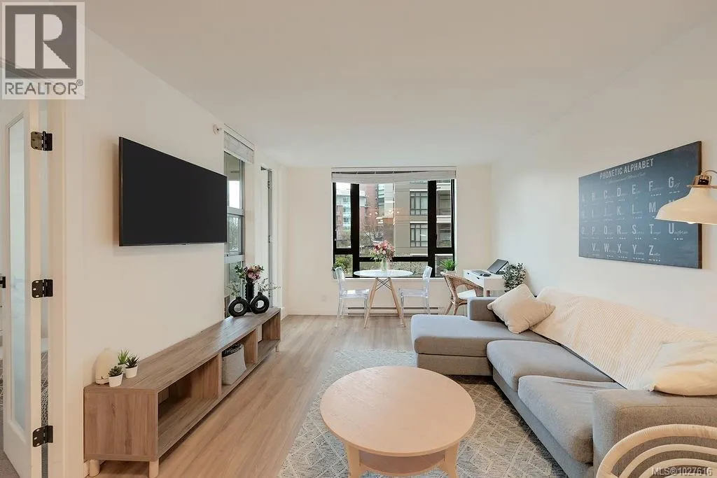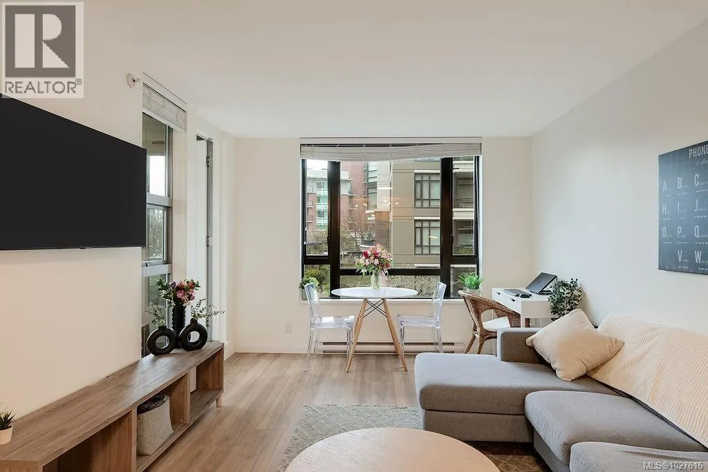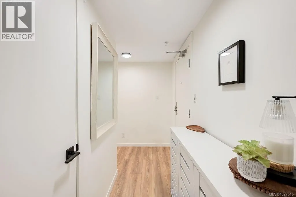 Experience the pinnacle of urban living at The Astoria. Located in the beautiful Humboldt Valley, this rare 861 sq. ft. corner suite offers the ultimate downtown lifestyle just steps from the Inner Harbour. This bright 2-bedroom plus office condo underwent a professional renovation by YYJ Contracting, blending modern luxury with thoughtful functionality. The beautiful kitchen by Thomas Philips Woodworking features white quartz counters, custom cabinetry, and a newer French-door fridge. Enjoy the seamless flow of waterproof Aqua Genius laminate flooring and oversized windows that flood the home with light while staying cool. The refreshed bathroom boasts a new vanity and Grohe fixtures, while the versatile office is perfect for remote work. With new Italian glass lighting, custom blinds, and a convenient 2nd-floor location ideal for pet owners, every detail is handled. This private, quiet retreat is downtown living at its finest. (id:27476)