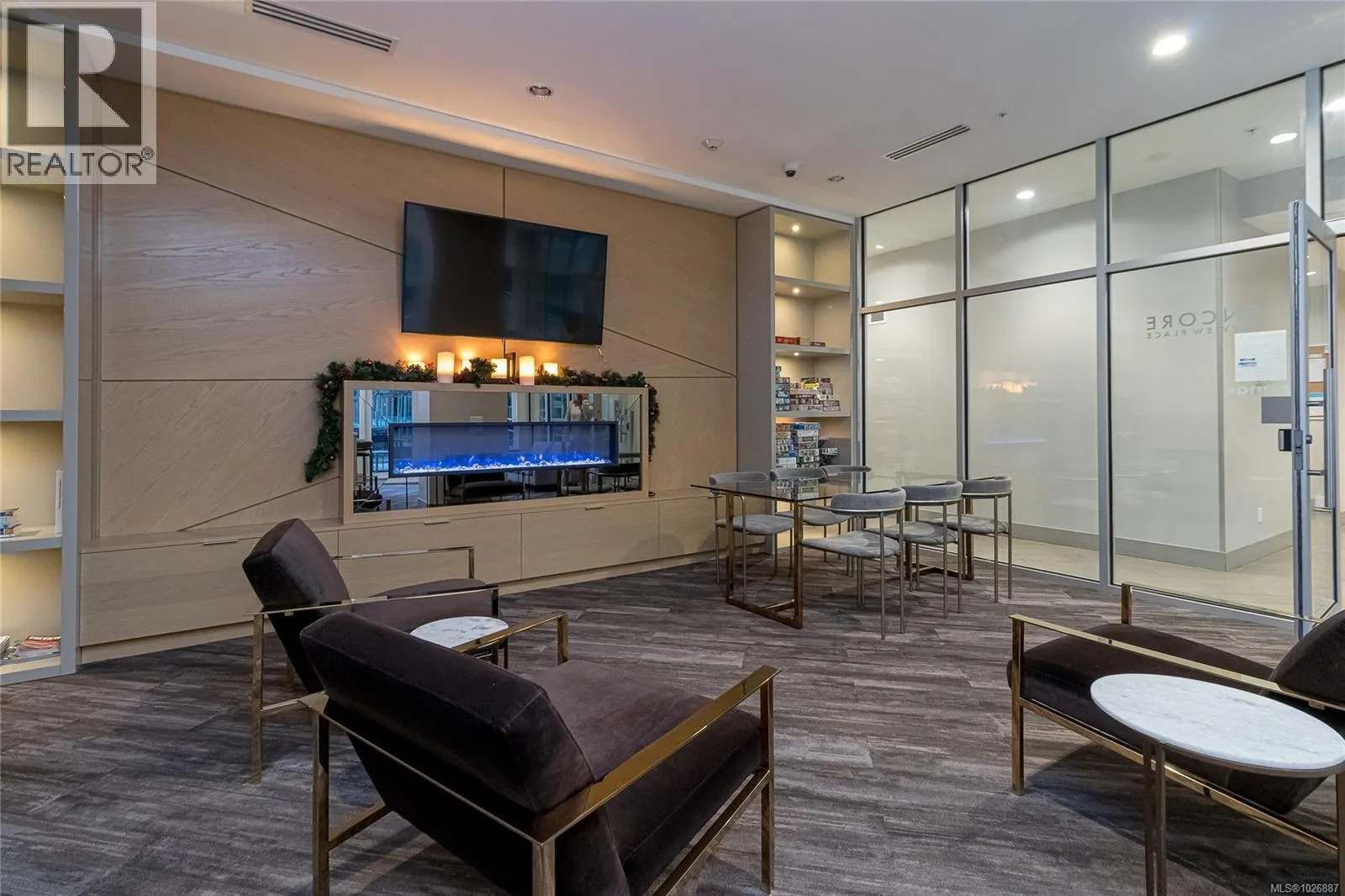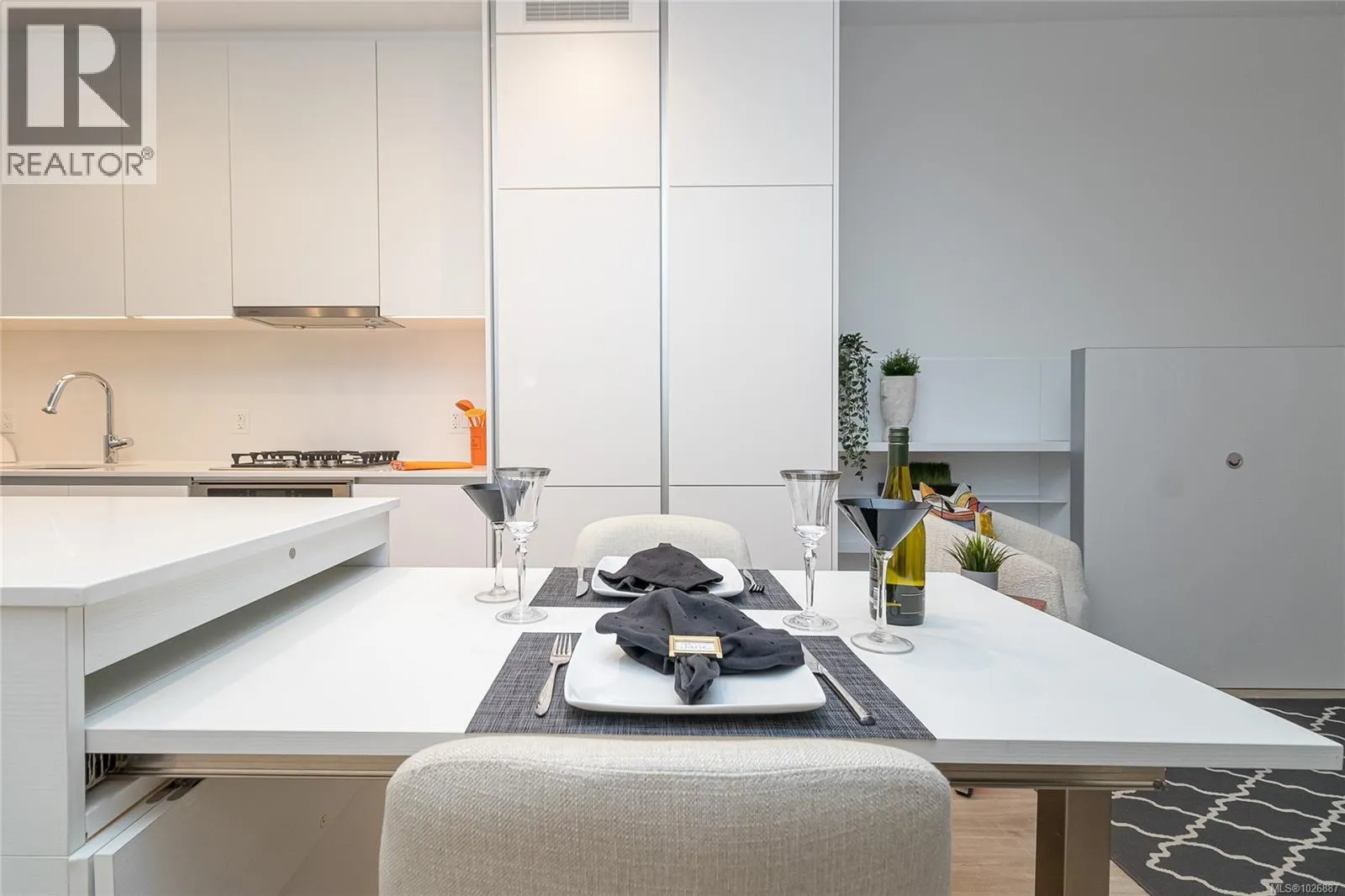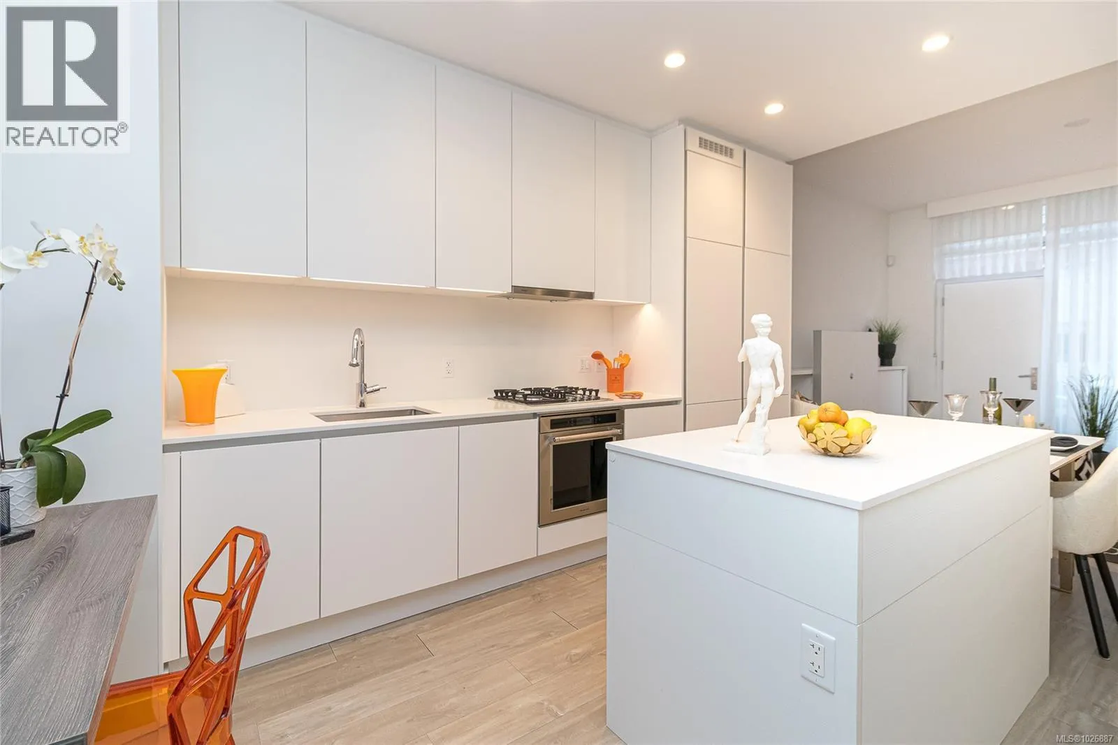 This exceptional 1-bedroom, 1-bath suite is in like-new condition and located within one of Victoriaâs most prestigious waterfront communities, the Songhees. A rare offering, the home features expansive windows on both northeast (front) and southwest (rear) exposures, plus an impressive 662+ sq. ft. of private patio spaceâperfect for seamless indoor-outdoor living. Enjoy the convenience of a private street-level entrance along with secure, direct access to the outdoor pool, fire pit, lounge, fitness centre, and secured underground parking with storage. Thoughtfully designed, the open-concept layout offers high ceilings and a spacious kitchen appointed with premium cabinetry, stainless steel appliance package with gas range, newly installed oven, and an oversized island with an extendable dining table accommodating up to eight. The living room features a built-in media unit with wall bed, while the spa-inspired cheater ensuite complements the bedroom with custom built-ins and tailored window coverings. Additional highlights include a heat pump and security system. Residents of Encore by BOSA enjoy a true five-star lifestyle with full-time concierge service, a fully equipped gym, elegant ownerâs lounge, heated outdoor pool with fire pit and seating areas, guest suite, secure bike storage, storage locker, one underground secured parking stall, and visitor parking. (id:27476)