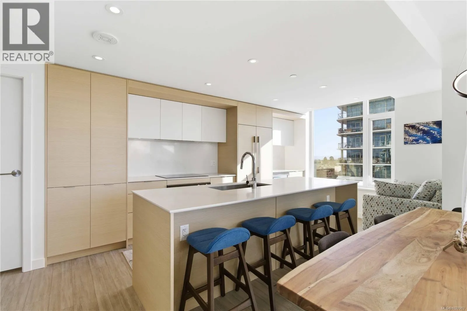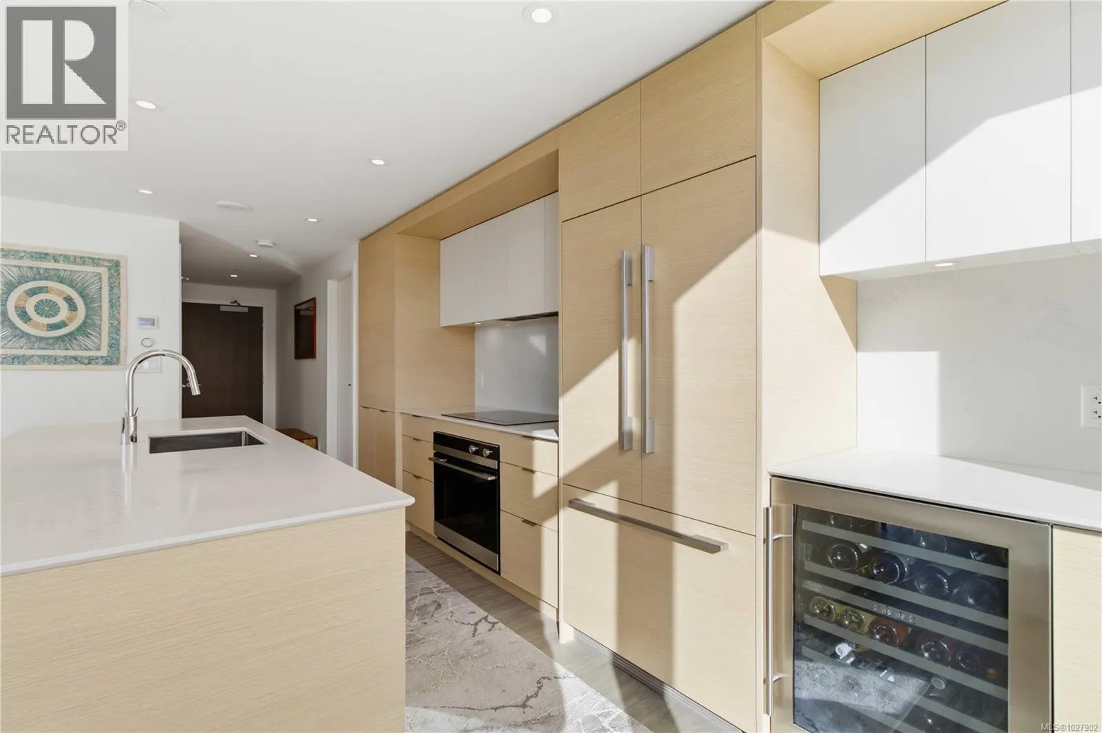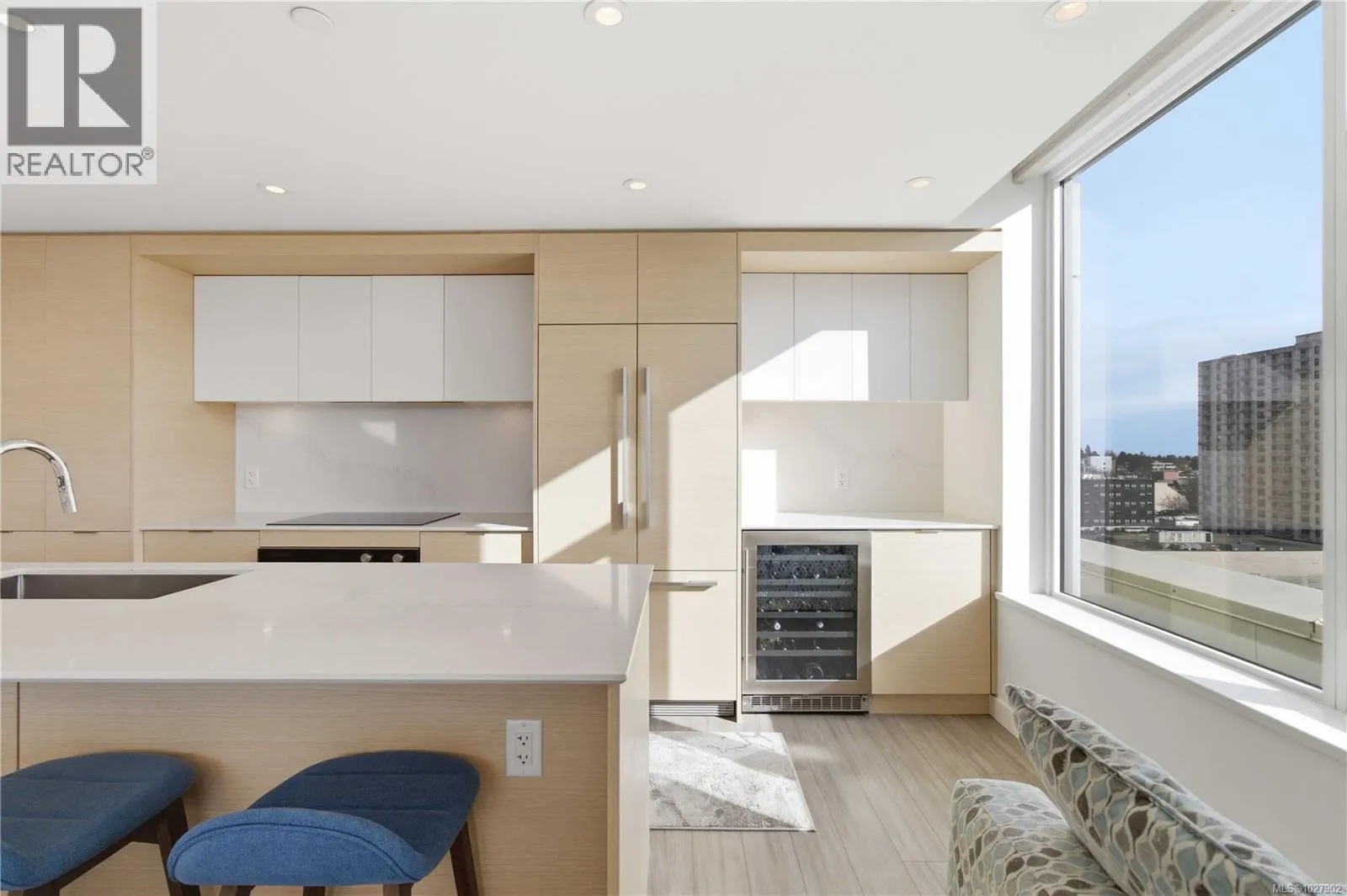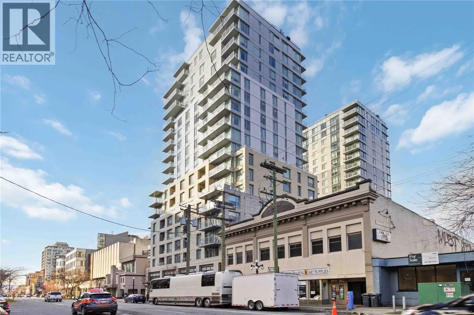 Experience contemporary luxury at Yates on Yates by Chard Developments. This sleek, southwest-facing two-bedroom, two-bathroom residence combines modern design with timeless elegance in a steel-and-concrete building. Soaring floor-to-ceiling windows frame bright open views and flood the home with natural light, while a 301 sq. ft. wraparound balcony invites you to relax and take in the sunny cityscape. Automated Hunter Douglas blinds add a refined, functional finishing touch. The spacious gourmet kitchen is a chefâs dream, featuring premium integrated appliances, an induction cooktop, soft-close cabinetry, quartz countertops, and a custom wine fridge. Wide-plank flooring and a light, versatile colour palette create an inviting canvas for any style, blending classic finishes with fresh contemporary appeal. Climate-controlled air heating and cooling keep the home comfortable year-round, complemented by heated ensuite floors for added warmth. Residents enjoy exceptional rooftop amenities including BBQ areas, a firepit, pet play zone, community garden, and panoramic 360° views of the mountains, water, and city. Additional conveniences include secure bike storage, a storage locker, and a pet wash station. With groceries, restaurants, theatres, and transit just steps away, this pet- and rental-friendly home offers the ultimate in vibrant urban living, where modern luxury meets classic sophistication. (id:27476)