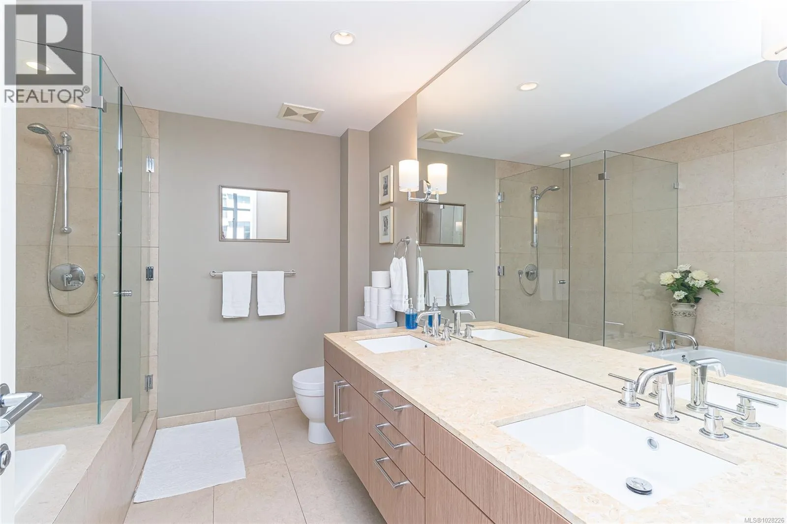 EXPERIENCE ELEVATED CITY LIVING AT BAYVIEW ONE IN THIS EXPANSIVE, ABOVE-GROUND RESIDENCE OFFERING OVER 1,500 SQFT OF ELEGANT LIVING SPACE & SOUTHWEST EXPOSURE. Showcasing two spacious Primary Bedrooms, each complete with large Walk-In Closets and luxurious 5-Piece spa-inspired Ensuites. Featuring a grand Entry Hallway, splashy 2-Piece Powder Room, Gourmet Kitchen with Stainless Appliances, Granite Counters & Gas Range, separate Dining Area, and Living Room with Fireplace & access to sun-filled Balcony. Other features include floor to ceiling windows, AC, high ceilings, separate over-sized storage and underground secure parking stall conveniently situated right next to the elevator. Building amenities include front desk Concierge, Fitness Centre, Sauna, Steam Rooms, Hot Tub, Rec Room, Guest Suite, Outdoor Terrace with BBQs and more! Situated only a short stroll from Victoriaâs Inner Harbour, Shopping and Entertainment Downtown, and many walkable paths nearby! 2023 Updates include: New Engineered Hardwood Flooring throughout, Entire Home Professionally Painted, New Vertical Blinds with Valance, New Kitchen Faucet and Stove Knobs. Professionally managed strata welcomes pets (no size restrictions), rentals, & all ages. Donât miss this opportunity - Call Today! (id:27476)