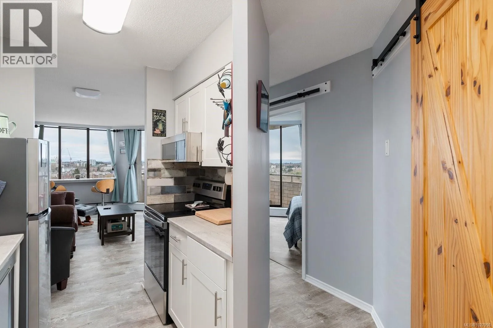 Experience elevated coastal living with postcard-perfect views from this stunning southeast-facing 14th-floor condo. Bright, open and beautifully updated, this home captures the best of life by the sea in one of Victoriaâs most sought-after locations. Step onto your expansive 17-foot covered deck and take in sweeping views of the Strait of Juan de Fuca, Beacon Hill Park and the cityâs blue heron nesting grounds. Each morning brings radiant sunrises, sparkling water and graceful ships passing by, creating a view that feels new every day. Inside, thoughtful 2024 updates bring comfort and style together. Wide-plank flooring flows through the spacious living area while the redesigned kitchen shines with stainless steel appliances, classic shaker cabinetry and granite countertops. Solid wood barn doors, soft LED lighting throughout and a spa-inspired bathroom complete the atmosphere of easy everyday elegance. This home is move-in ready and offers a secured parking stall, storage locker and convenient access to bike and kayak storage. The building enhances daily living with resort-style amenities including a fitness room, pool, library, party room, guest suites, EV chargers and more. Perfectly located steps from Beacon Hill Park, Dallas Road and downtown, this condo blends coastal charm, modern ease and an unbeatable walkable lifestyle youâll love coming home to. (id:27476)
