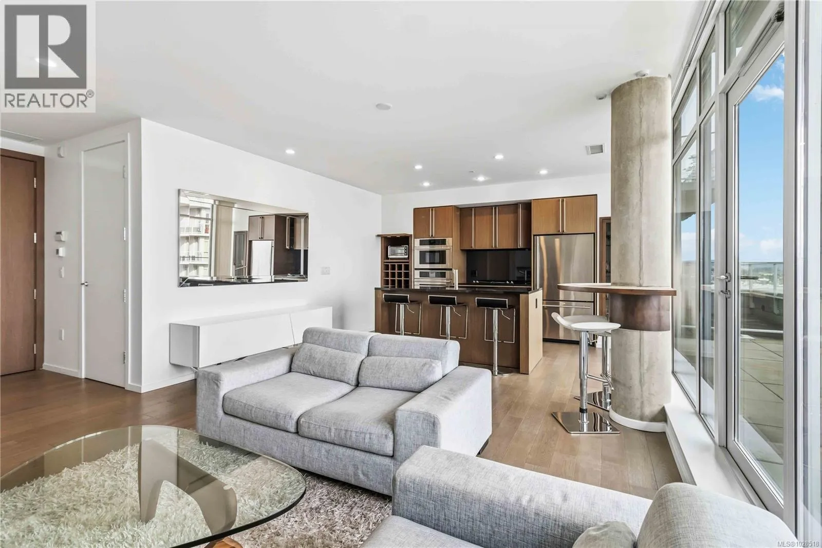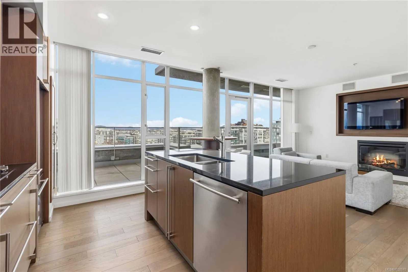 Welcome home to this completely customized sub penthouse home at the coveted Bayview Residences. Located in one the the best spots in Victoria and Songhees corridor, this home offers some of the finest ocean, mountain and city views in all of Greater Victoria. Meticulous millwork and custom lighting throughout, hardwood floors, granite countertops, Jenn Air stainless appliances, air conditioning and wall-to-wall/floor-to-ceiling windows in every room. Huge deck surrounded by ocean and city views perfect for all your summer entertaining and bbq's. Huge primary bedroom with walk-in closet finished off with a spa-like bathroom. Amenities include an on-site concierge, complete fitness studio + gym, hot tub, sauna plus an amazing owner's patio with firepit + outdoor kitchen with BBQ, lounge with big screen TV's, ping pong, pool table, car wash, dog wash, kayak storage and a guest suite. Don't miss this opportunity to live in an amazing community. (id:27476)