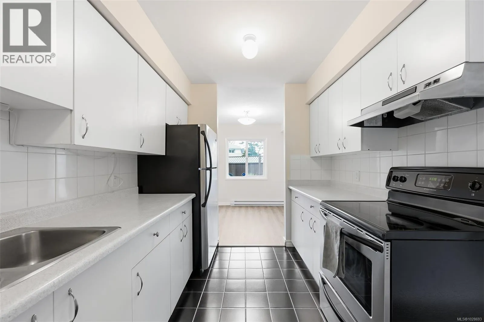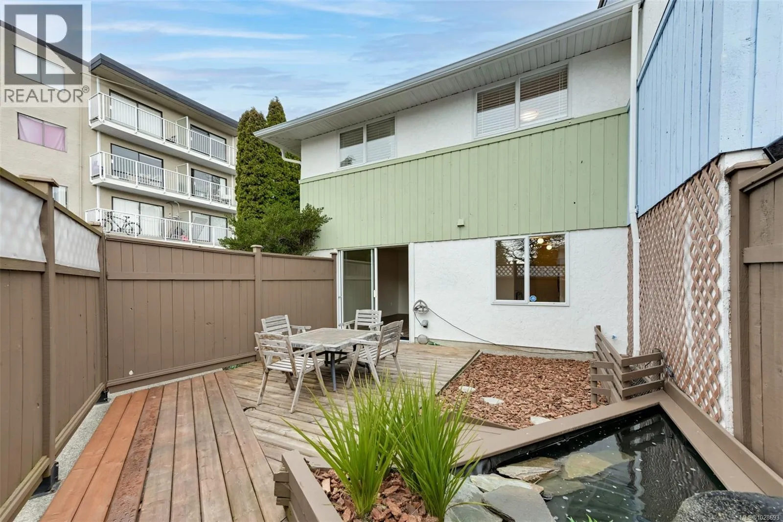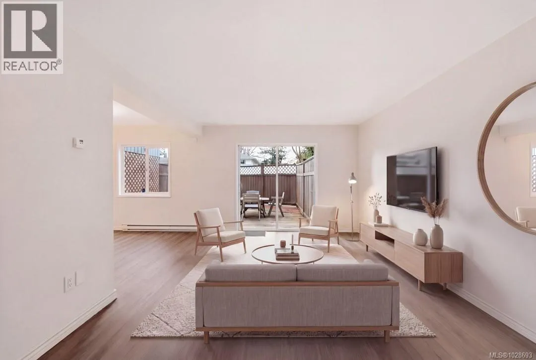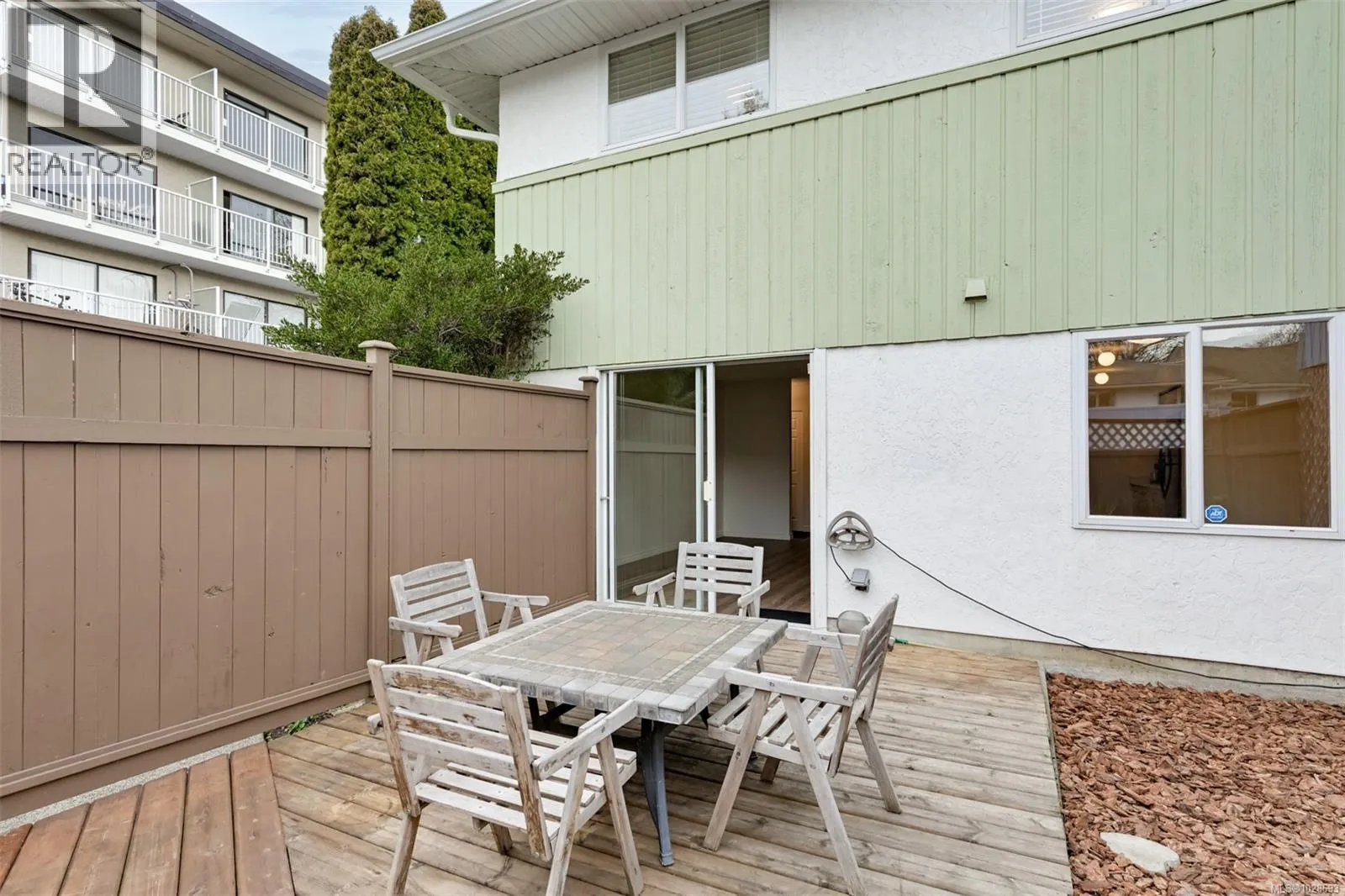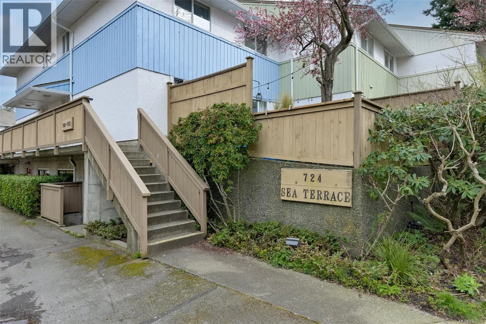 Welcome home to 116-724 Sea Terrace. Set beside Barnard Park and steps from the Songhees Walkway, this 3 bed, 1 bath townhouse offers an unbeatable Victoria West location with easy access to the waterfront, trails, and amenities. Offering 936 sq ft over two levels plus a private enclosed patio of approximately 250+ sq ft, this home is perfect for gardening, relaxing, or entertaining. The patio enjoys great afternoon sun. The main floor features open concept living and dining with new laminate flooring. The kitchen includes updated appliances, electric range, fridge, and in unit laundry. Upstairs are 3 bright bedrooms with hardwood flooring. The home has been freshly painted throughout. This pet and rental friendly complex allows a pet with no size restrictions and includes parking, storage, 2 common laundry areas, billiards table, & secure bike storage. Located minutes from Westside Village shopping, cafés, restaurants, parks, and transit. A great opportunity for new owners to move in. (id:27476)