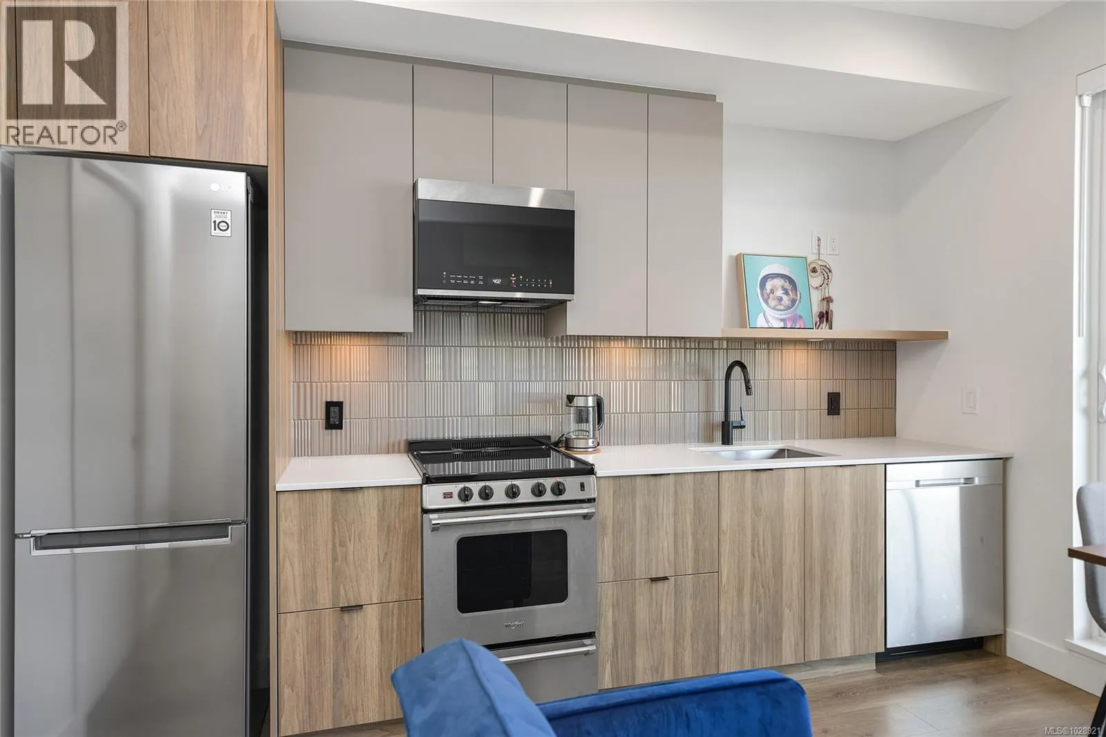 Sparrow, a thoughtfully designed development by Abstract Developments, offers this bright and inviting Junior One Bedroom home in a vibrant and convenient location. Just minutes from some of the cityâs best cafés, boutiques, and everyday shopping, this modern residence blends comfort, efficiency, and contemporary style. The well-appointed kitchen features locally designed millwork, quartz countertops, and stainless steel appliances, creating a clean and functional space for cooking and entertaining. The home also includes in-suite laundry, a deep bathtub, and a stylish floating vanity that adds a modern touch to the bathroom. Step outside onto the private balcony and take in stunning sunset viewsâan ideal place to unwind at the end of the day or enjoy a quiet morning coffee. Designed with comfort and sustainability in mind, the suite includes a heat recovery ventilation system that continuously introduces fresh outdoor air while helping reduce heat loss during cooler months. Residents at Sparrow enjoy a variety of thoughtful shared amenities, including a secure bike room, bike maintenance station, dog washing station, and convenient on-site Modo Car Share access. Located within easy walking distance of Quadra Village and Hillside Mall, the home also offers excellent transit connectivity with direct bus routes to Camosun College (Lansdowne Campus) and the University of Victoria. Downtown Victoria is approximately a 30-minute walk away, making it easy to enjoy the cityâs restaurants, waterfront, and entertainment. This home offers an ideal balance of urban convenience, modern design, and comfortable everyday living. (id:27476)