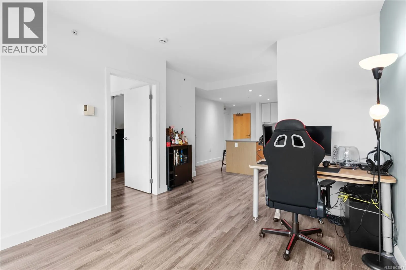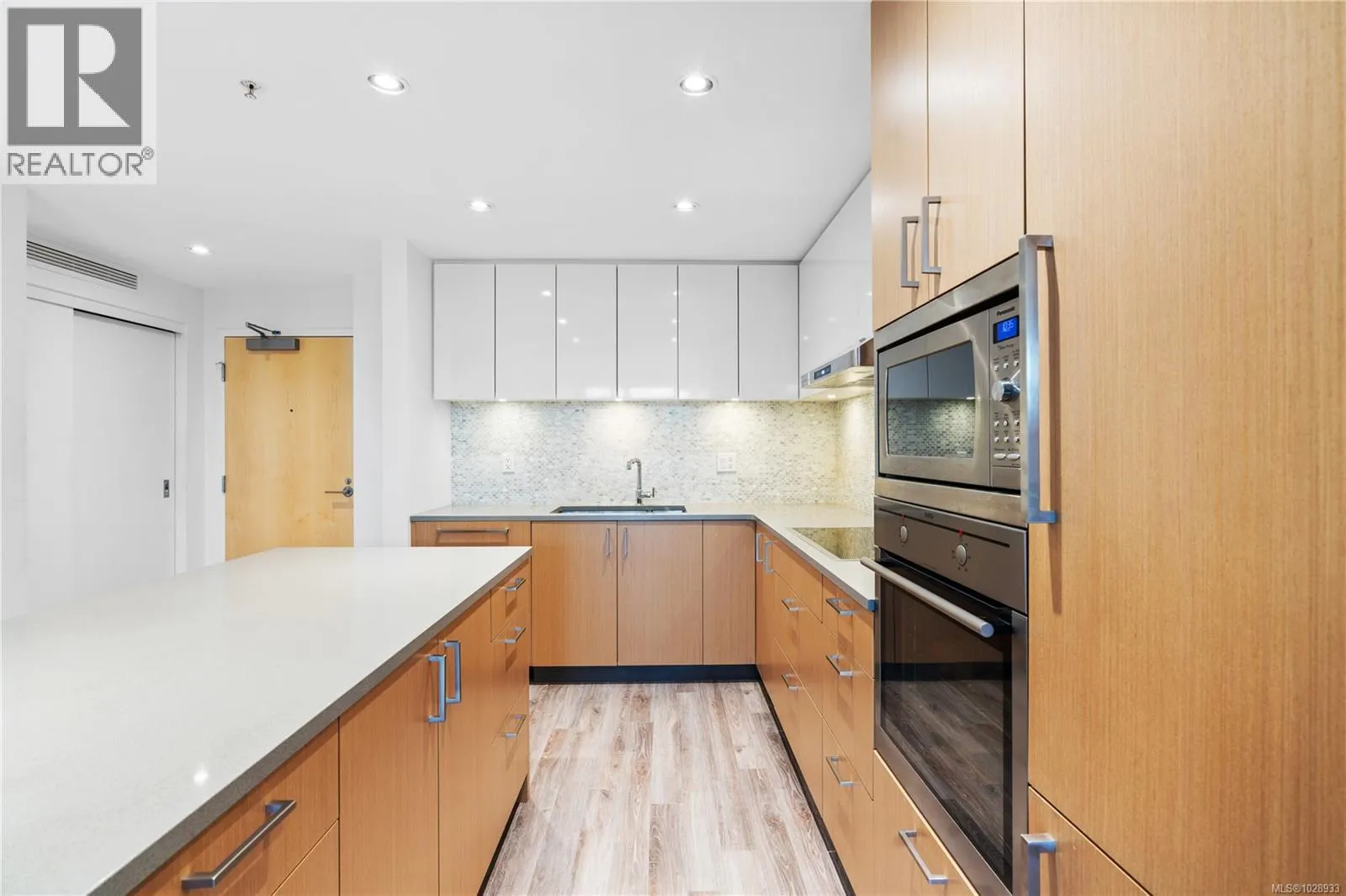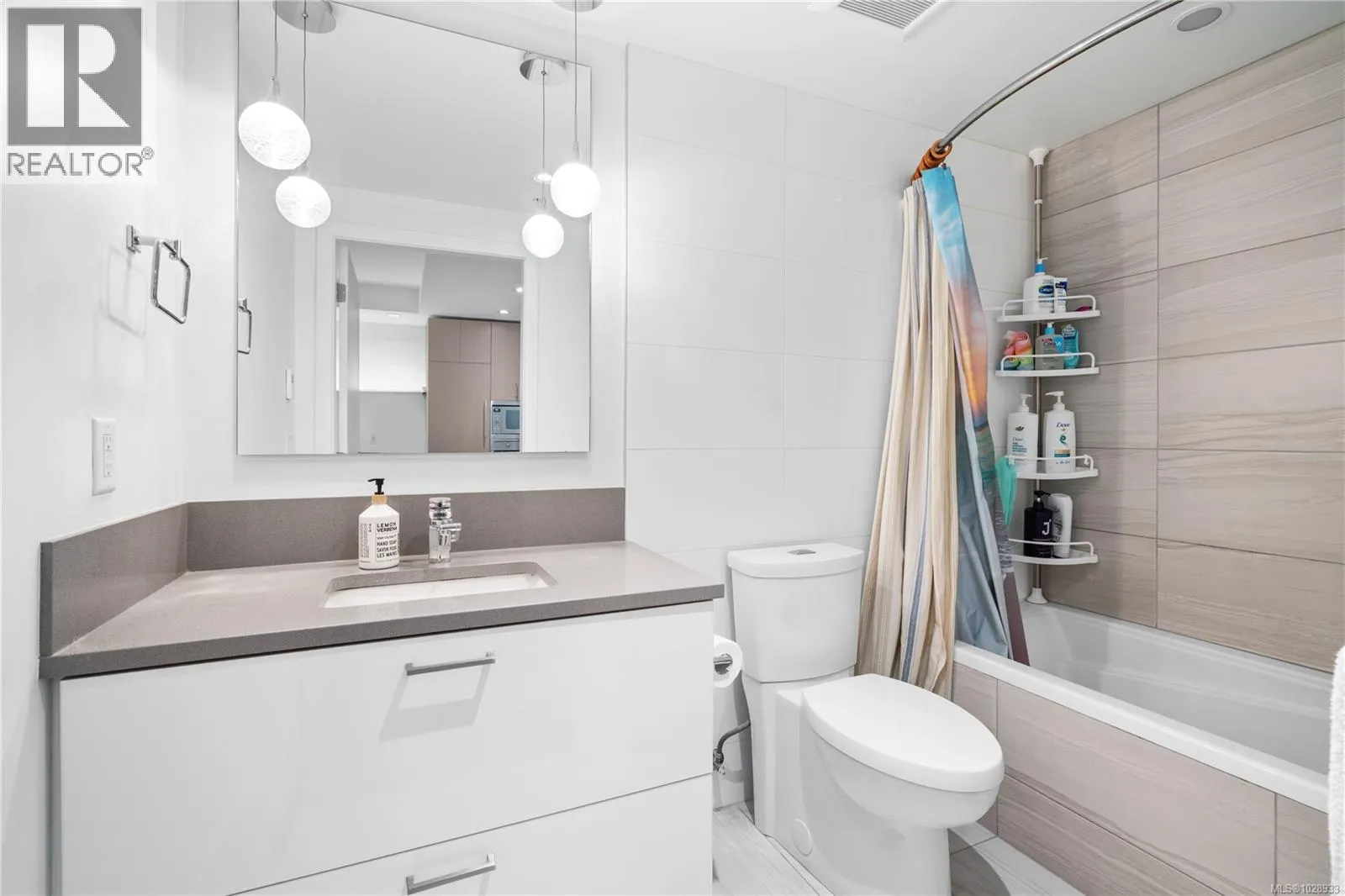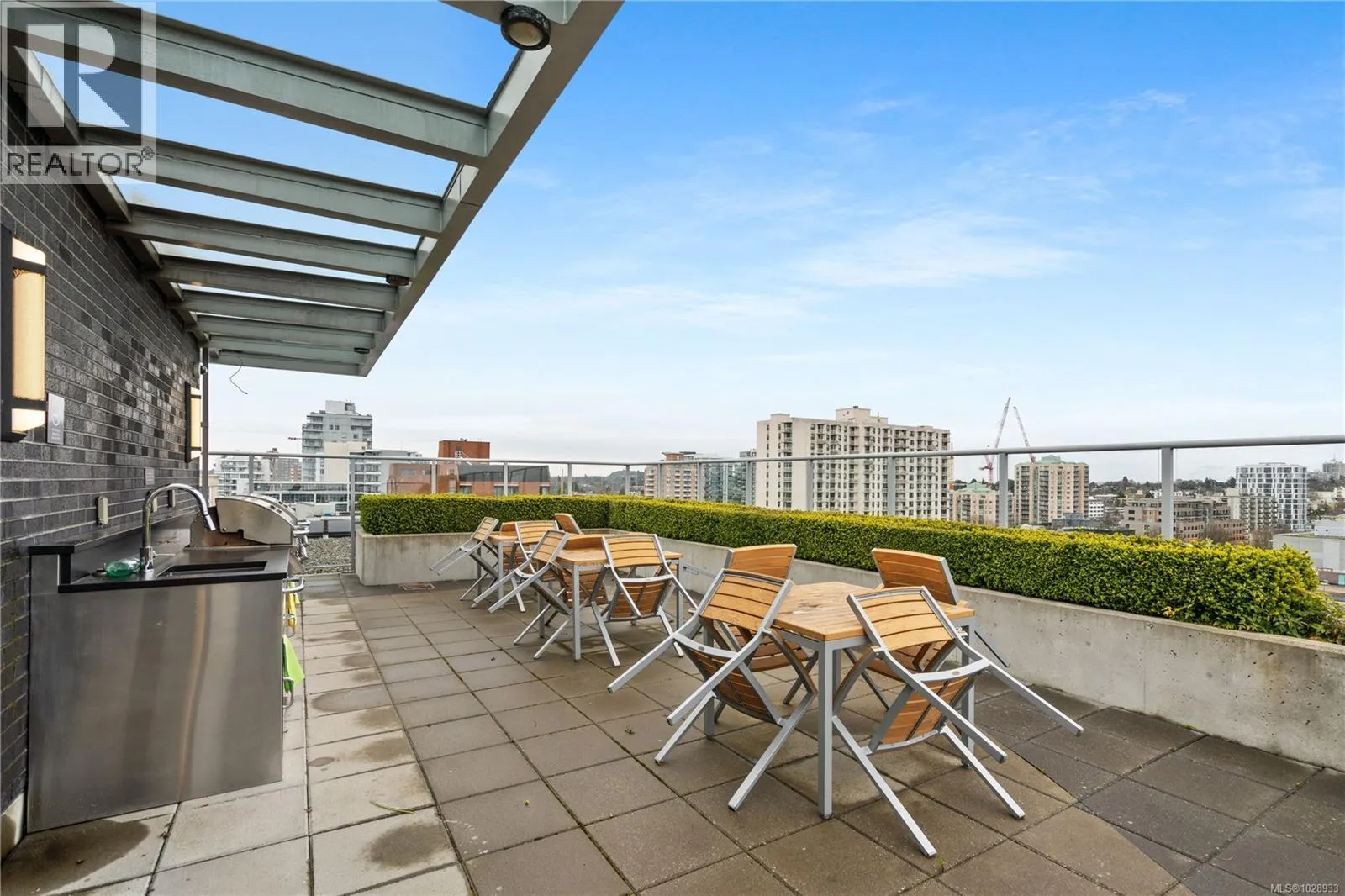 Bright, modern, and ideally located, this one-bedroom residence at 305â838 Broughton Street offers a refined urban lifestyle on the quiet edge of downtown Victoria. The suite features floor-to-ceiling windows, a chef-inspired kitchen, built-in office/desk space, an oversized walk-in closet, heated tile floors, and in-suite laundry. Secure underground parking with an EV charger, and a storage locker are included, along with access to five underground visitor parking stalls. The buildingâs rooftop patio is a standout amenity, showcasing panoramic 360-degree ocean, city, and mountain views, plus a common BBQ area for residents to enjoy. Set just steps from the Royal Theatre, Discovery Coffee, restaurants, parks, and the waterfront, this home blends convenience with calm. A rare opportunity to own in a sought-after location, offering both comfort and lifestyle. (id:27476)