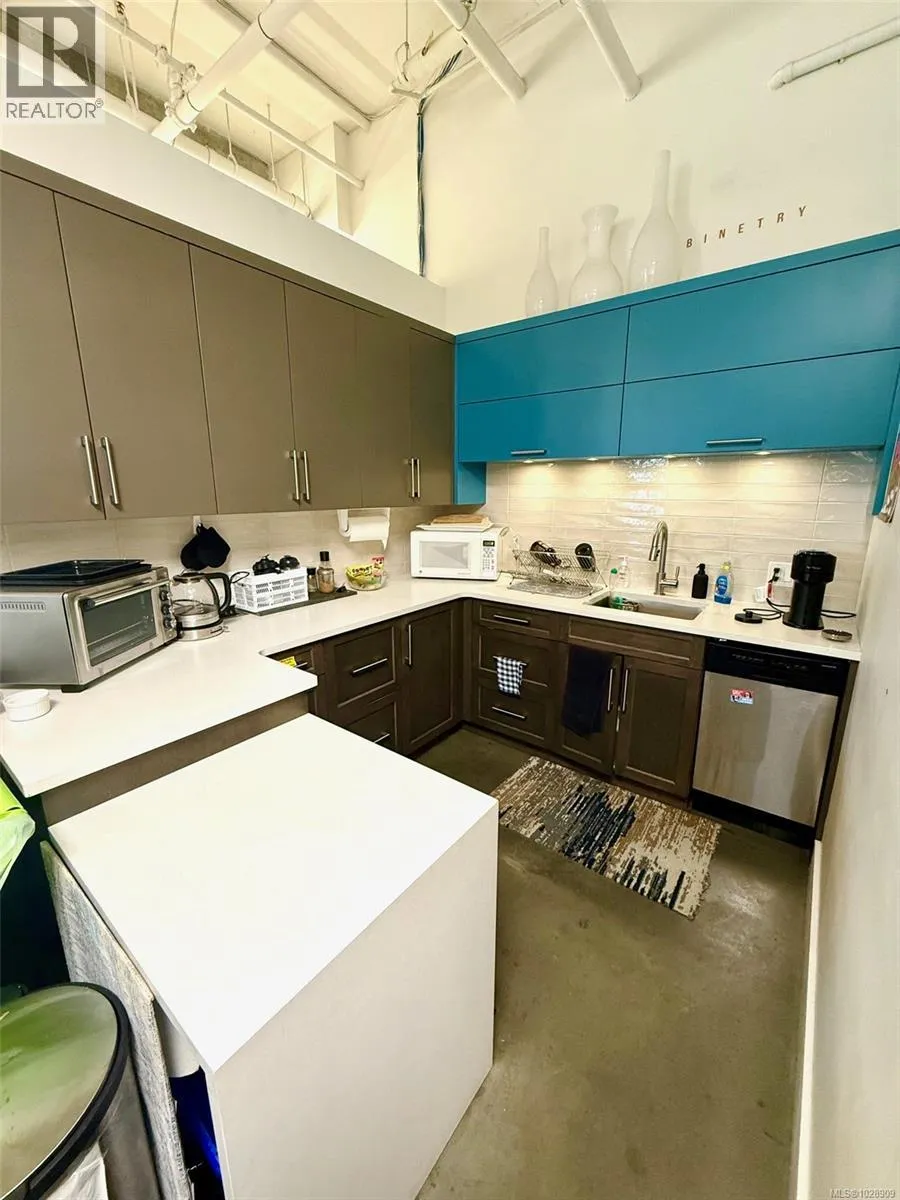 A rare opportunity to lease a beautiful ground-floor corner unit at the prominent intersection of Government Street and Pembroke Street. This nearly 2,300 sq. ft. space offers exceptional street presence with expansive retail windows wrapping both Government and Pembroke. The extensive glazing provides excellent visibility, abundant natural light, and outstanding signage opportunities. Inside, the unit features polished concrete floors and overheight ceilings, creating a bright, modern environment well suited to a variety of uses permitted under the newly introduced Industry, Arts & Innovation zoning. The layout is primarily open-concept and includes two private offices or meeting rooms, a storage area, a well-appointed kitchenette, and an accessible washroom, making it a flexible and functional space for a wide range of tenants. (id:27476)