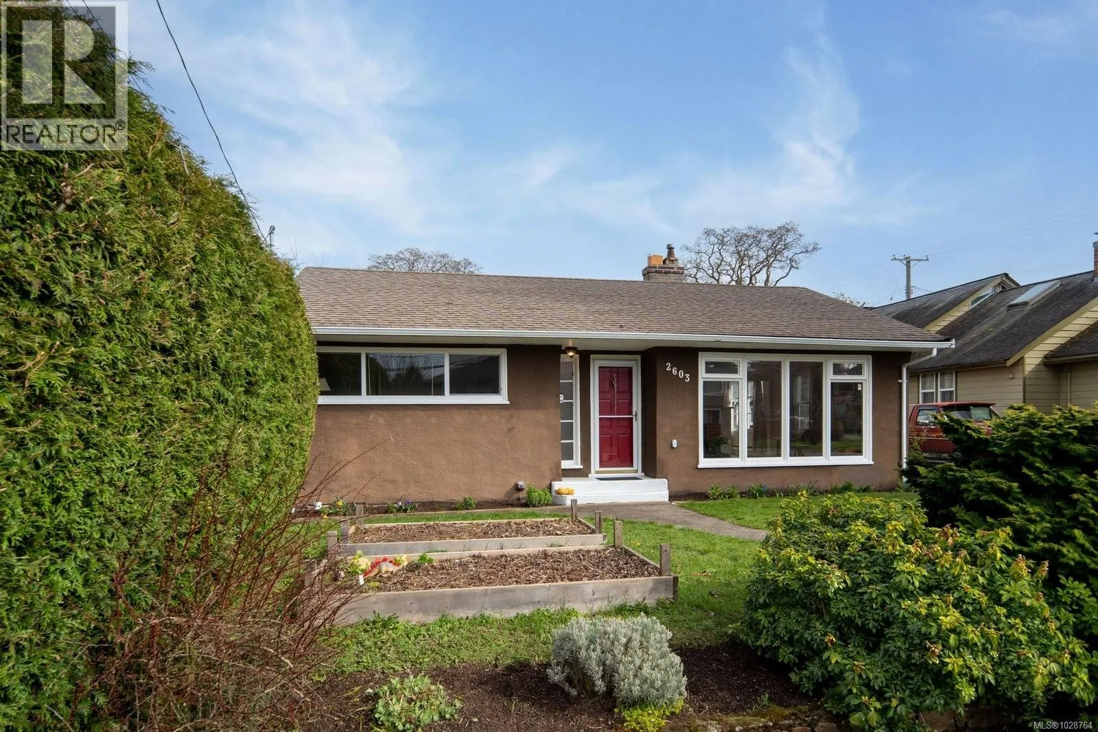 With timeless charm and modern comfort throughout, this cozy rancher is a true gem in a sought-after neighborhood. Featuring two bedrooms and one bathroom, it offers inviting spaces perfect for relaxed living and effortless entertaining. The living room welcomes you with beautiful fir hardwood floors and a gas fireplace framed by its original brick mantel. Large west-facing windows fill the space with natural light and create a warm comfortable atmosphere. The central and efficient kitchen opens to a dining area ideal for gatherings with friends and family. A large laundry room off the kitchen adds convenience and extra storage space. Both bedrooms are bright and well-sized and the refreshed bathroom sits conveniently close by. The encapsulated crawlspace has had recent upgrades along with the perimeter drains. A large detached garage/workshop adds flexibility for hobbies or storage. The quiet, sunny fully fenced backyard features a patio for morning coffee, fig and pear trees, raspberries and flowers from spring to fall. Ample parking adds to the home's appeal. This home enjoys a prime location close to parks Oaklands Elementary School and Hillside Mall. It is also near Royal Jubilee Hospital Camosun College and the Uplands Golf Club with downtown Victoria only minutes away. (id:27476)