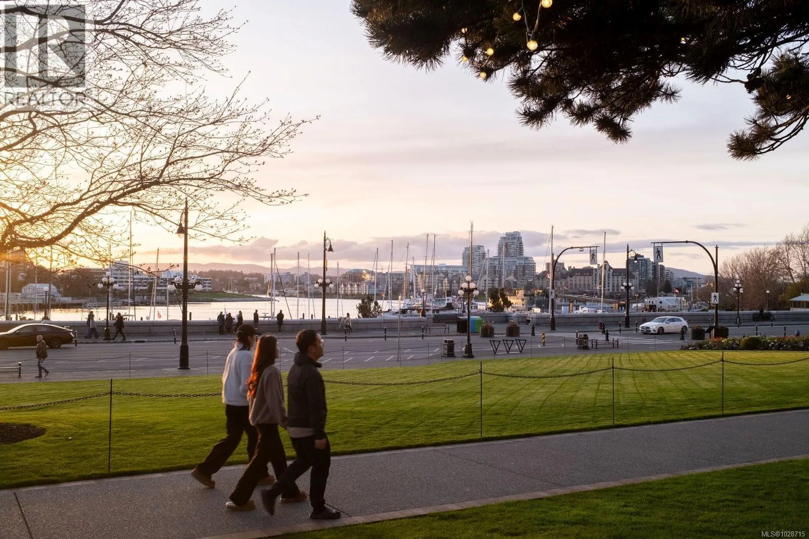 Discover the essence of James Bay living in Polo Pacific, a boutique residence that embodies coastal sophistication just steps from Victoriaâs iconic landmarks. This impressive 2-bedroom, 2-bathroom home spans more than 1,000 sq. ft. and captures the relaxed elegance that defines life by the harbour. Natural light floods the interior through expansive windows, creating a bright and inviting atmosphere. Step onto your west-facing balcony to savour the glow of evening sunsets. The kitchen offers generous counter space and a welcoming eat-in nook, while the separate dining room sets the stage for festive occasions or can easily serve as a versatile home office. The primary bedroom is a peaceful retreat, complete with a walk-in closet and 3-piece ensuite. Everyday comfort is enhanced by in-suite laundry, secure underground parking, a storage locker, and pet-friendly living. Strata fees include gas and hot water, and two guest suites provide a convenient stay for visiting family and friends. Just one block from the Parliament Buildings, this home is nestled in the heart of Victoriaâs most coveted neighbourhood. Stroll to Beacon Hill Park, Fishermanâs Wharf, or the Inner Harbour in minutes, and enjoy the cafés, galleries, and markets that give James Bay its unmistakable coastal charm. (id:27476)