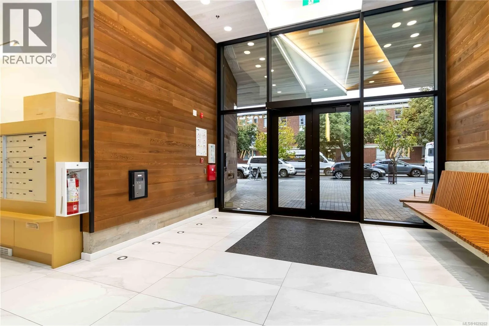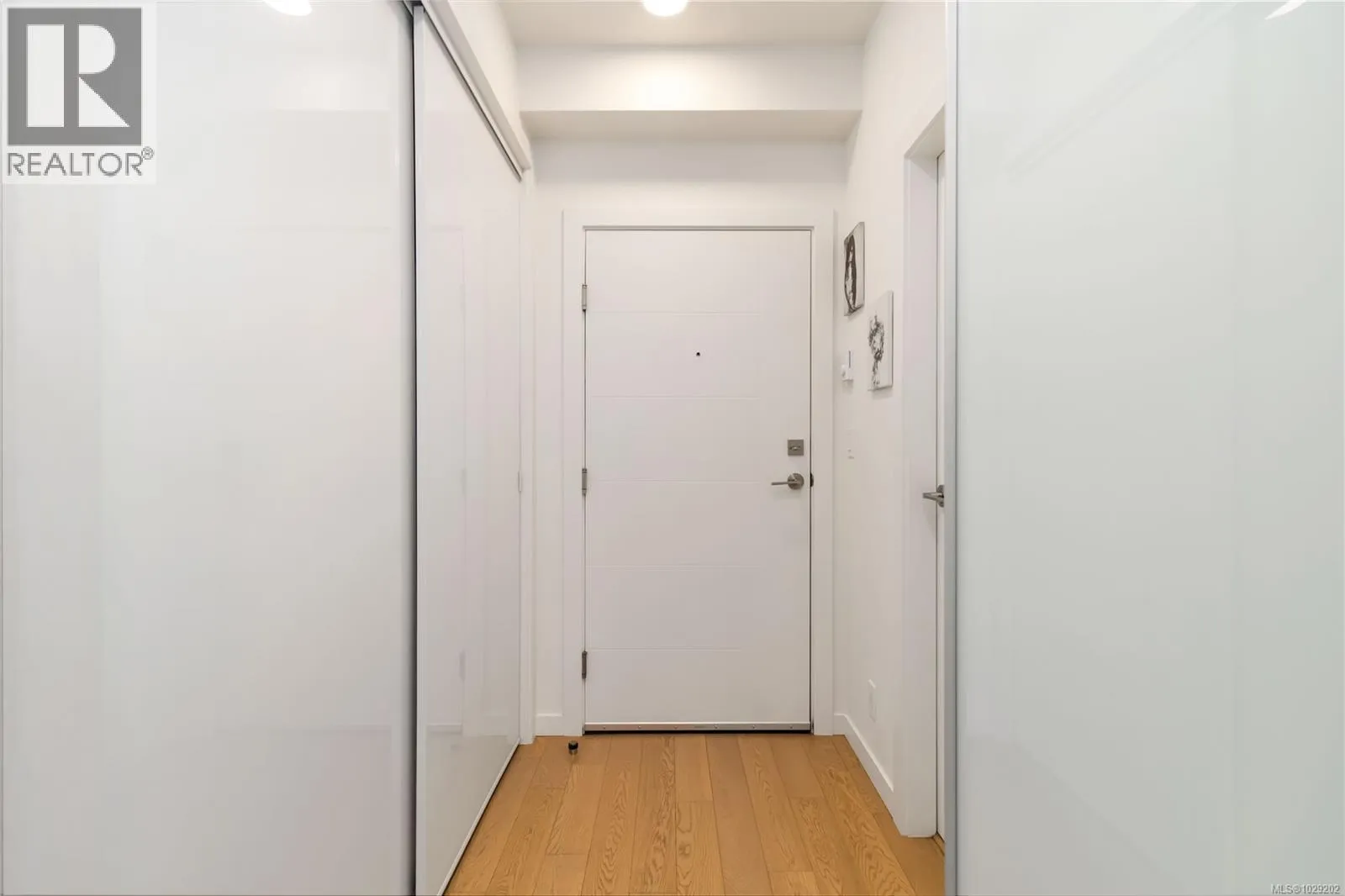 Welcome to The Black & White, a thoughtfully designed home offering modern living just moments from Cook Street Village and downtown Victoria. This residence features a versatile one-bedroom layout with sliding doors that allow the space to adapt seamlessly, creating an open, airy feel or full separation when desired. Clean lines and contemporary finishes define the interior, including quartz countertops, a gas cooktop, integrated Fisher & Paykel appliances, and engineered oak flooring throughout. The bathroom is finished with heated tile floors and a walk-in rain shower, adding a comfortable, spa-like element. Residents enjoy access to well-considered amenities such as EV charging, secure bike and paddle board storage, a dog wash station, and a shared outdoor patio with BBQ and fire pit. Set within a well-managed, quality-built building and still covered under the remaining 2-5-10 warranty, this home offers a refined blend of design, function, and location. (id:27476)