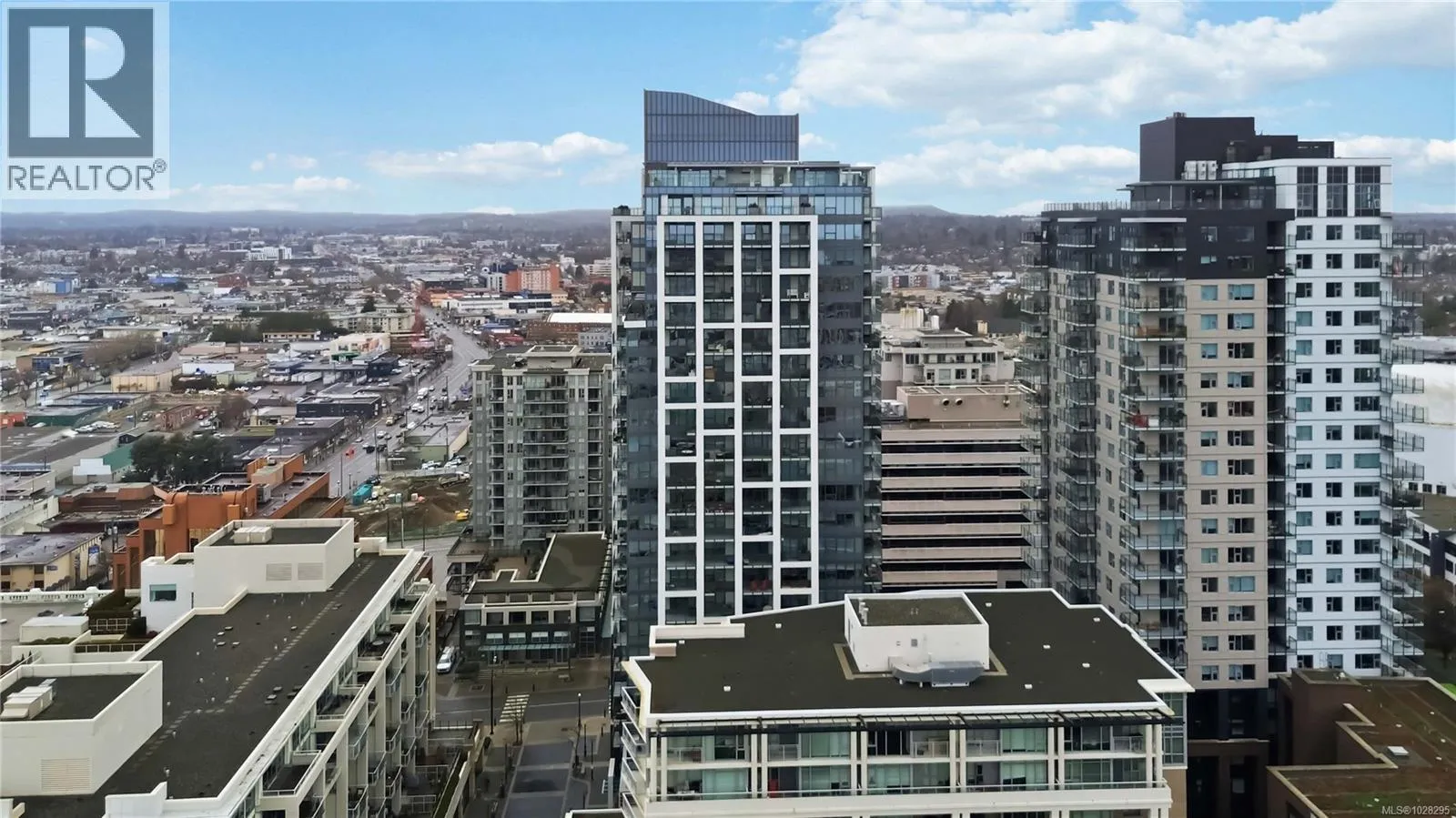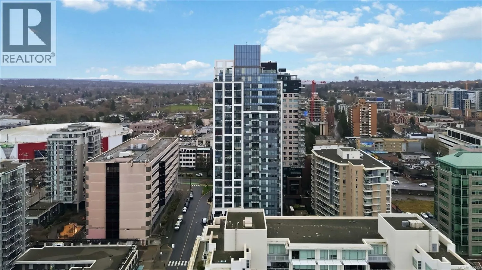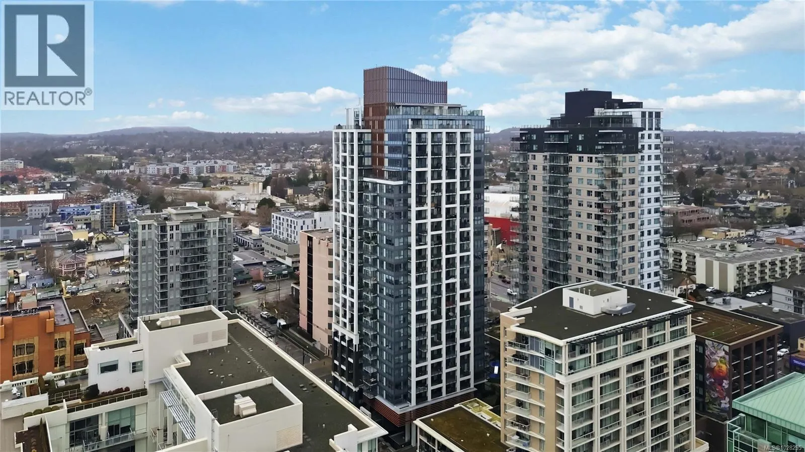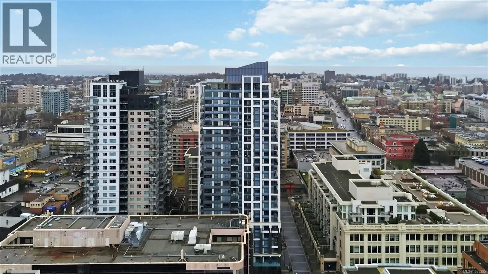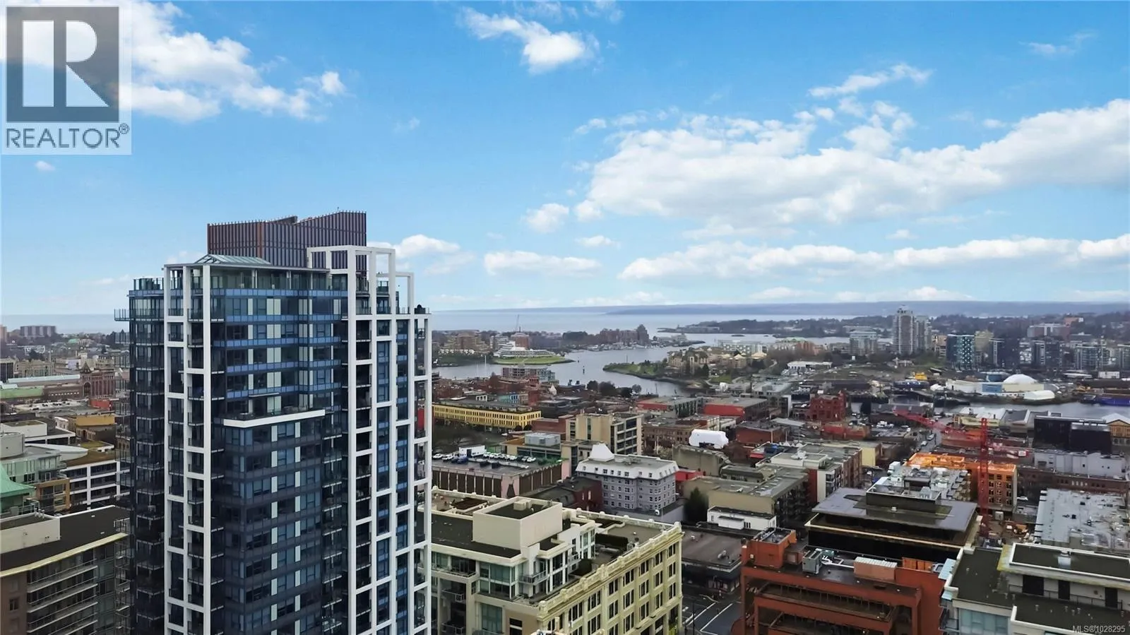 Welcome to the Executive 21st Floor at 777 Herald Street, where water, city, and mountain views create an exceptional downtown living experience. This executive two-bedroom, two-bathroom residence offers the rare bonus of two side-by-side secure underground parking stalls, a highly sought-after feature in the city. The thoughtfully designed open-concept layout is both stylish and functional, ideal for everyday living and entertaining. The modern kitchen features a spacious island with quartz countertops, built-in appliances, and sleek cabinetry, flowing seamlessly into the bright living room. Expansive floor-to-ceiling windows fill the home with natural light while showcasing the stunning surrounding views. This home includes several custom upgrades, including built-in closet organizers, a dedicated built-in desk/workspace, and stylish deck flooring that enhances the outdoor living area. Custom designed Restoration Hardware Cloud couch and matching linen chairs are available for purchase, offering a convenient turnkey opportunity. Residents enjoy access to an impressive range of amenities designed to complement urban living. These include a full time concierge, fully equipped fitness centre, yoga studio, sauna, business centre, hobby room, and a spacious resident lounge with a full kitchen, perfect for hosting gatherings. The landscaped outdoor terrace features BBQs, a large dining table, childrenâs play area, and cozy outdoor fire pits. A private guest suite is also available, providing comfortable accommodation for visiting family and friends. The location is unbeatable. With a grocery store just steps away and the vibrant downtown core at your doorstep, you are within easy walking distance to the Inner Harbour, cafés, restaurants, shops, and countless amenities that make downtown Victoria such a desirable place to live. This is executive downtown living at its finest, stunning views, thoughtful upgrades, outstanding amenities, and an unbeatable location. (id:27476)